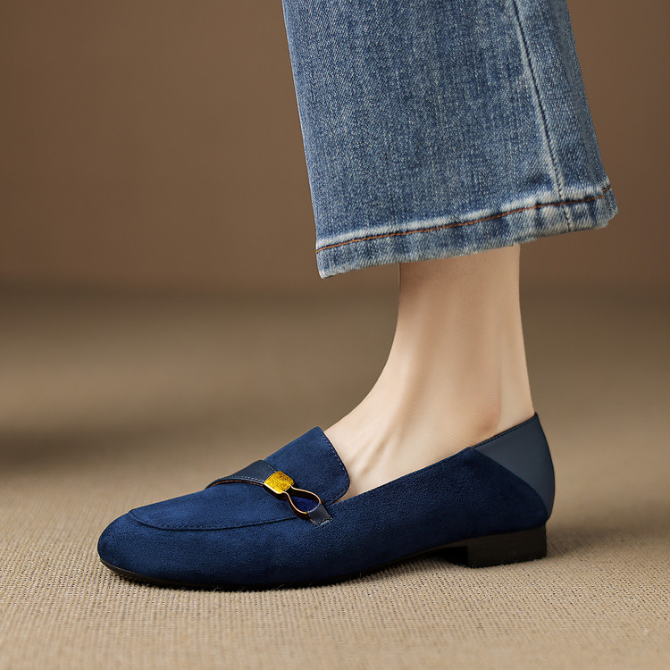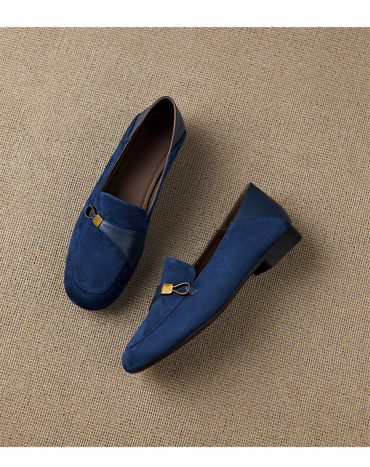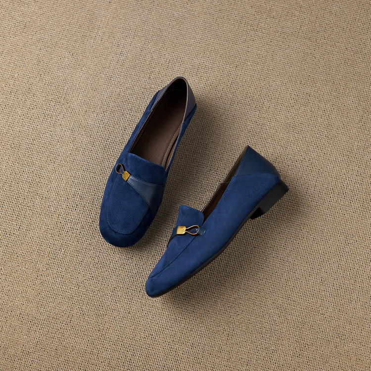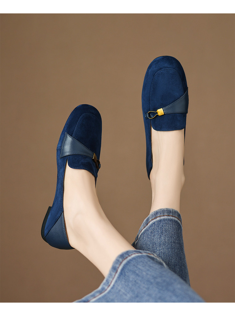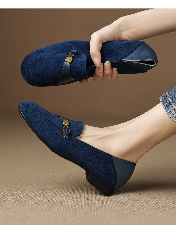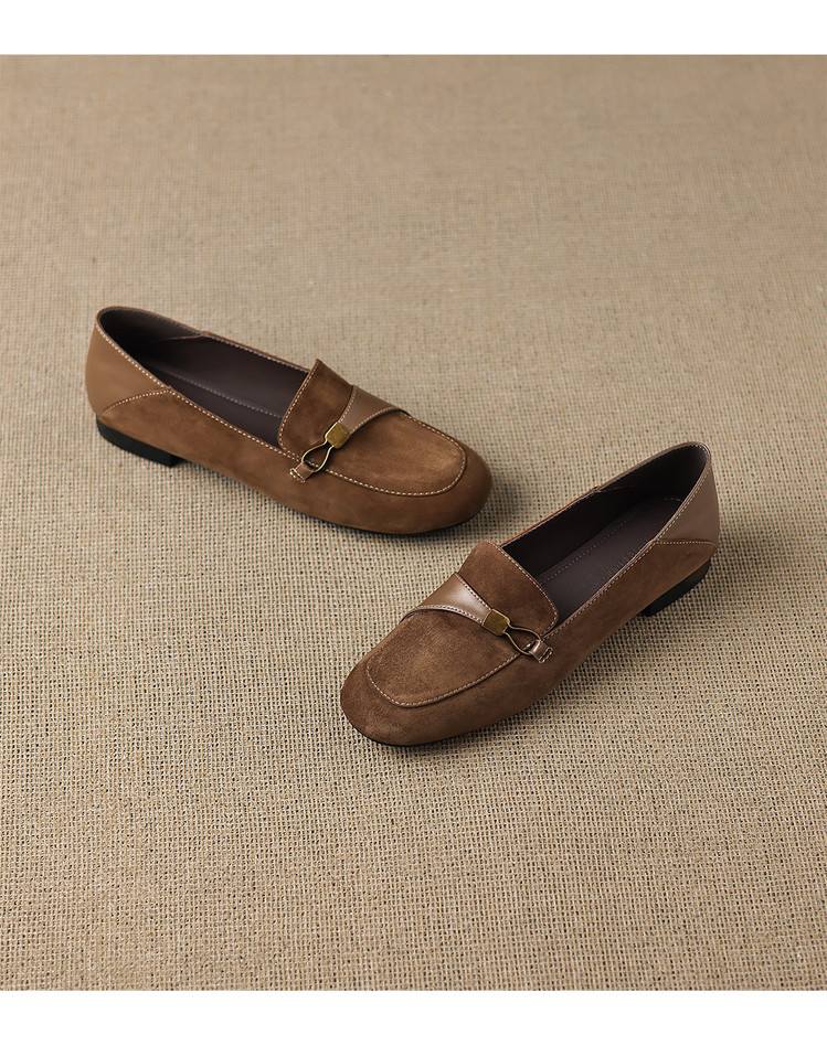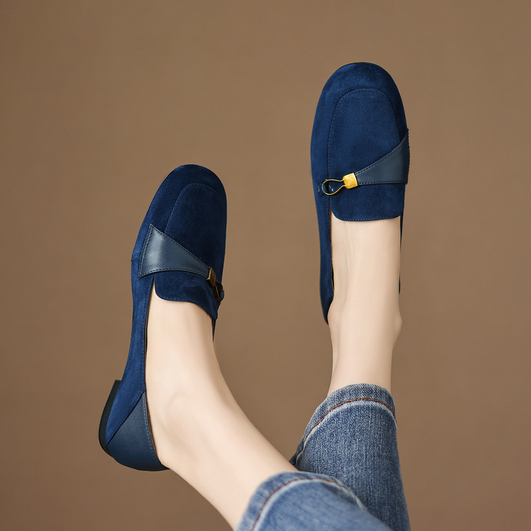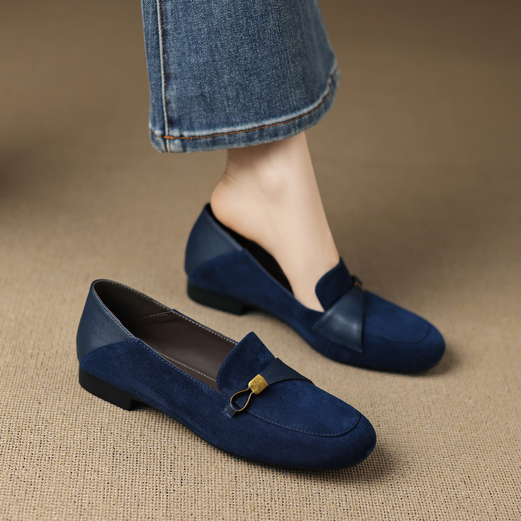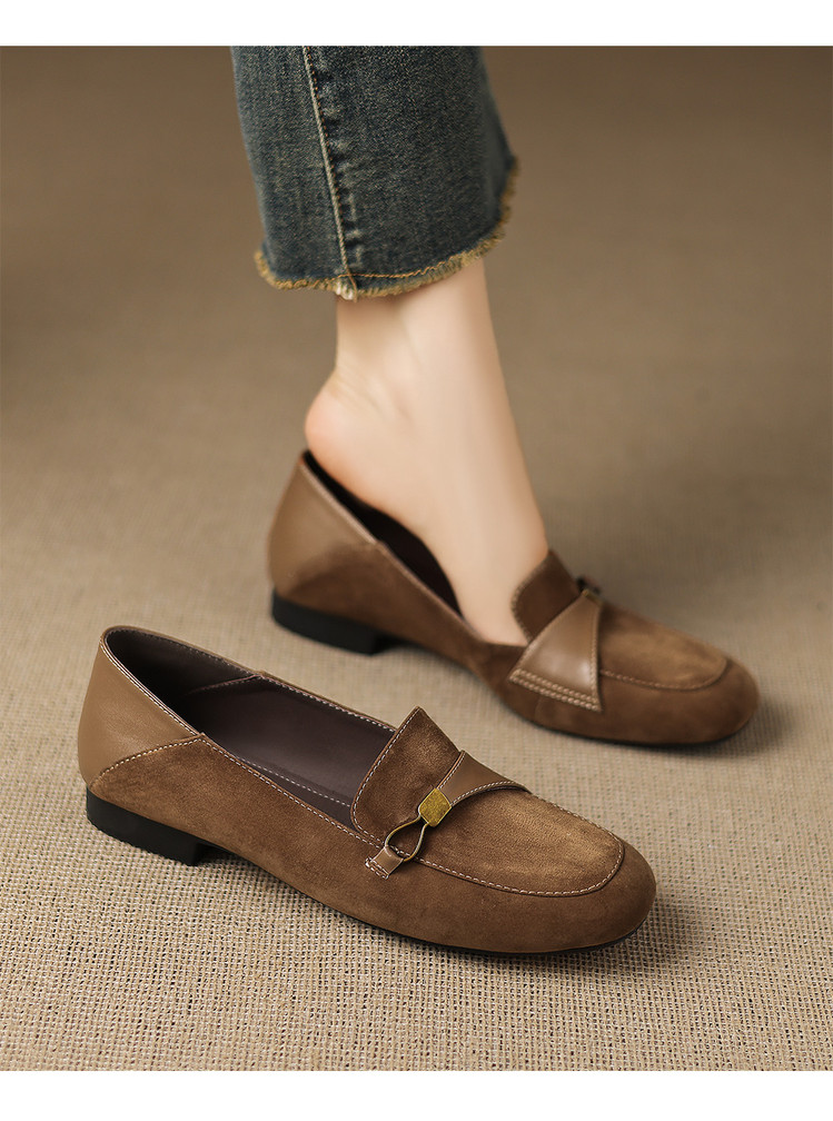 【预售5天】乐福鞋女中跟新款春秋季复古圆头单鞋女粗跟拼接小皮鞋JBL&JBL25-165