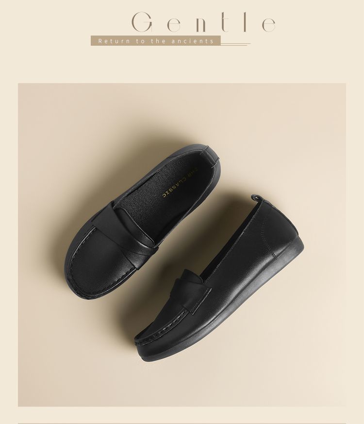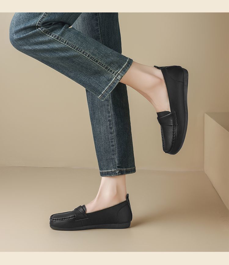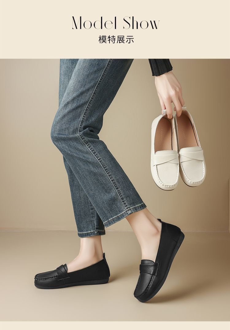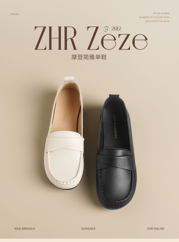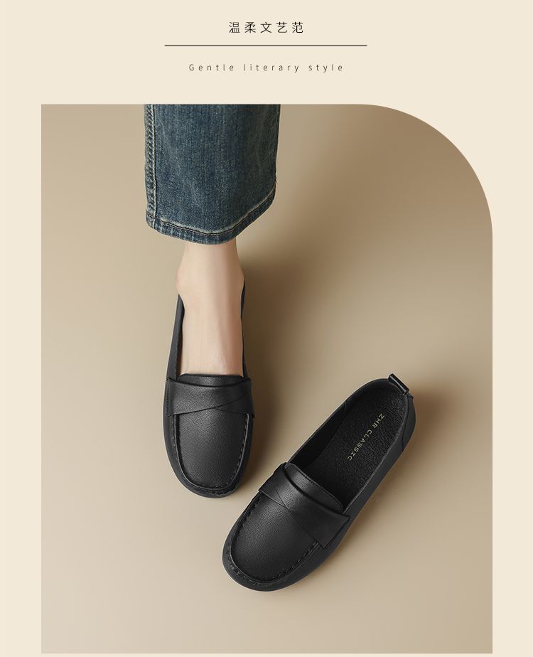 ZHR则则软底豆豆鞋百搭平底单鞋2025新款一脚蹬乐福鞋黑色通勤鞋