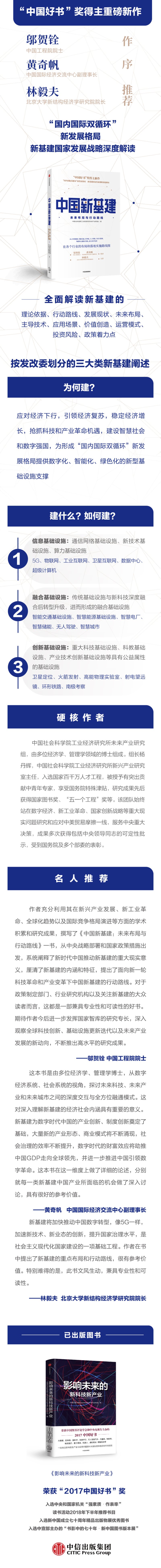 作者充分利用其在新兴产业发展、新工业革命、全球化趋势以及国际竞争格局演进等方面的学术积累和研究成果,撰写了《中国新基建:未来布局与行动路线》一书,从中央战略部署和国家政策措施出发,系统阐释了新时代中国推动新基建的重大现实意义,厘清了新基建的内涵和特征,提出了面向新一轮科技革命和产业变革下中国新基建的行动路线。对于政策制定部门、行业研究机构以及关注新基建的大众读者而言,这都是一部兼具专业性和可读性的好书。期待作者今后进一步发挥国家智库的研究专长,深入观察全球科技创新、基础设施更新迭代以及未来产业发展的新动向,不断推出高水平的研究成果。