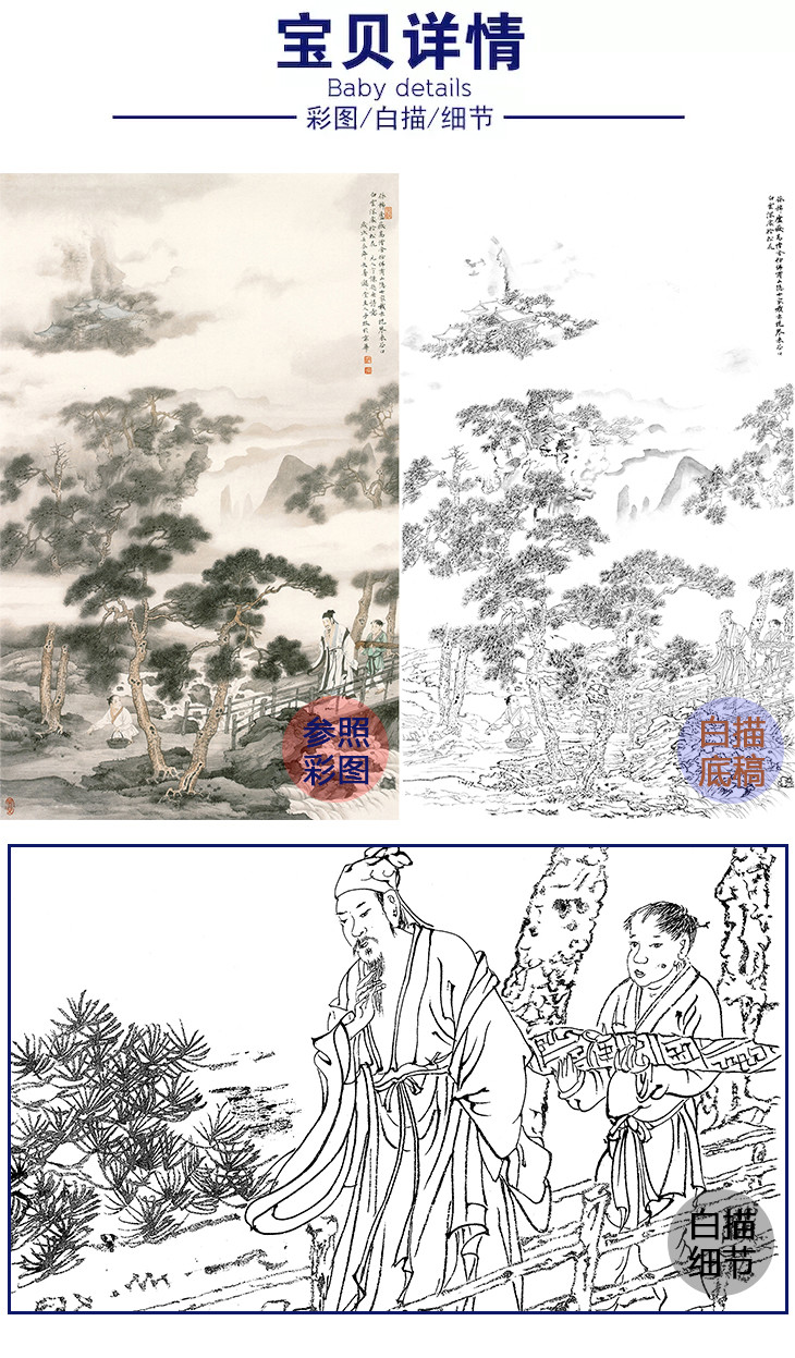 白描底稿-竖幅工笔山水人物李子牧-LQ45