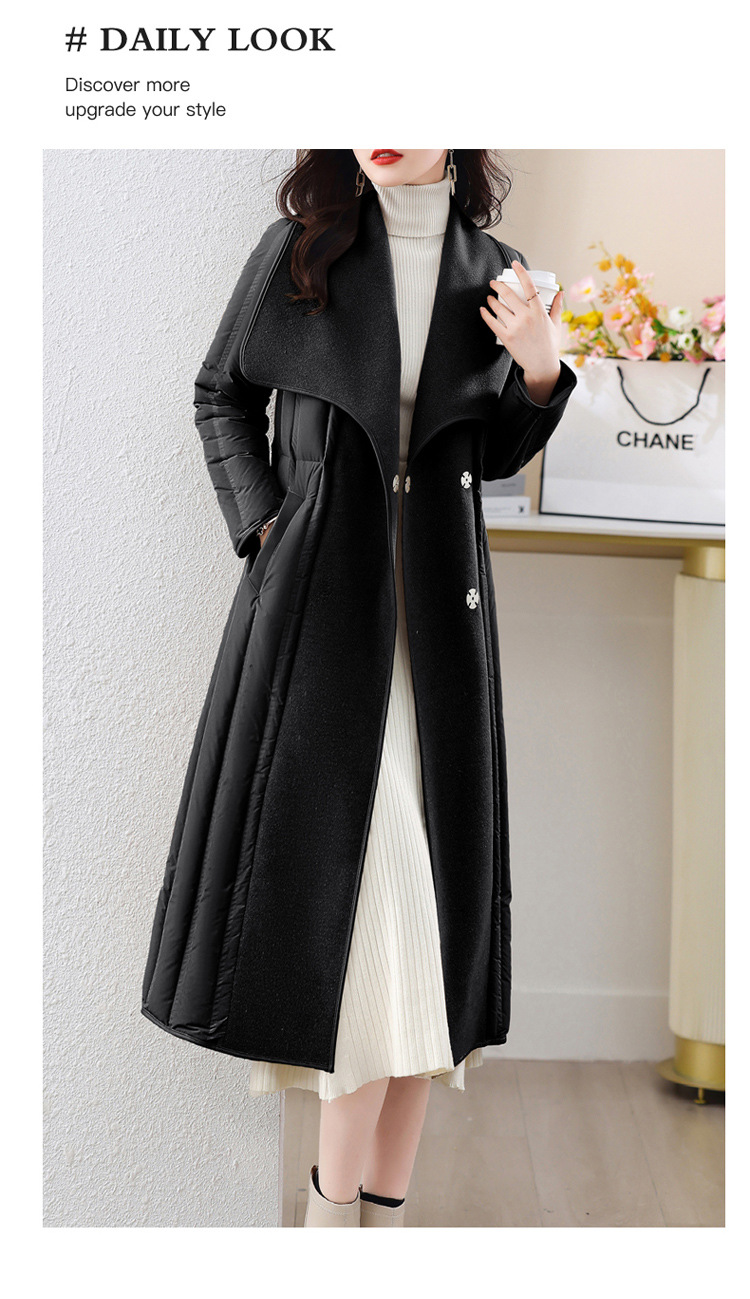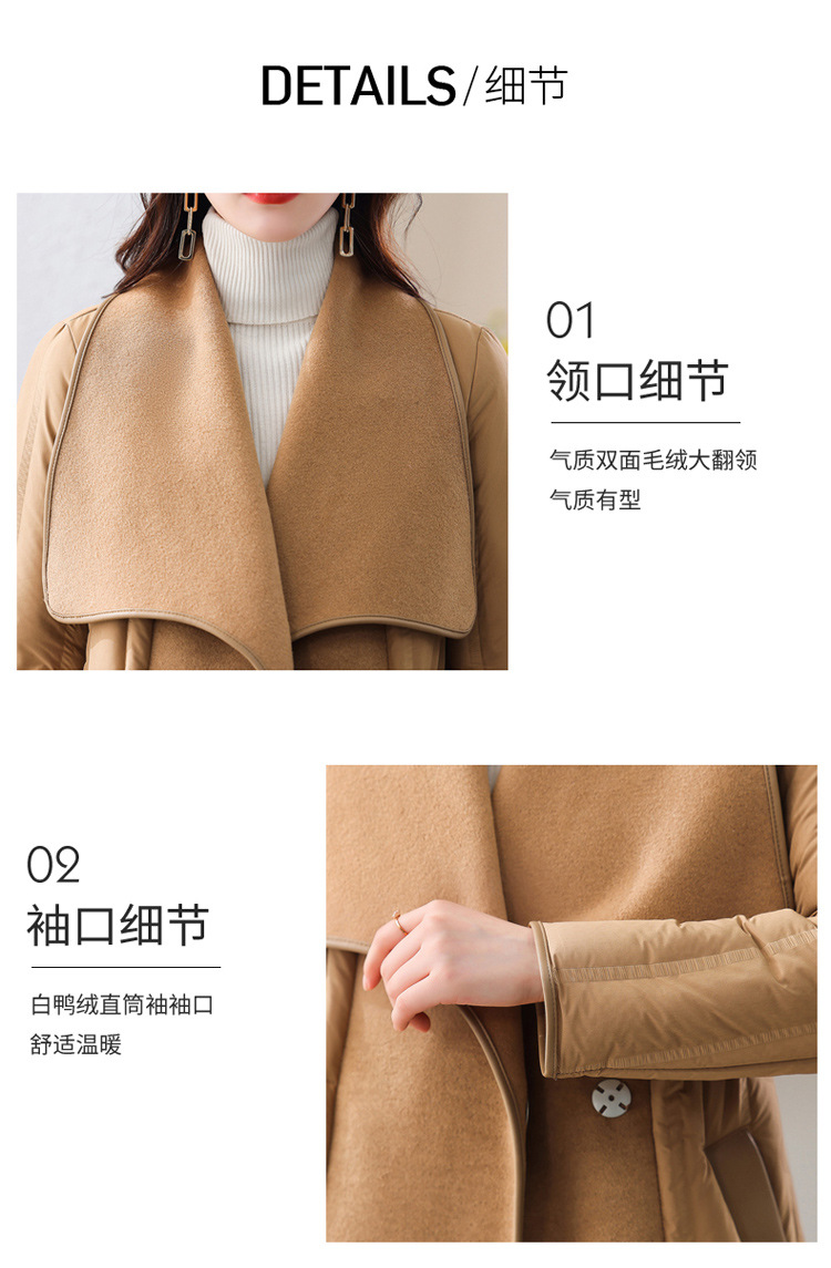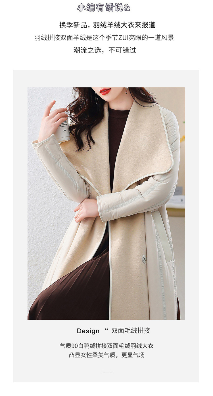 ASE-609-1羽绒服2023冬季新款双面羊绒大衣长款保暖收腰欧货90白鸭绒羽绒服