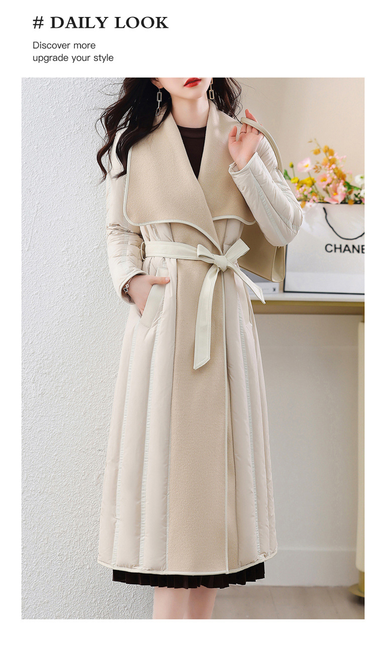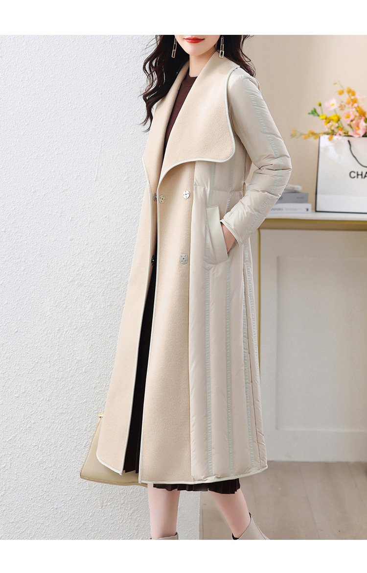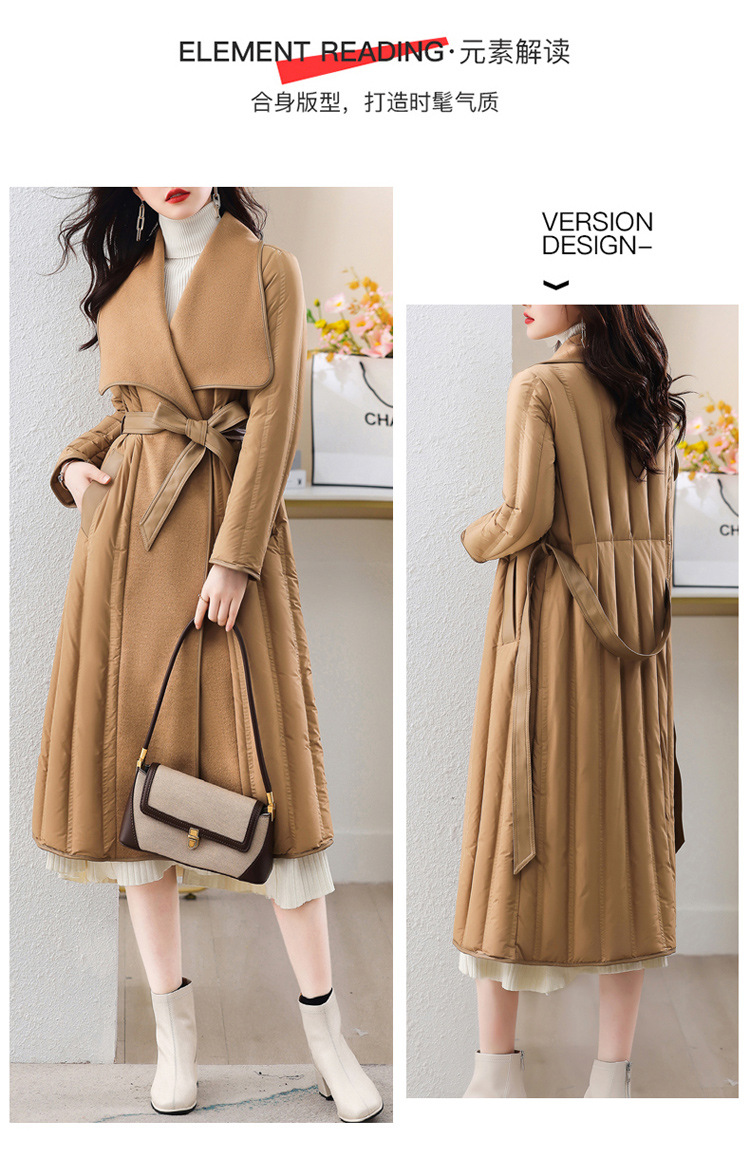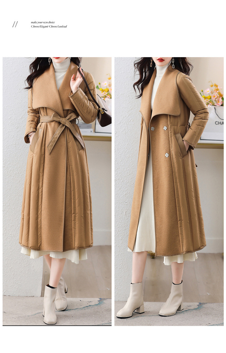 ASE-609-1羽绒服2023冬季新款双面羊绒大衣长款保暖收腰欧货90白鸭绒羽绒服