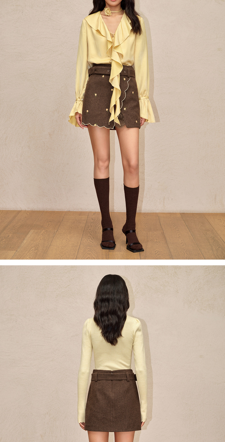 【商场同款-新春系列迎春花开】MAXRIENY复古宫廷绣花开衩半裙(货号:MC88SK776)