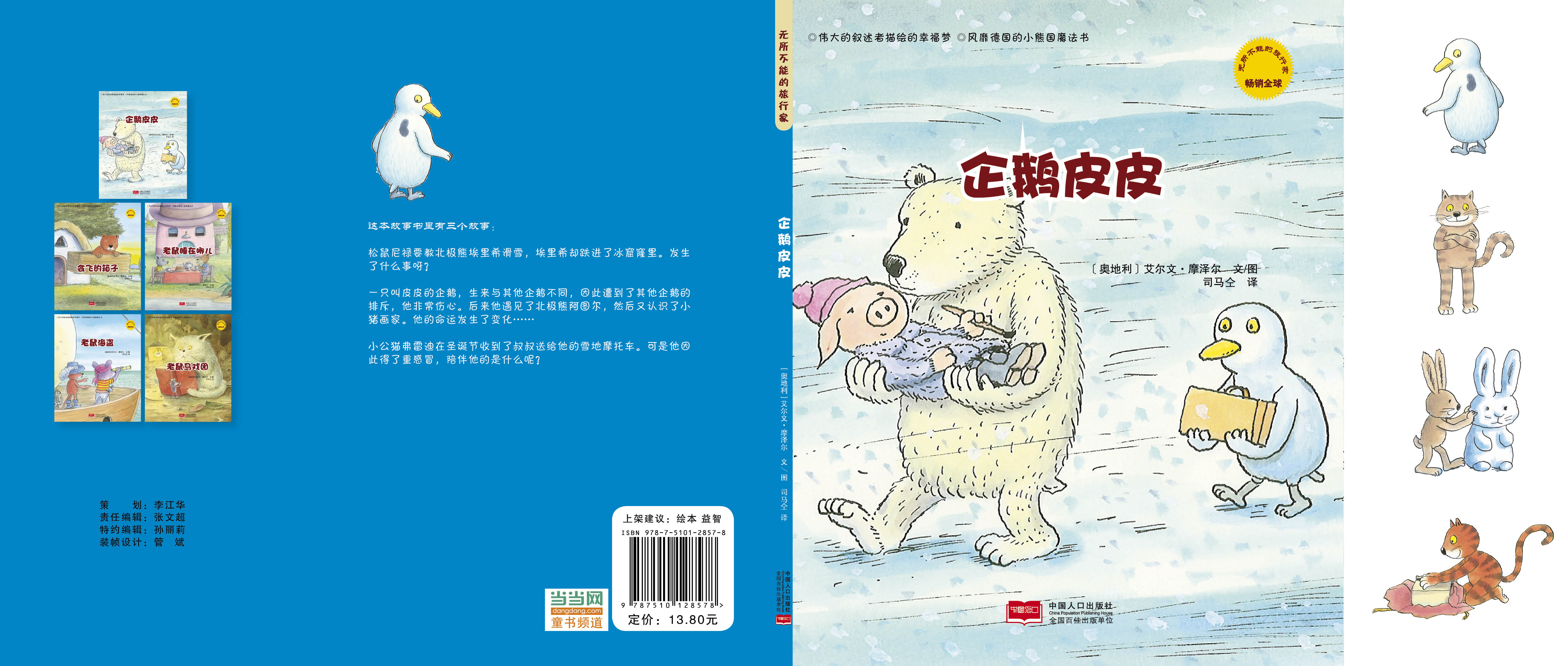 《无所不能的旅行家》全5册 3-6岁 清透、明快的水彩绘画,稚拙可爱的小动物形象,能让小朋友和书中的小老鼠、雪人和小猫一起开始神奇的旅行