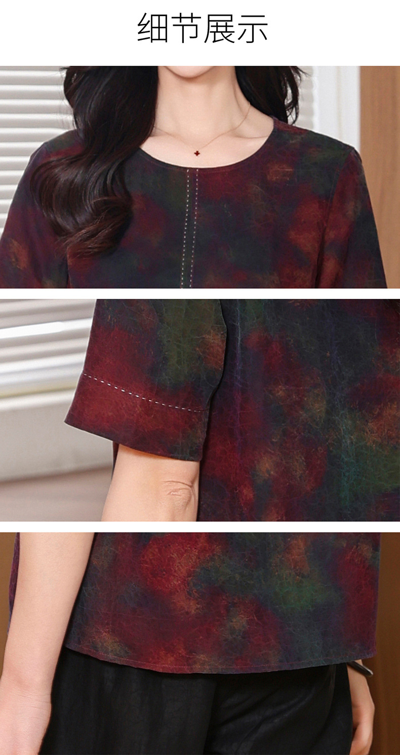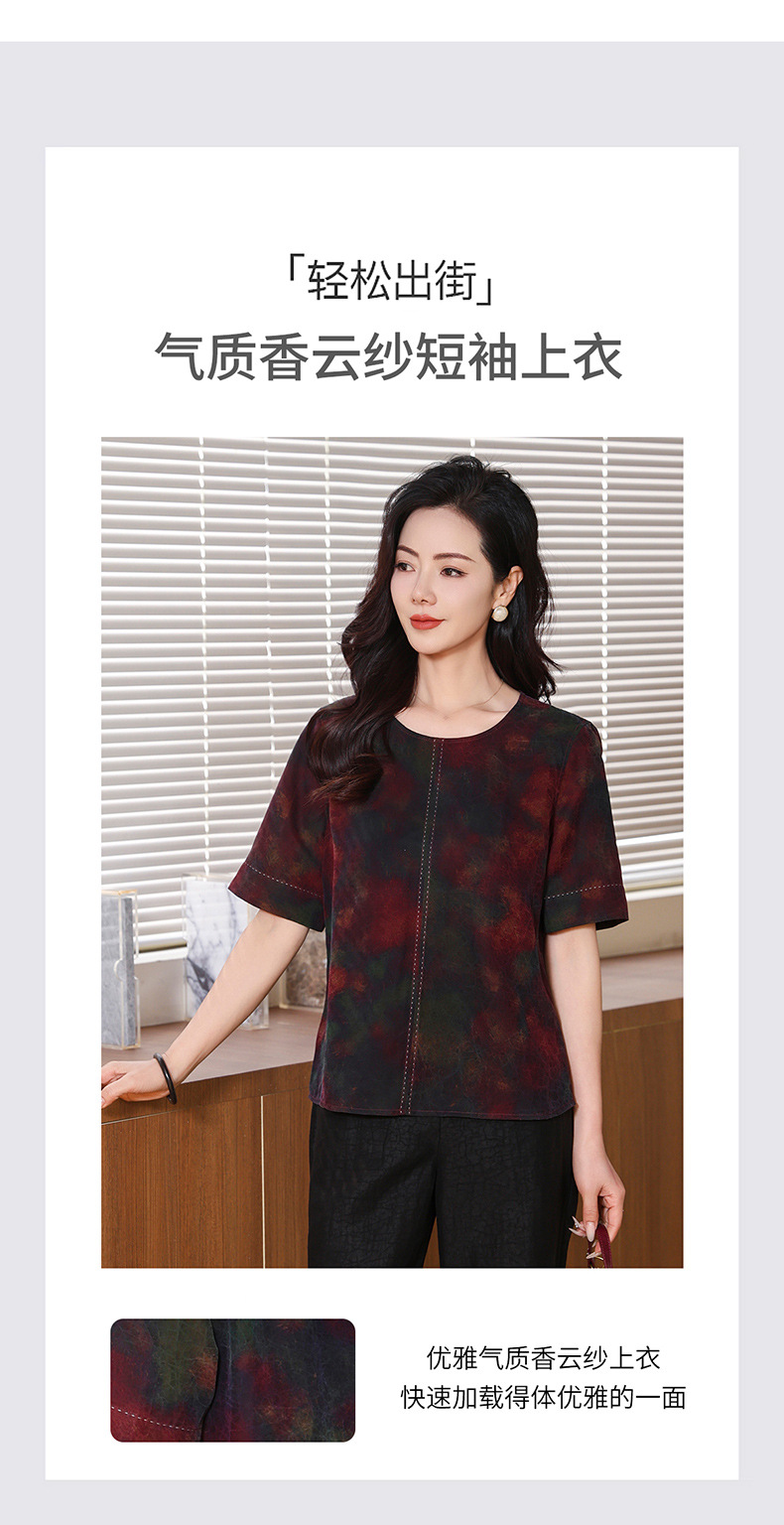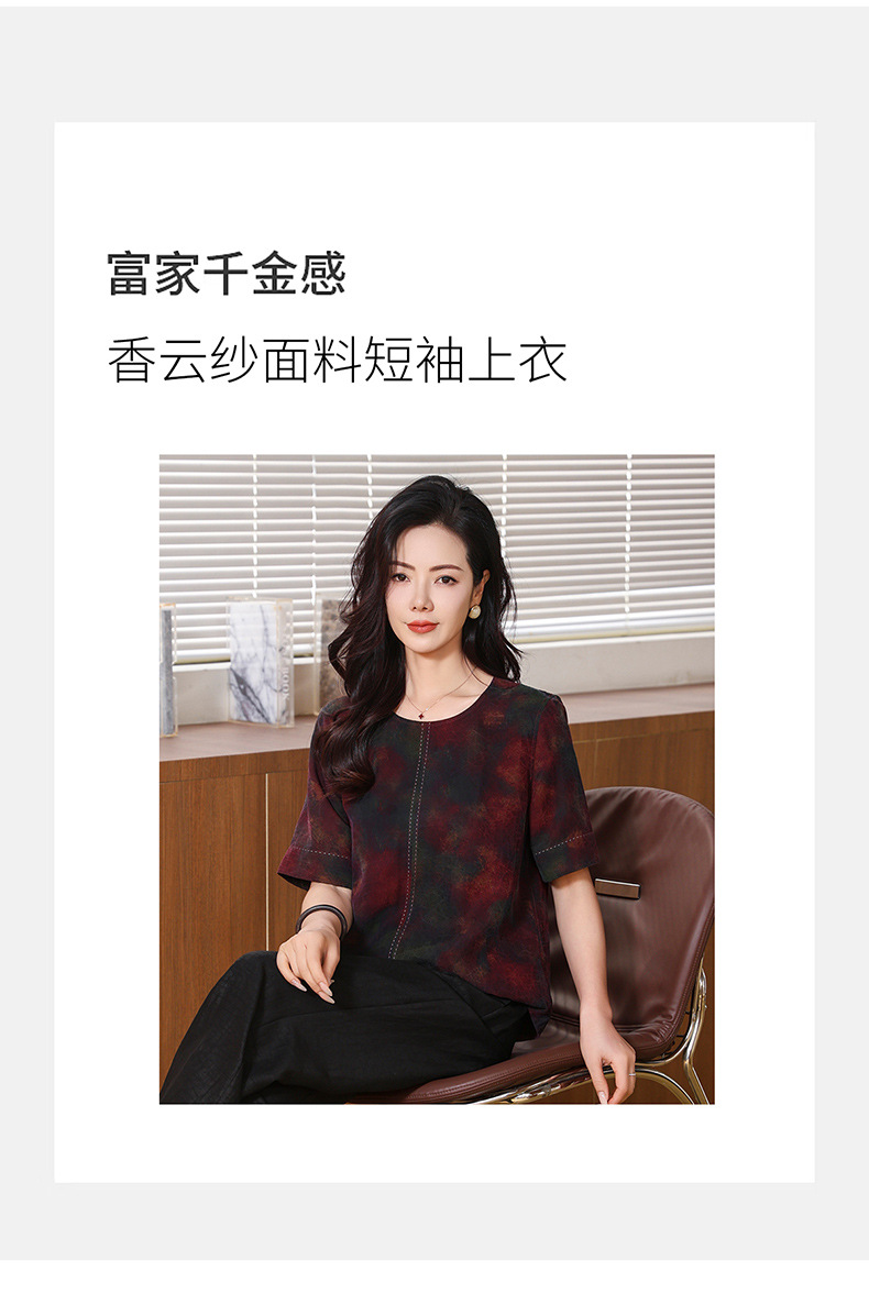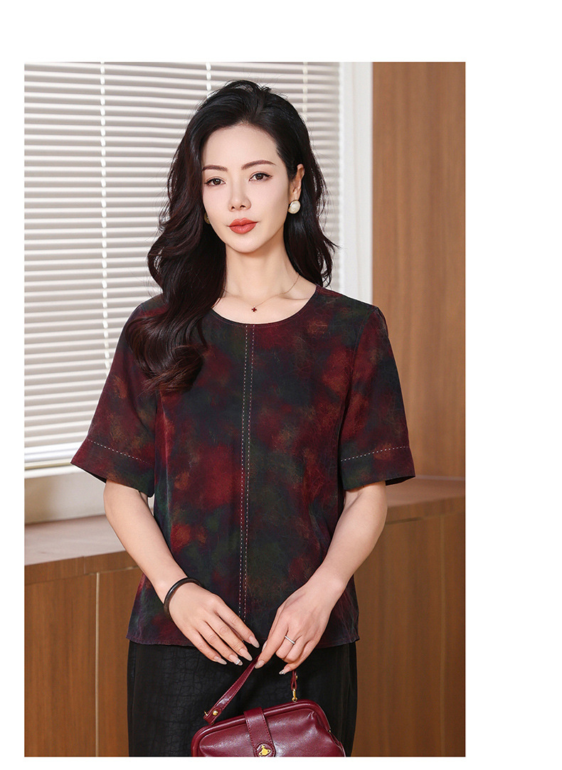 KQ-221809大妈纯色香云纱真丝上衣女夏圆领短袖简约大方桑蚕丝t桖小衫