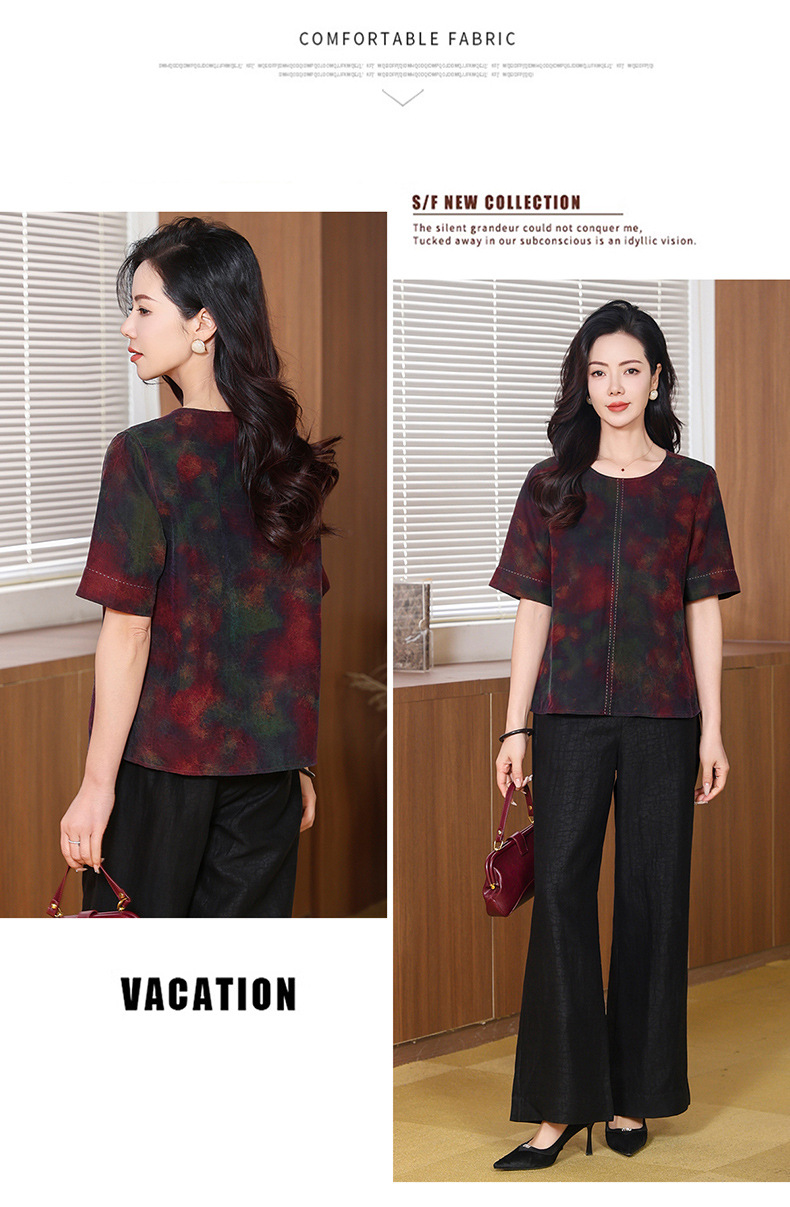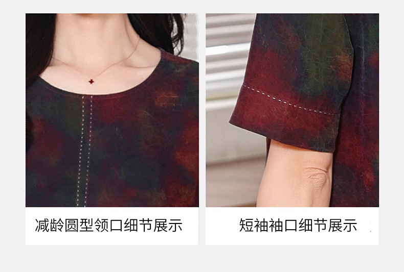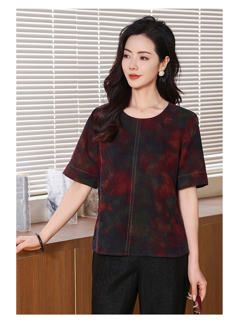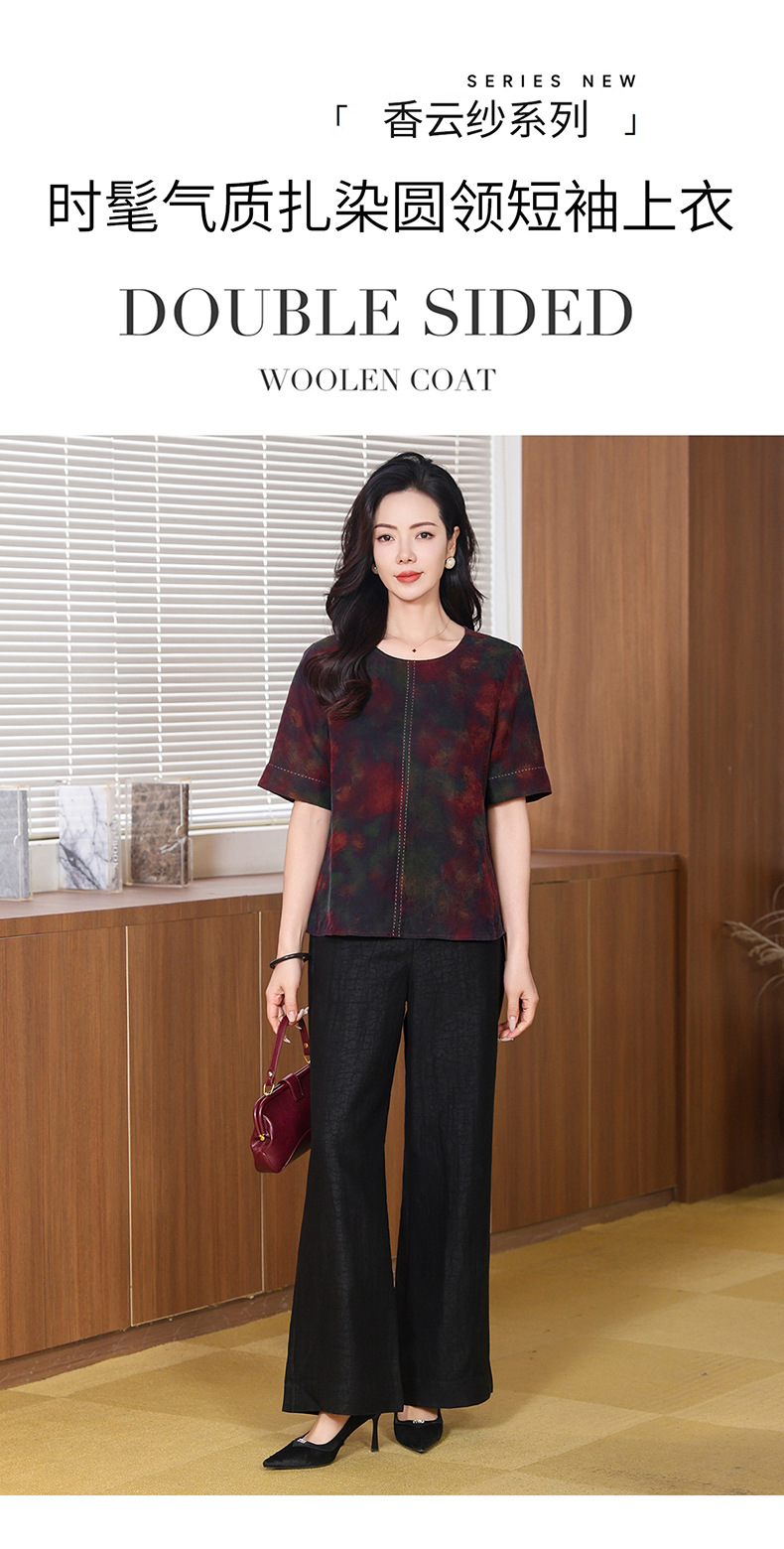 KQ-221809大妈纯色香云纱真丝上衣女夏圆领短袖简约大方桑蚕丝t桖小衫