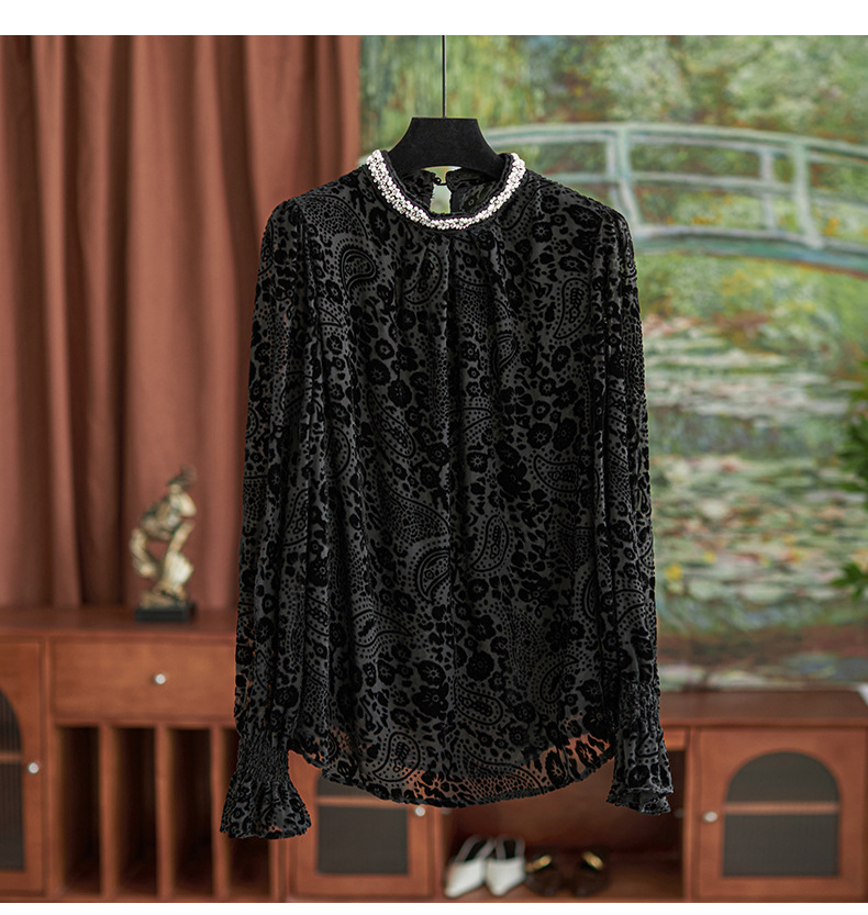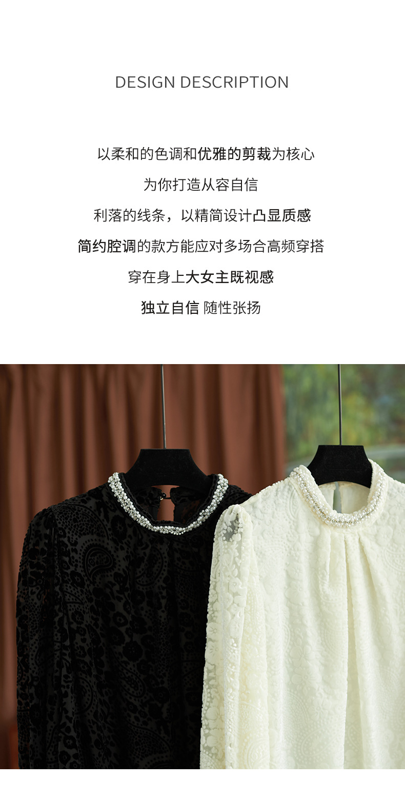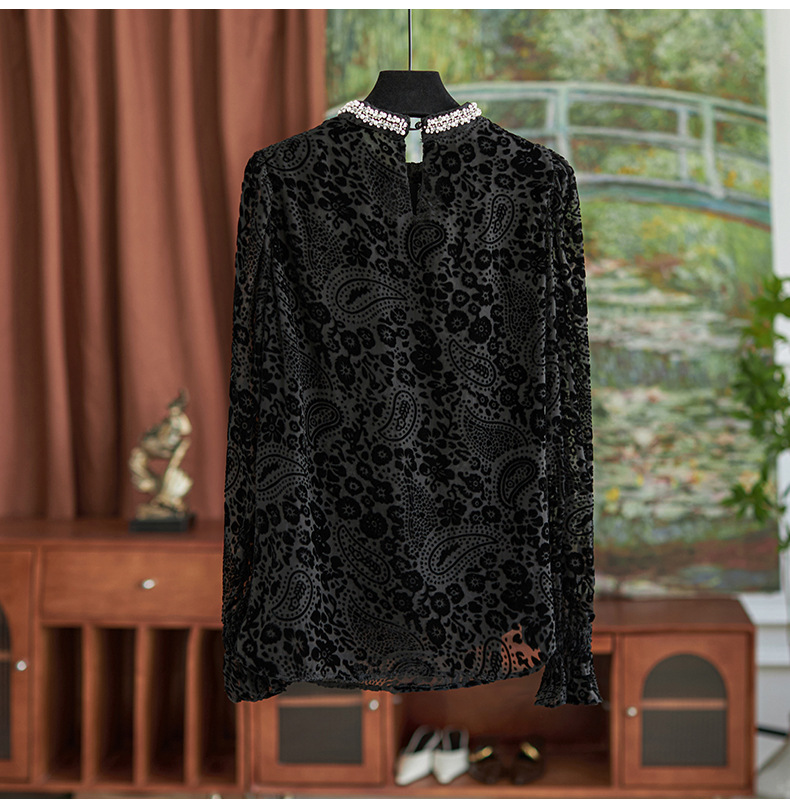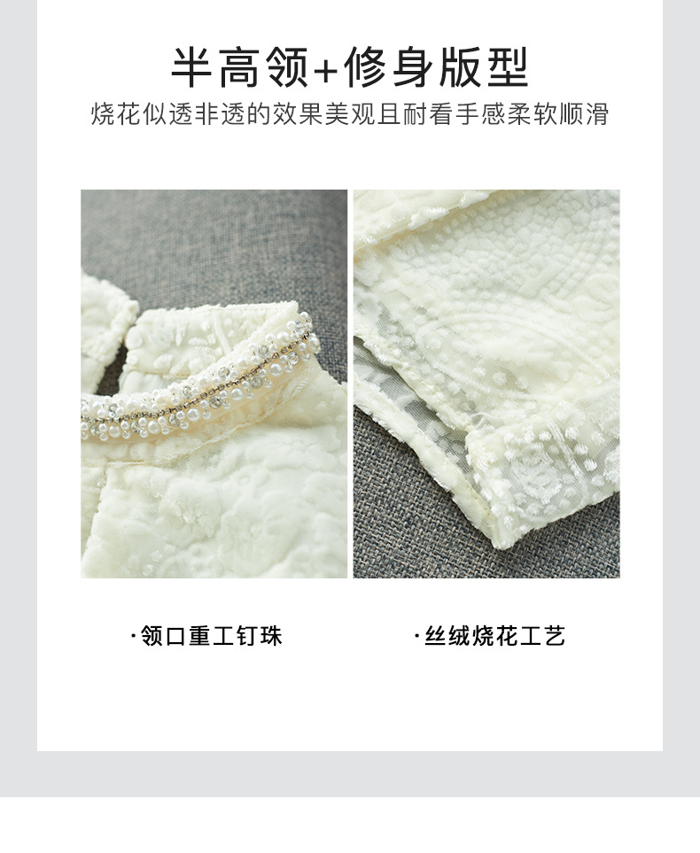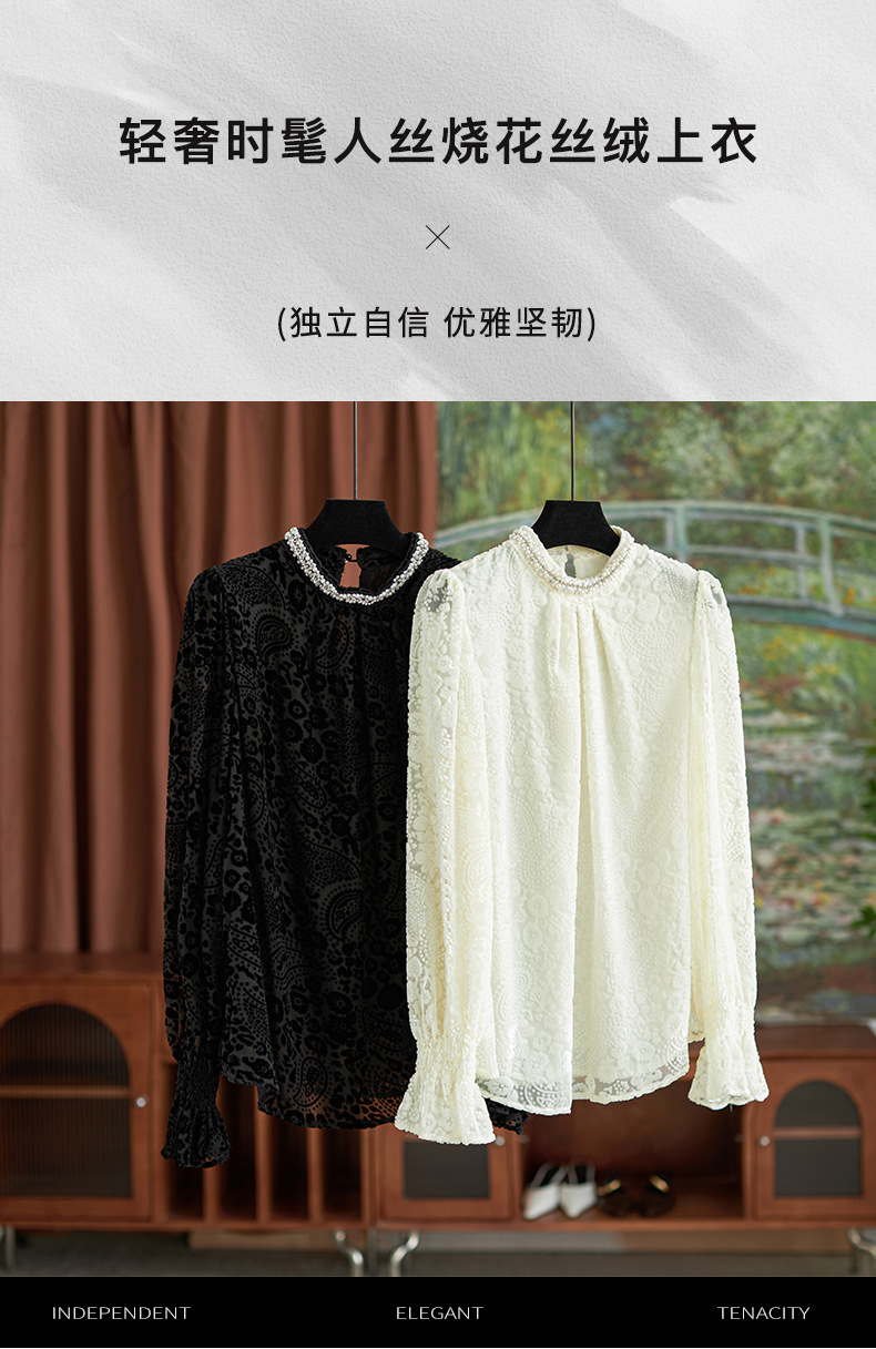 【高货wl】全新升级【铂金会员266/天猫359/差价93】(50946) 洛诗琳轻奢重工烧花丝绒法式衬衫女镂空蕾丝时尚新款上衣