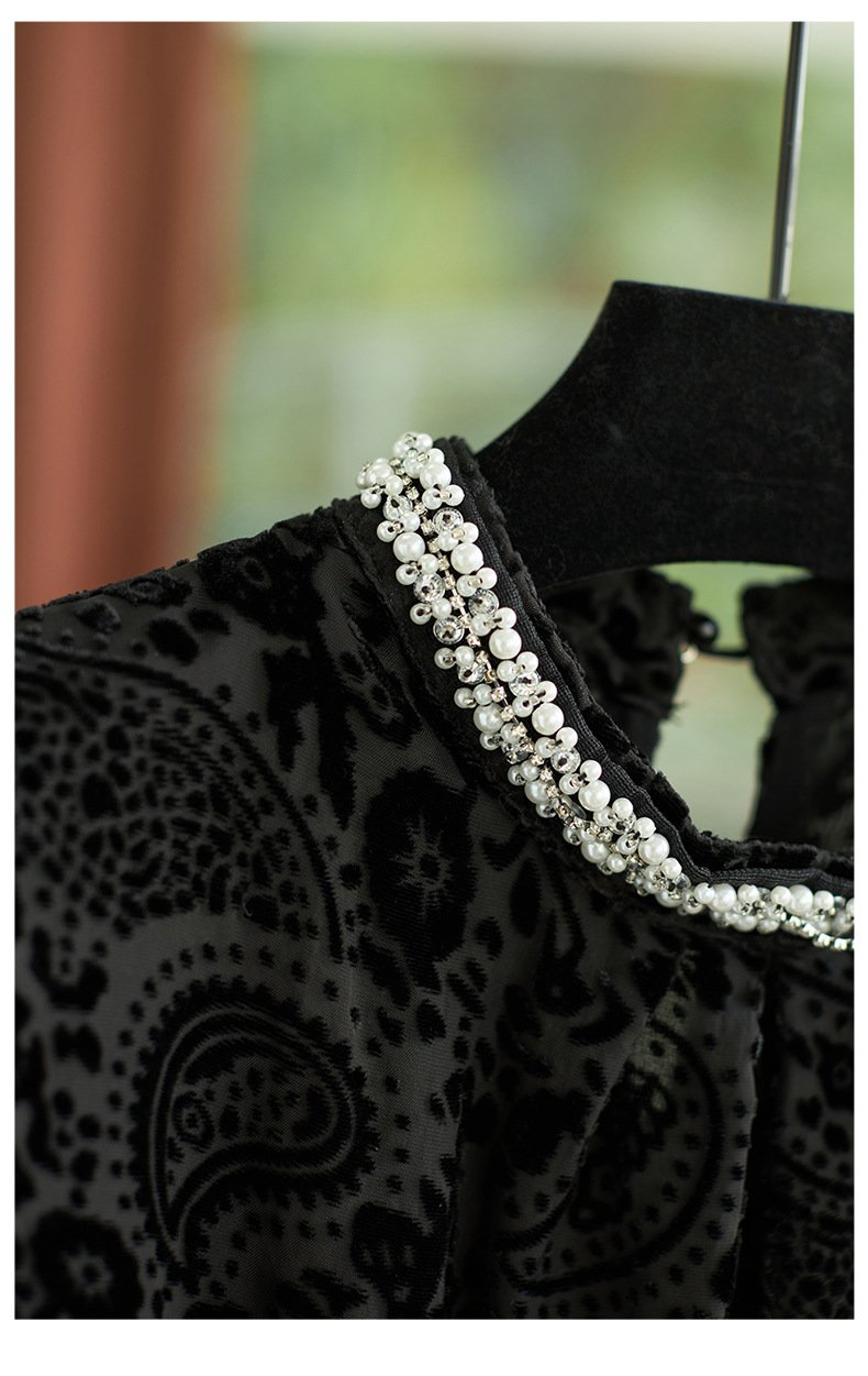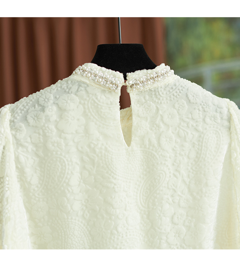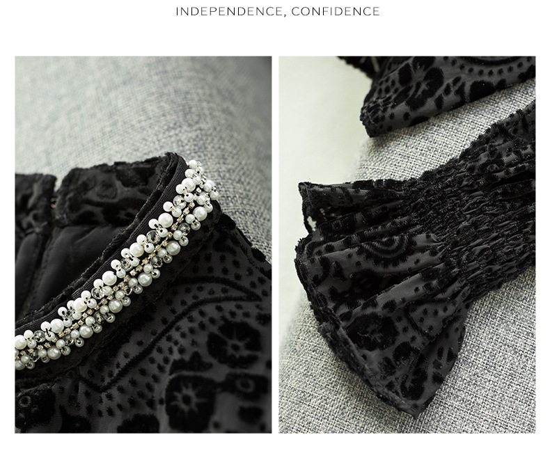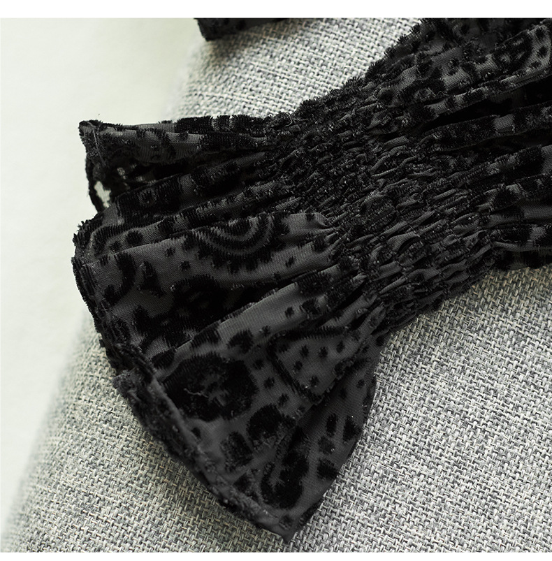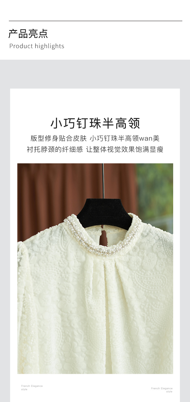 【高货wl】全新升级【铂金会员266/天猫359/差价93】(50946) 洛诗琳轻奢重工烧花丝绒法式衬衫女镂空蕾丝时尚新款上衣