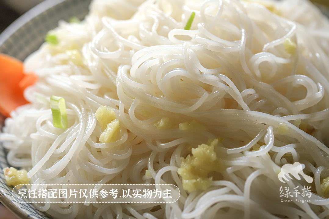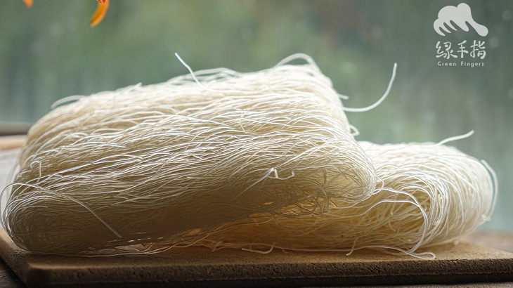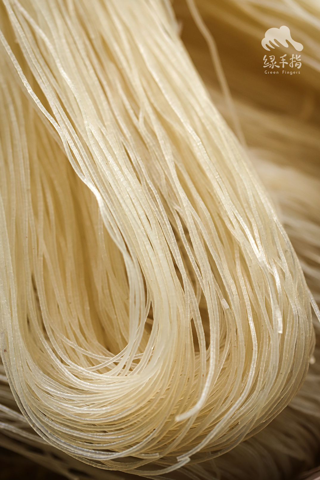 籼米粘性较低,成品更爽滑。自然晾晒干,米线保留了大米的清香,咀嚼时能尝到淡淡的甜味和谷物香气,口感Q弹,柔滑细腻,清爽利落。