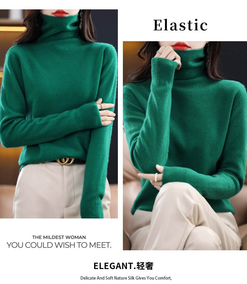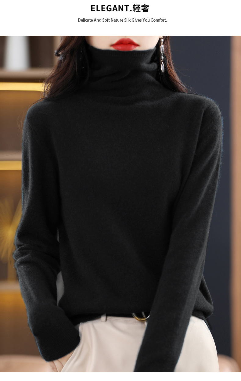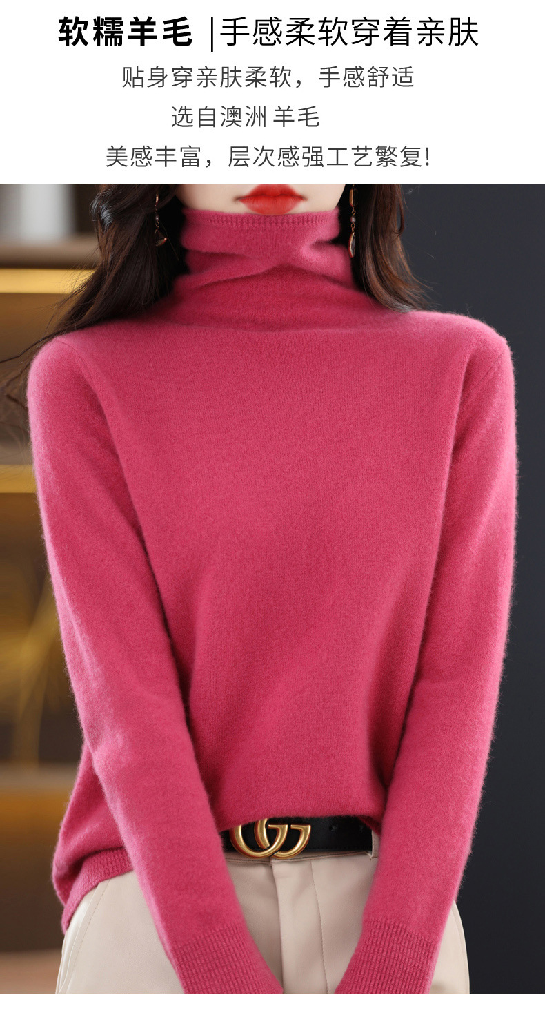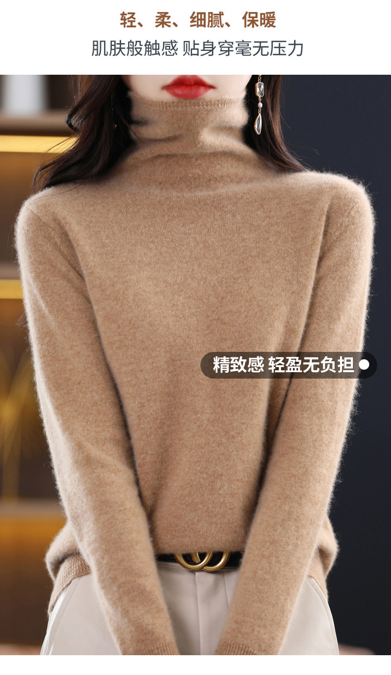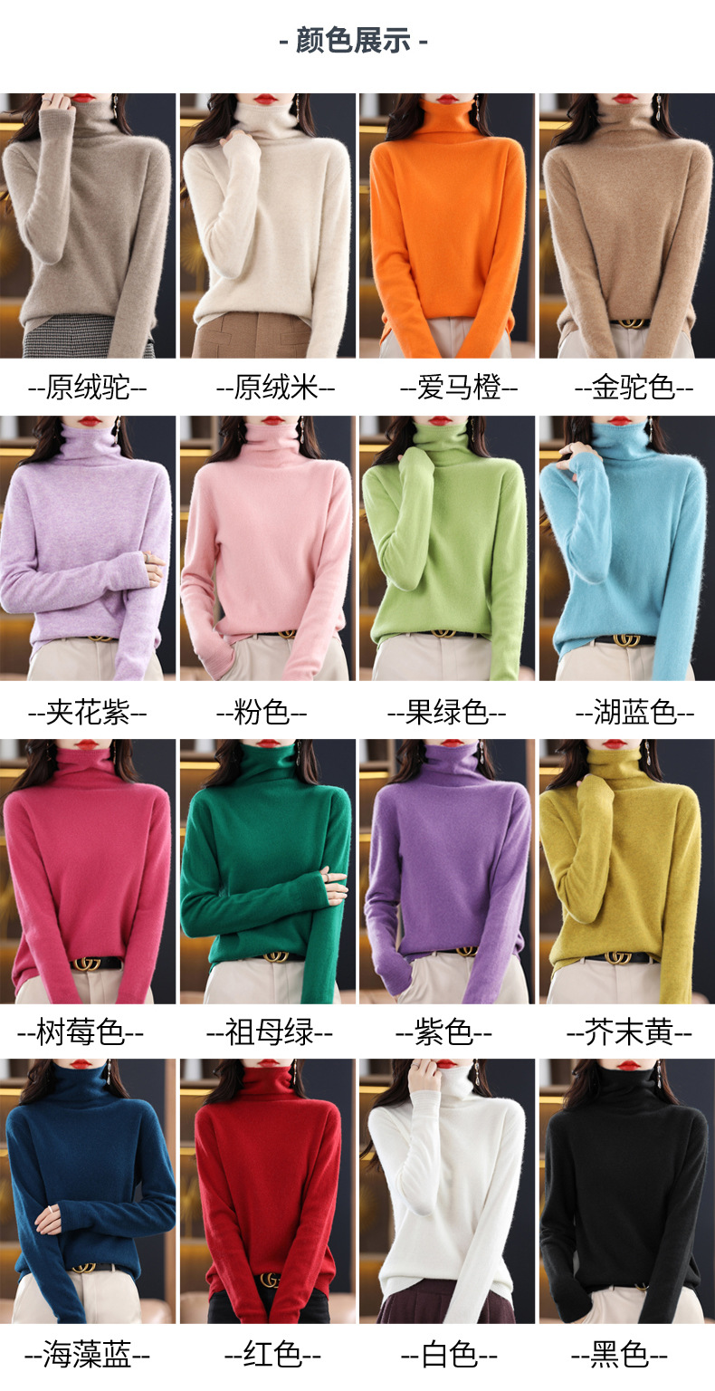 QHJY-JYYM22513一线成衣羊毛毛衣堆堆领打底衫马蹄螺纹长袖套头自由领女式羊毛衫
