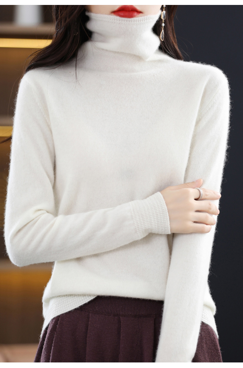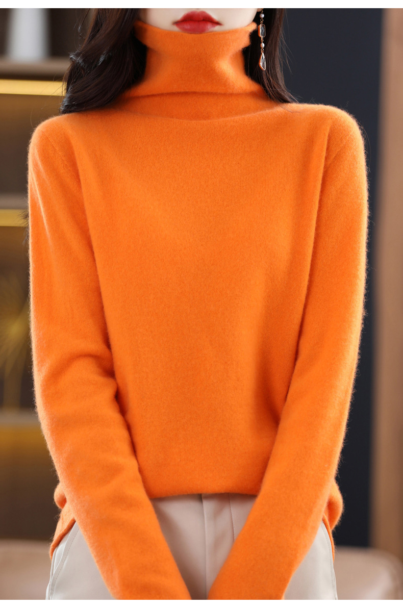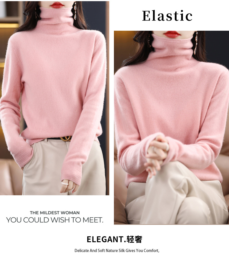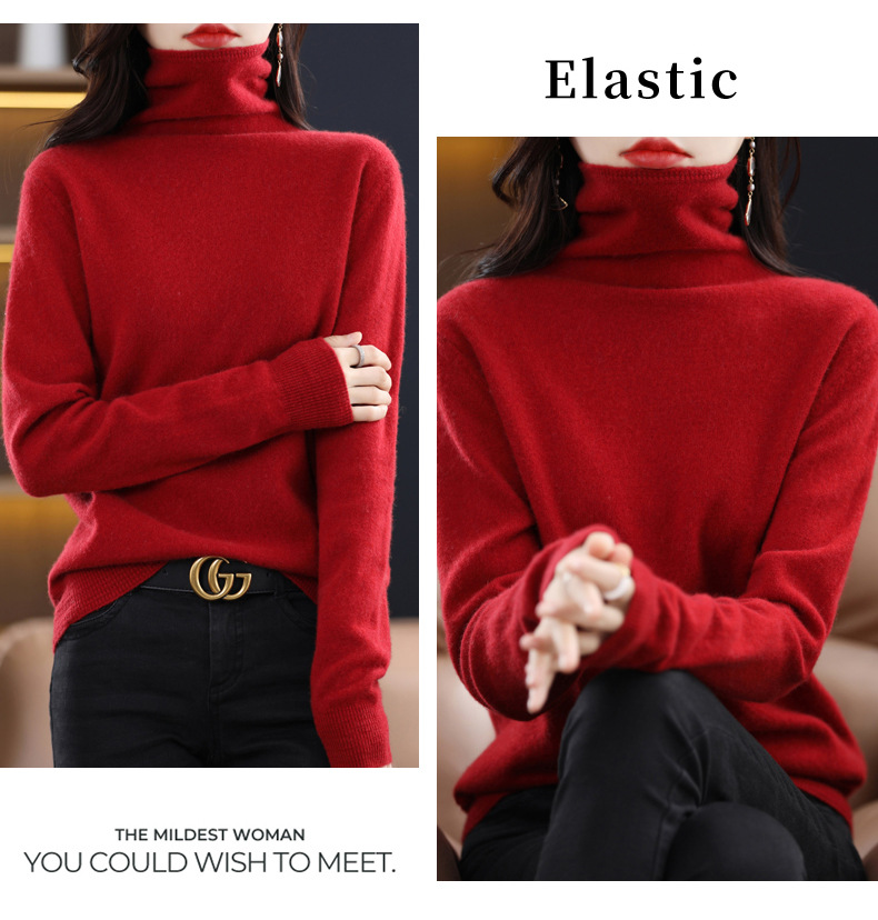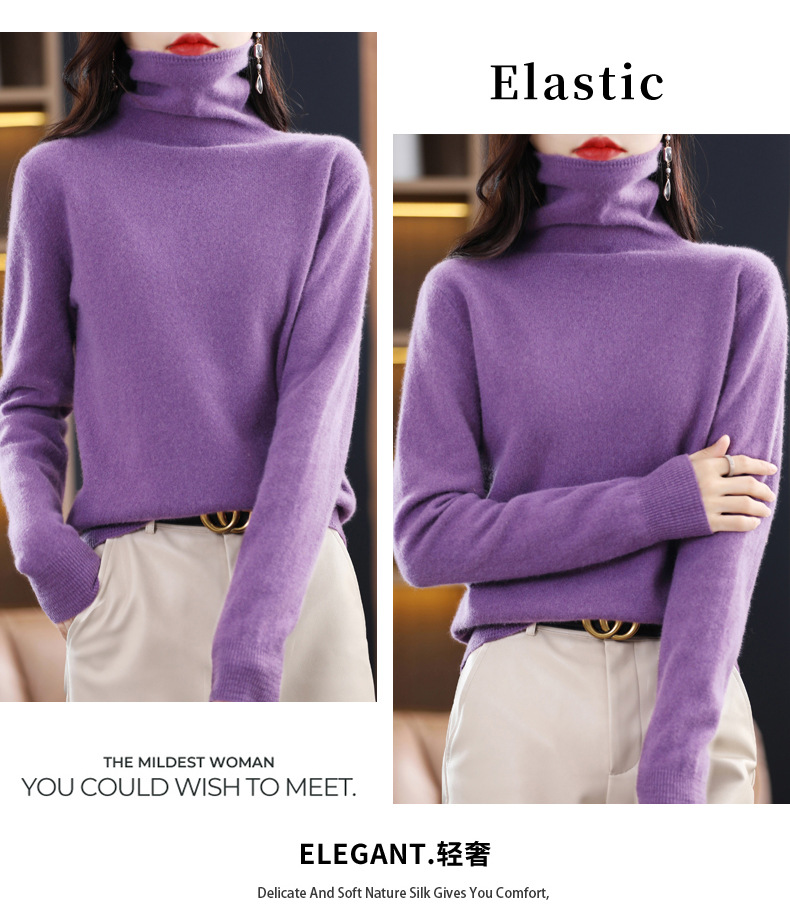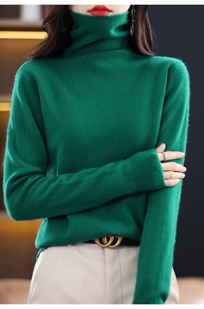QHJY-JYYM22513一线成衣羊毛毛衣堆堆领打底衫马蹄螺纹长袖套头自由领女式羊毛衫
