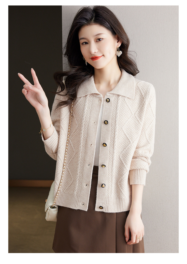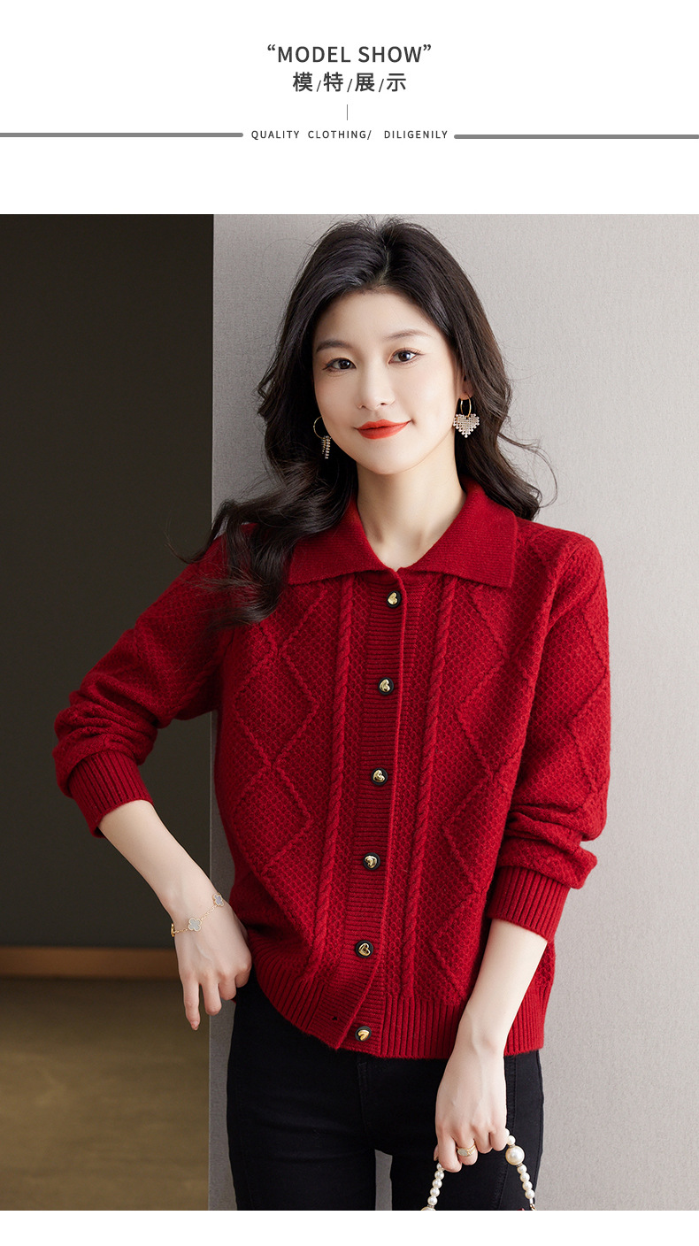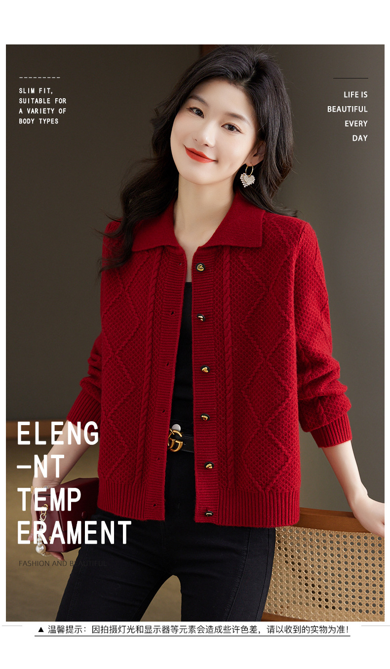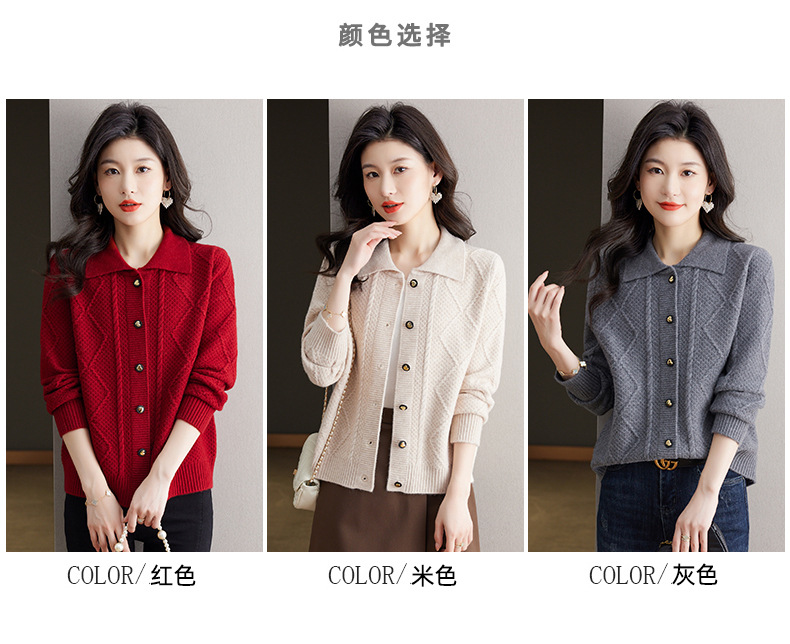 CC26-8026翻领毛衣女士短款外套春秋2024新款早春小外搭上衣针织开衫批发