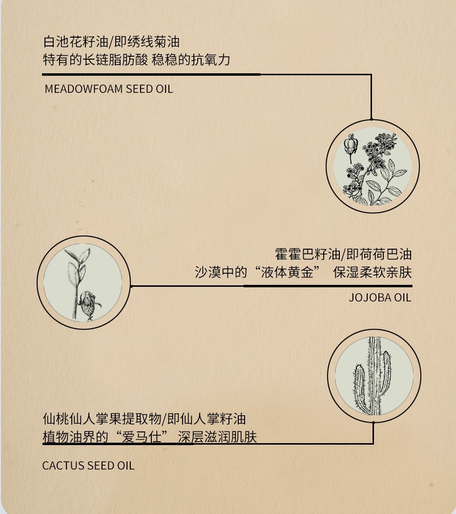 为了让功效更好地被接纳,我们以白玫瑰花水与多种天然植物籽油为基底,带来亲肤的润泽,拒绝厚重黏腻。并以天然卵磷脂温柔乳化,构建起安心的植物防腐体系,配方温和,致力于为多种肌肤类型提供安心的护肤体验。