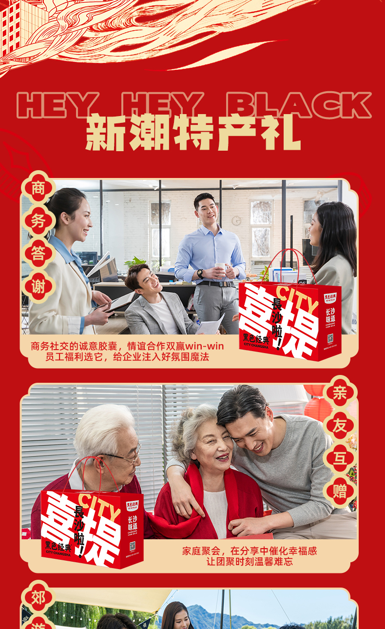 黑色经典湖南特产商城是长沙著名特色小吃“黑色经典长沙臭豆腐”旗下的线上官方商城。黑色经典面向全国,以长沙臭豆腐为核心,辐射覆盖湖南本土特色美食全系列产品,并对所有产品的生产工艺及包装进行了独特的改良。