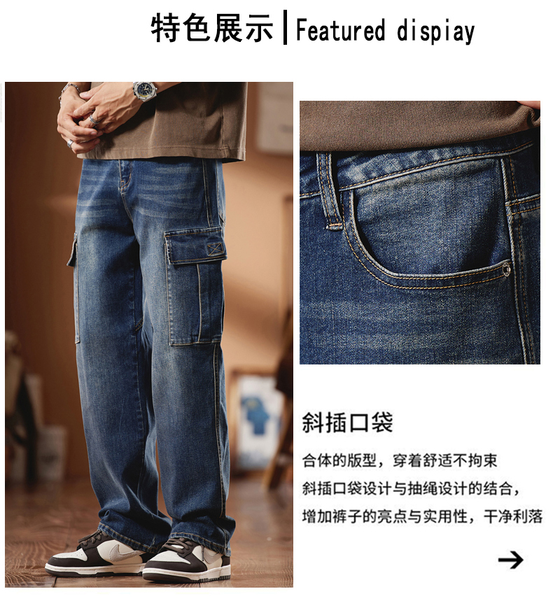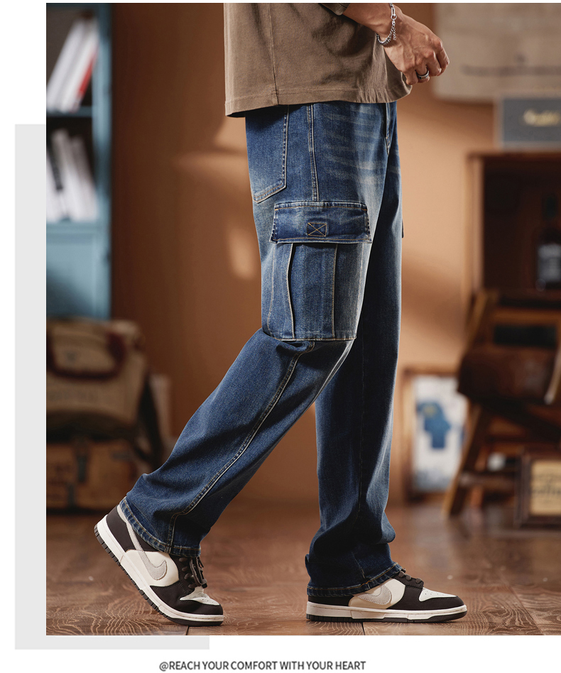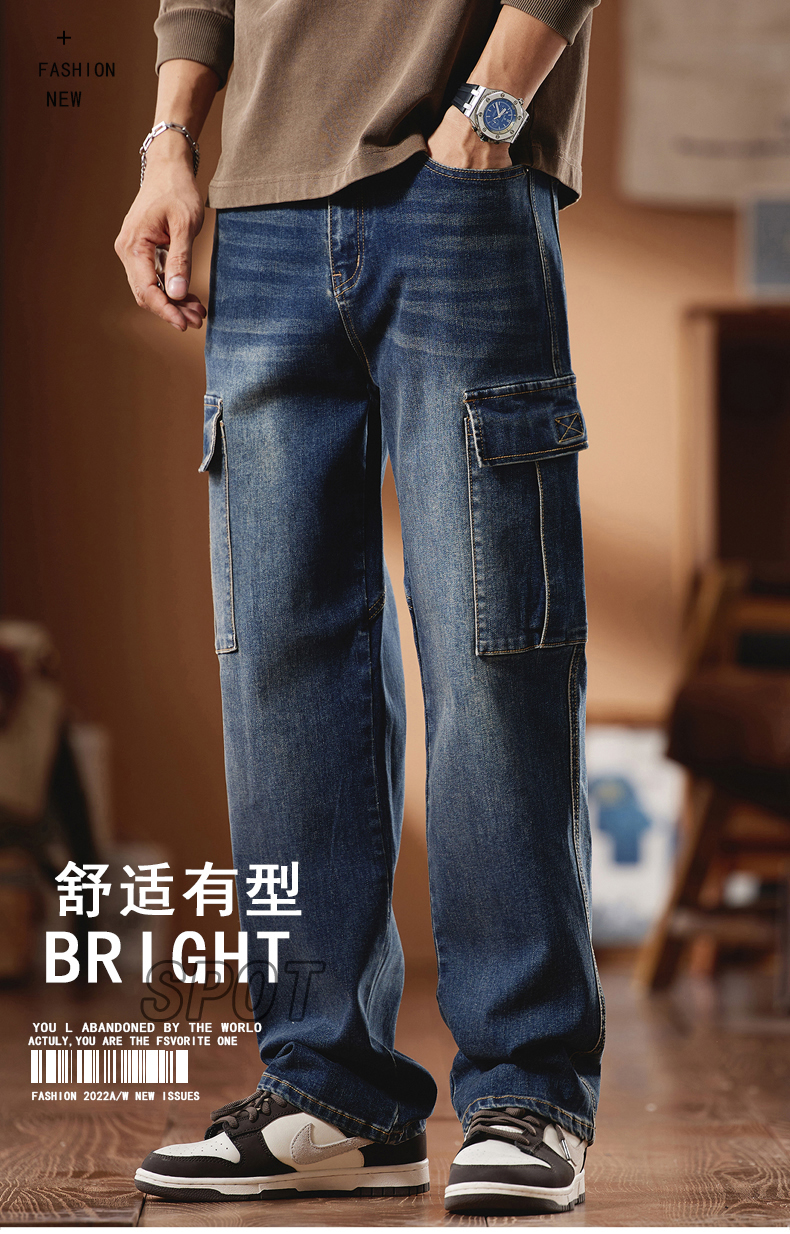 【新款DQ】大依优型大码阔腿工装牛仔裤长裤男舒适休闲简约百搭加肥加大男装潮款