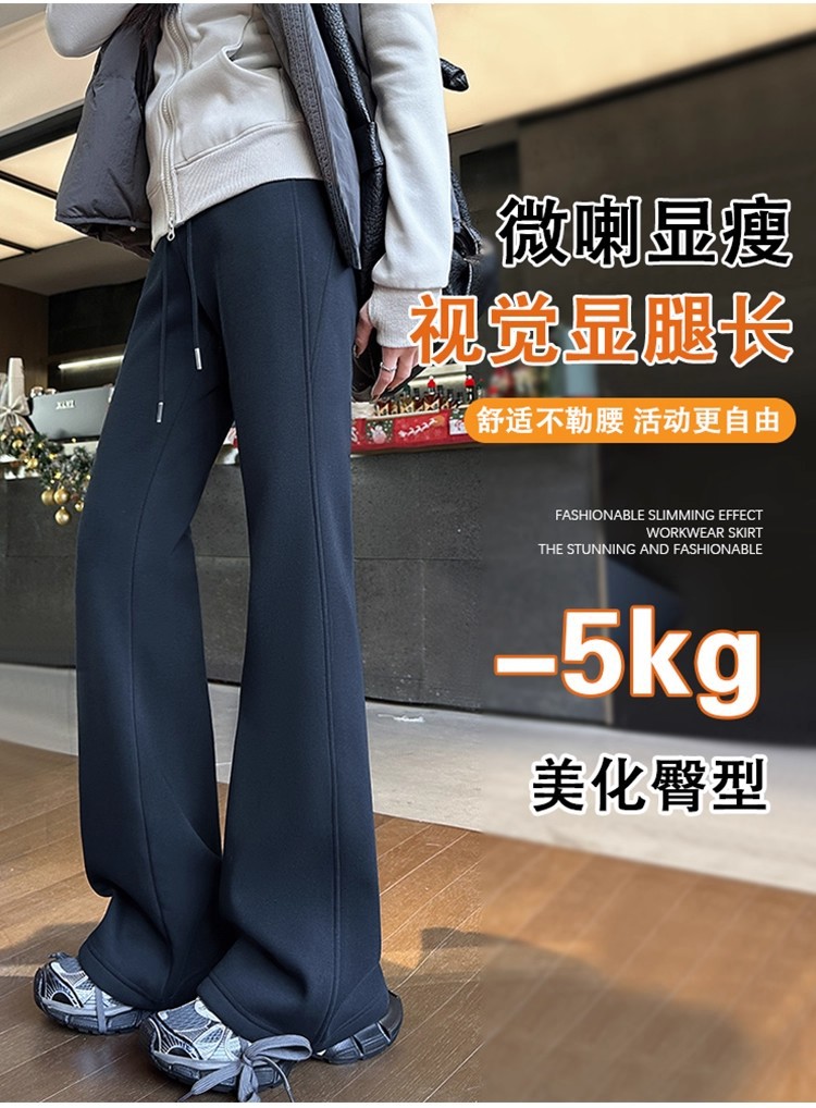 百媚生 秋冬外穿加厚加绒垂感喇叭裤W515 商品图2
