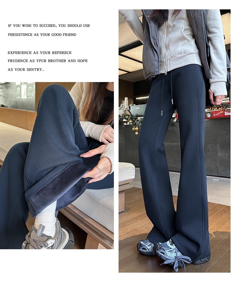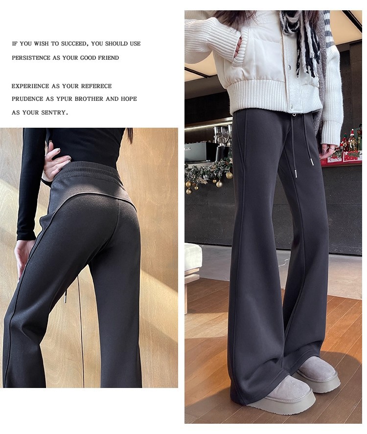 百媚生 秋冬外穿加厚加绒垂感喇叭裤W515 商品图0