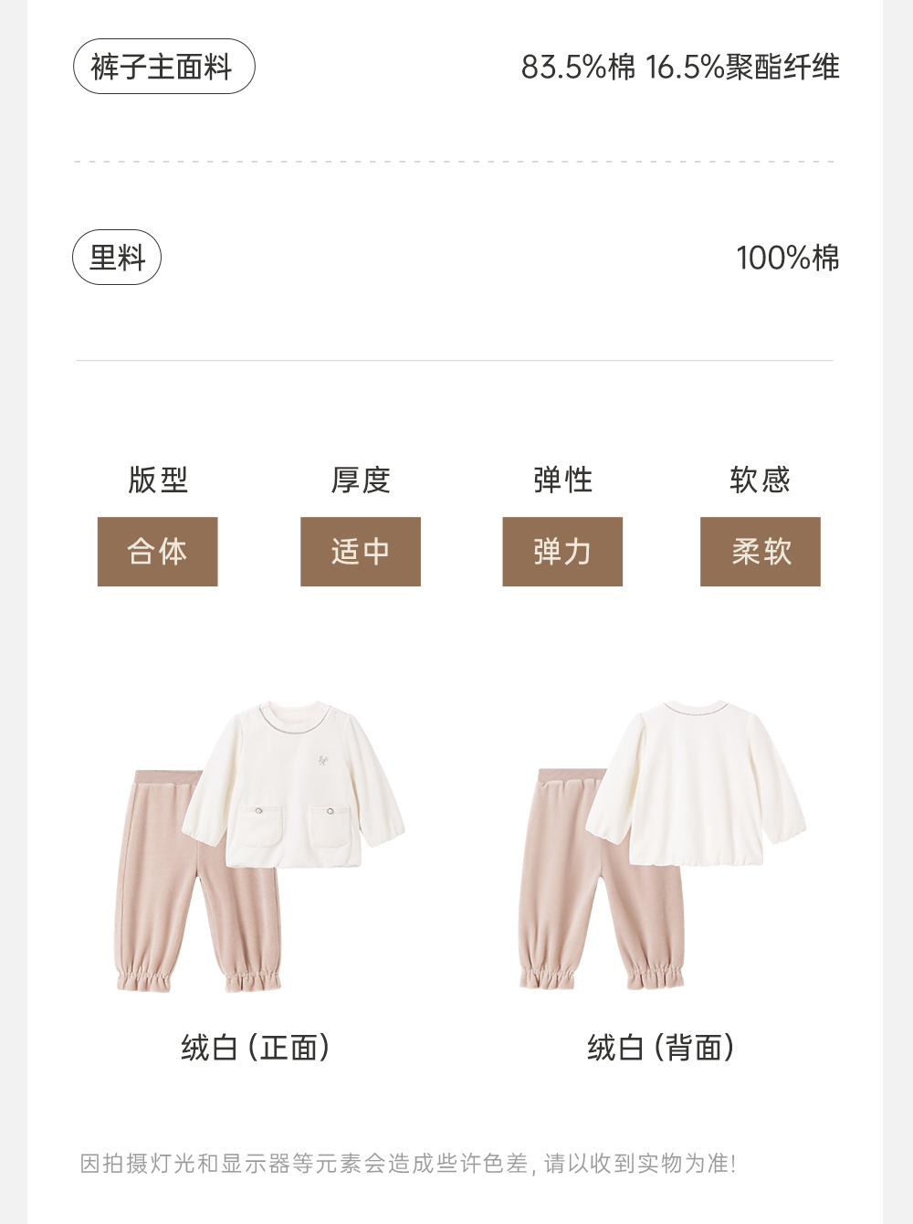 【商场同款】英氏儿童上衣裤子套装秋冬加绒保暖女童套装新款