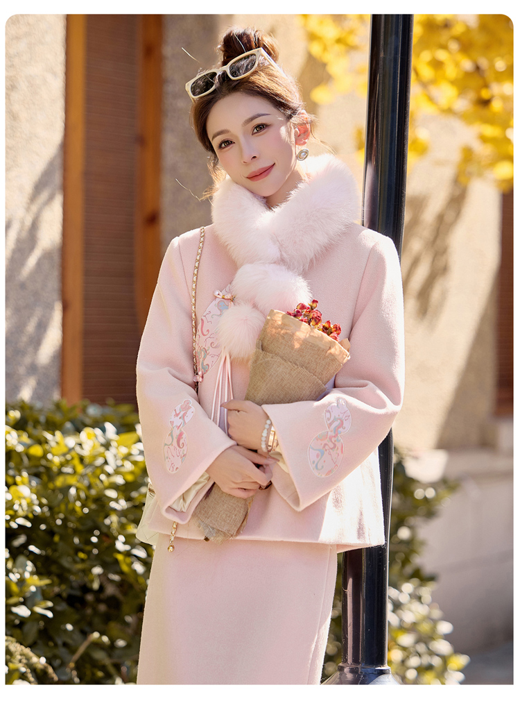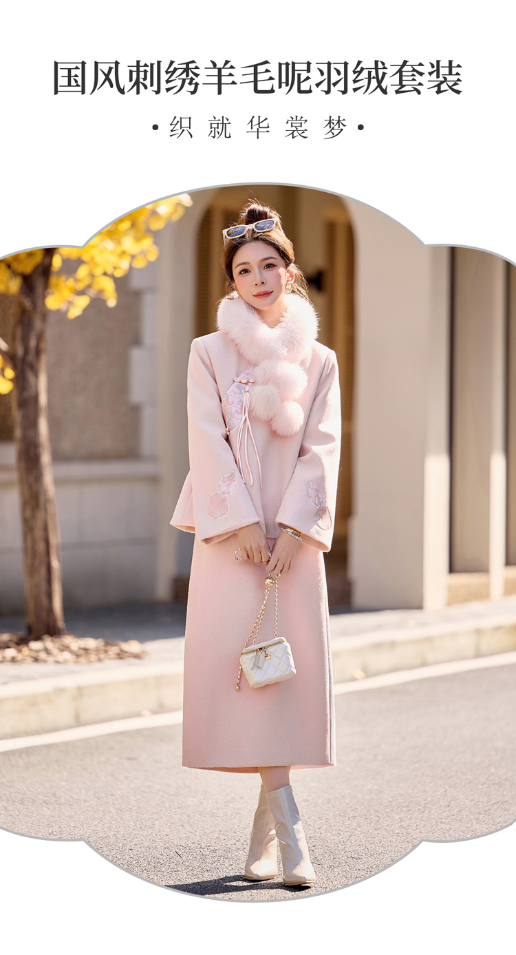 葫芦刺绣盘扣新中式,羽绒套装狐狸毛HR-YJLY86879