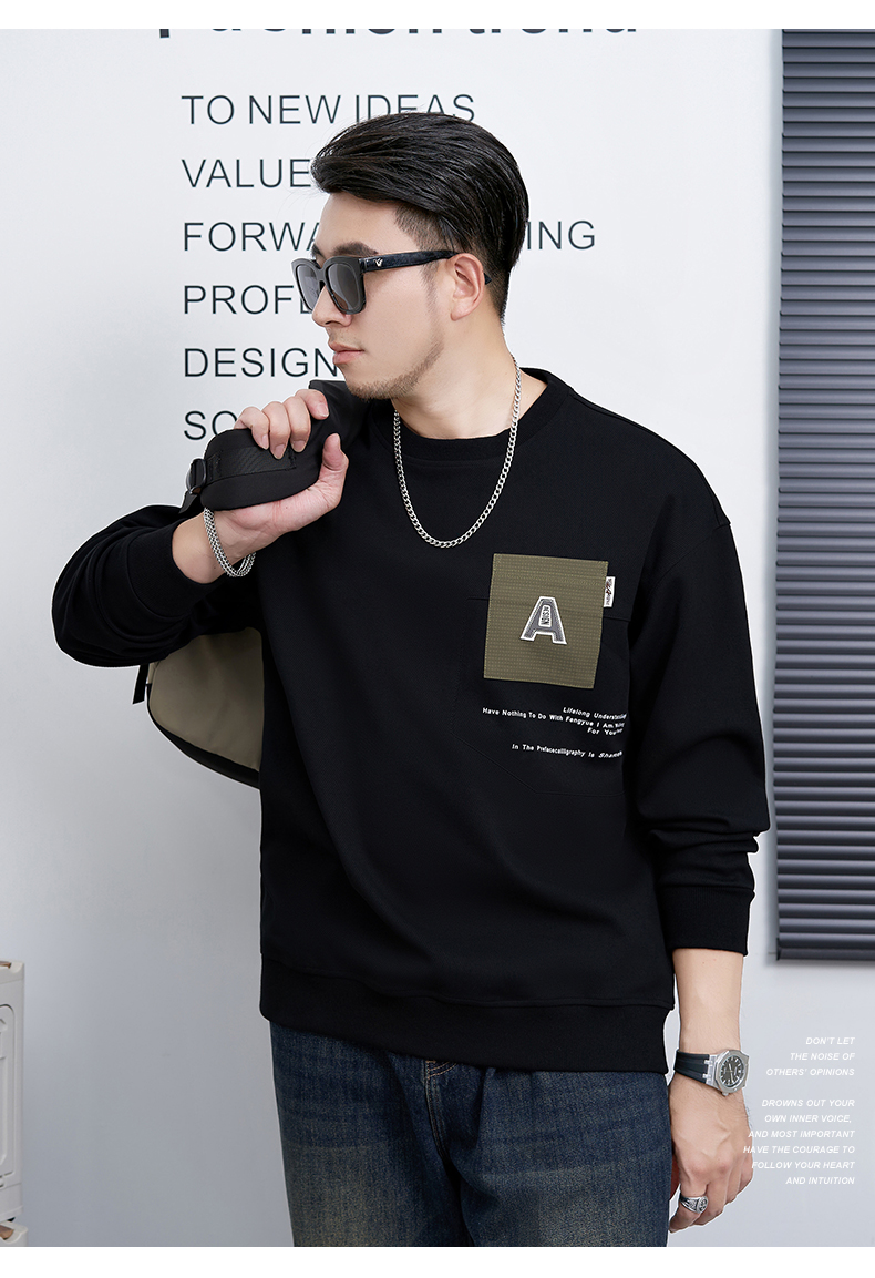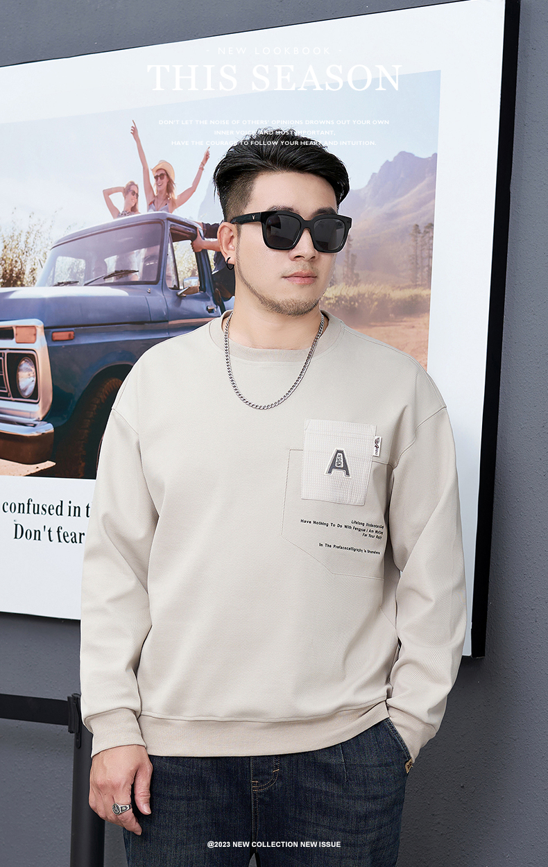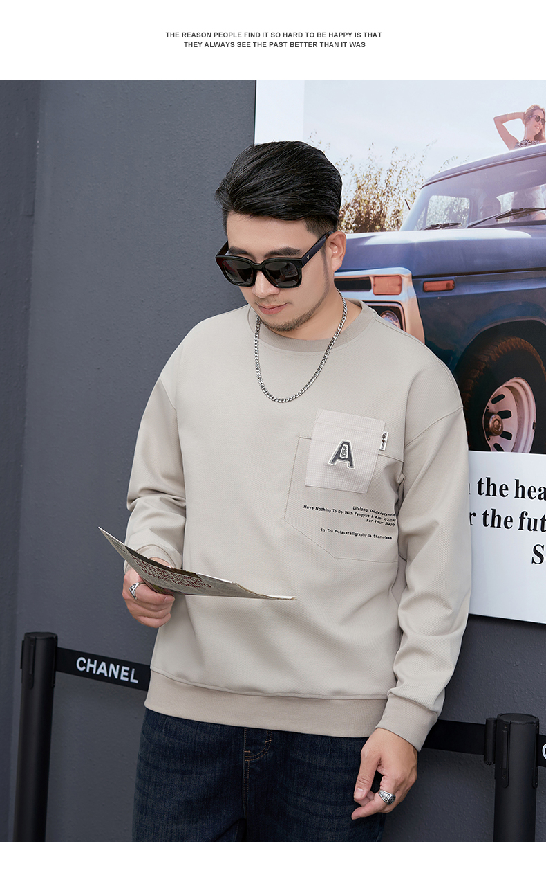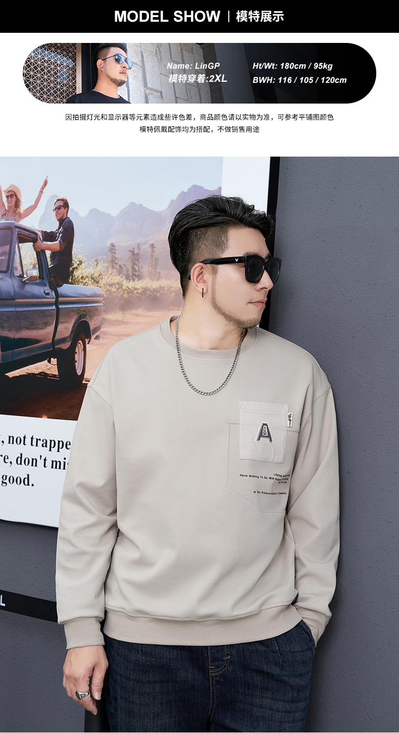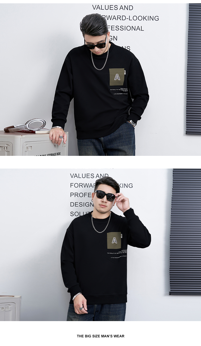 【新款DMH】大依优型大码男装圆领卫衣简约宽松上衣男士胖子打底衫300斤