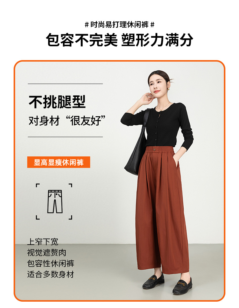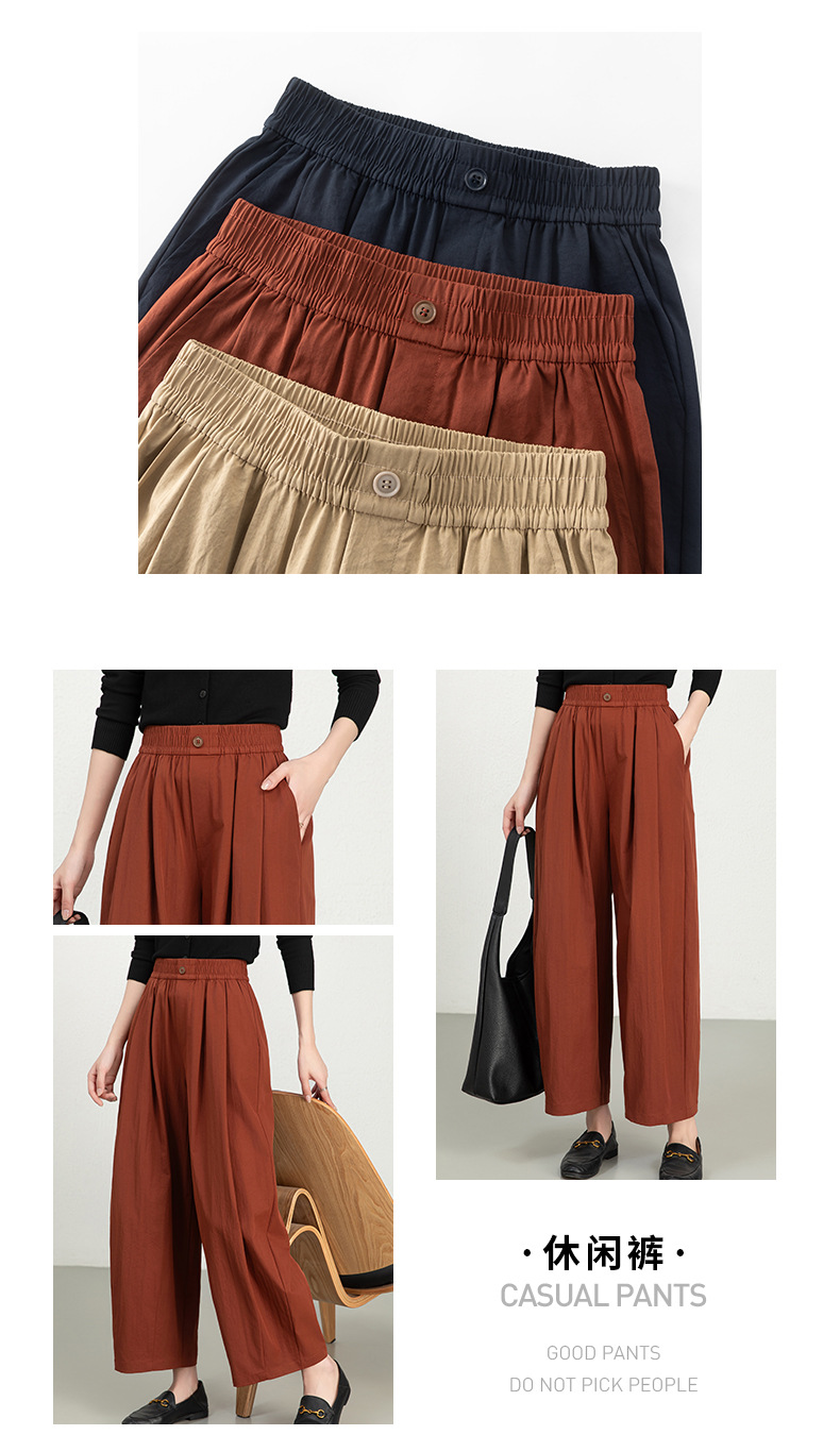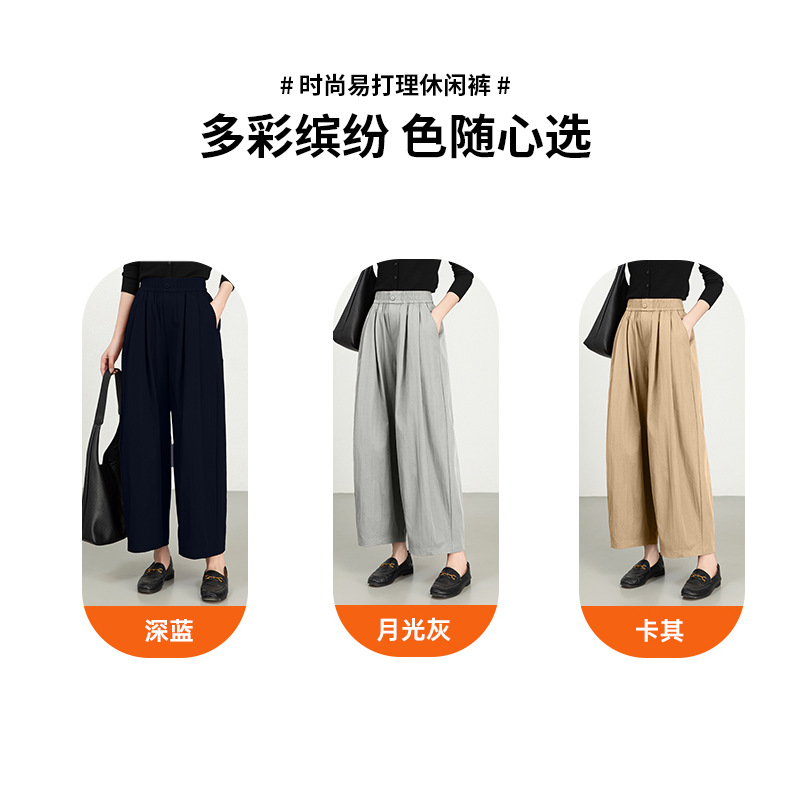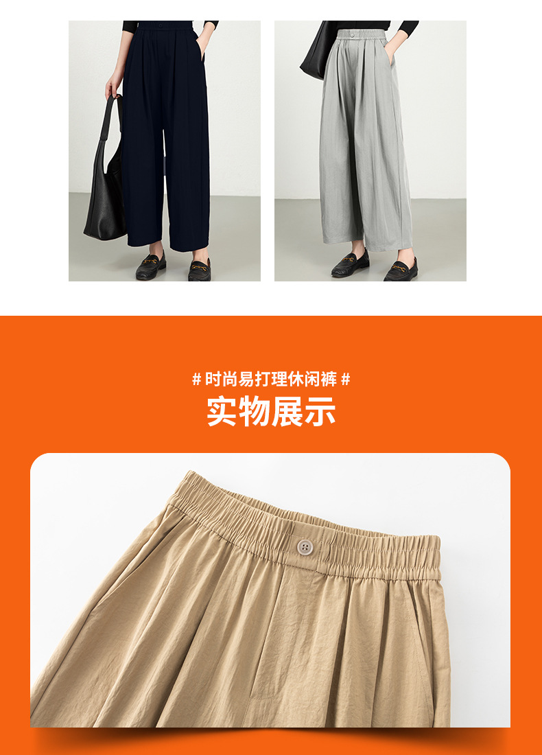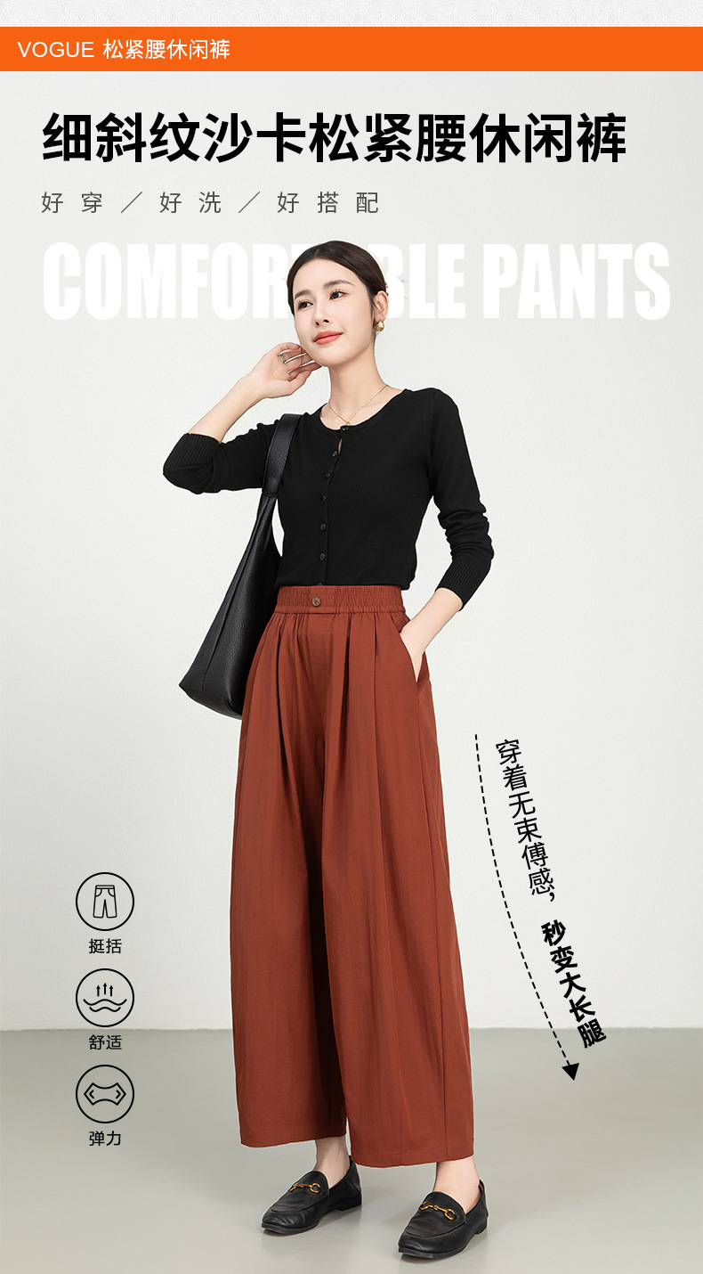 雀说春夏九分裤细斜纹沙卡松紧腰休闲裤时尚百搭休闲裤宽松女高腰ALW25CF0054