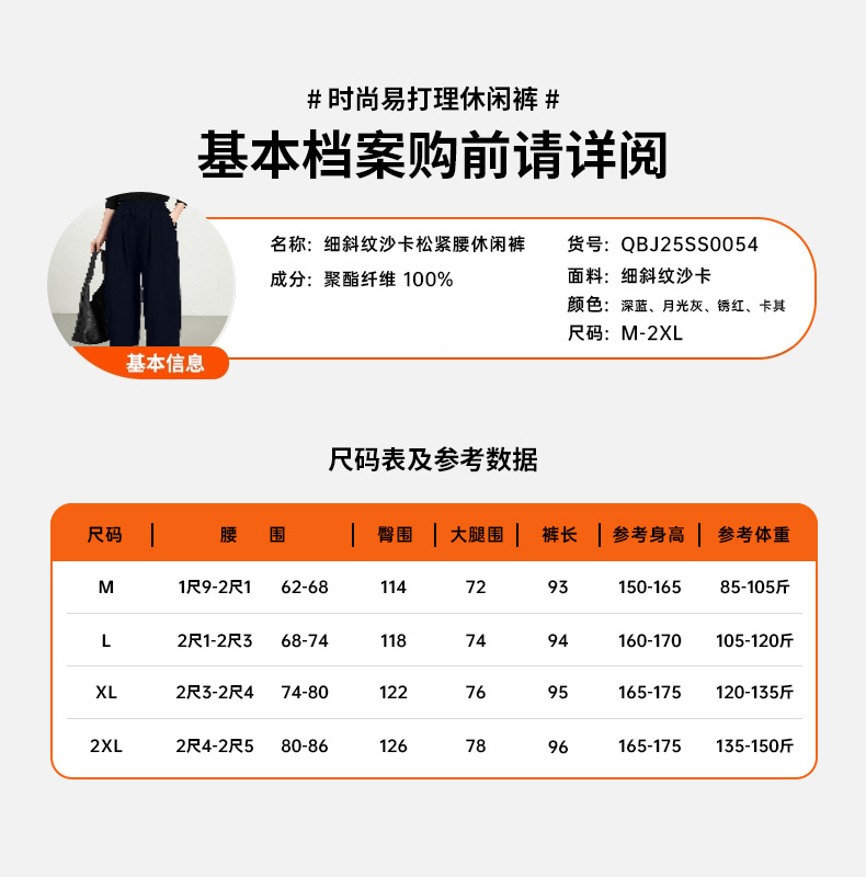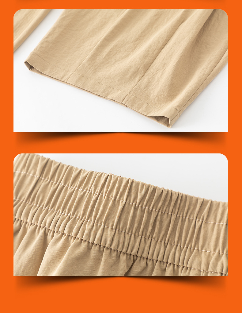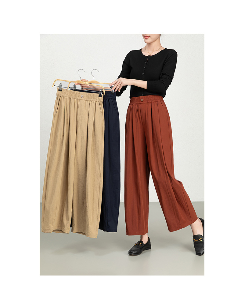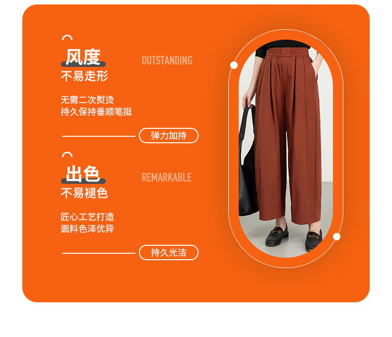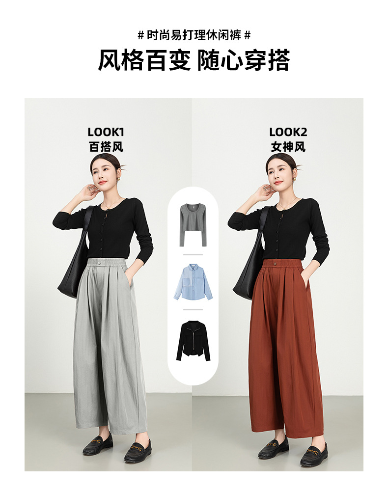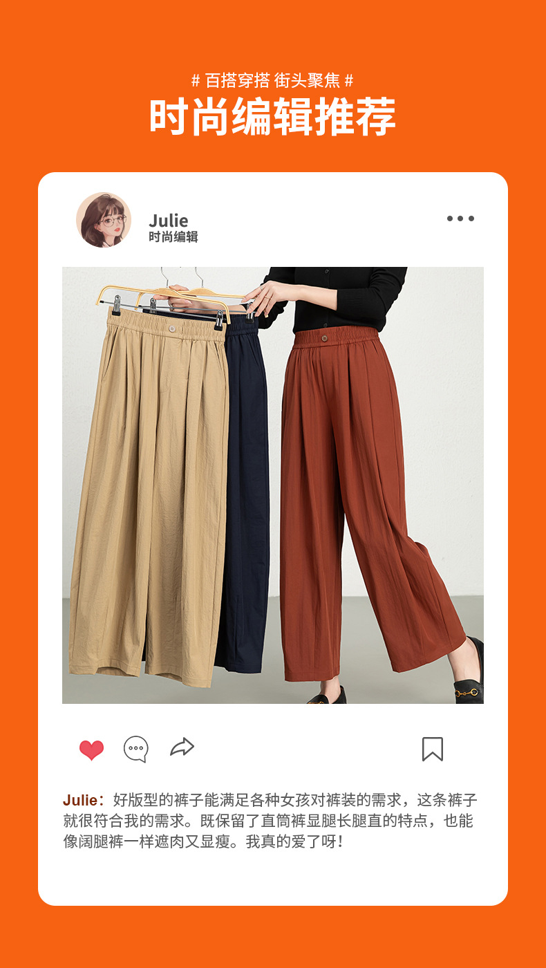 雀说春夏九分裤细斜纹沙卡松紧腰休闲裤时尚百搭休闲裤宽松女高腰ALW25CF0054