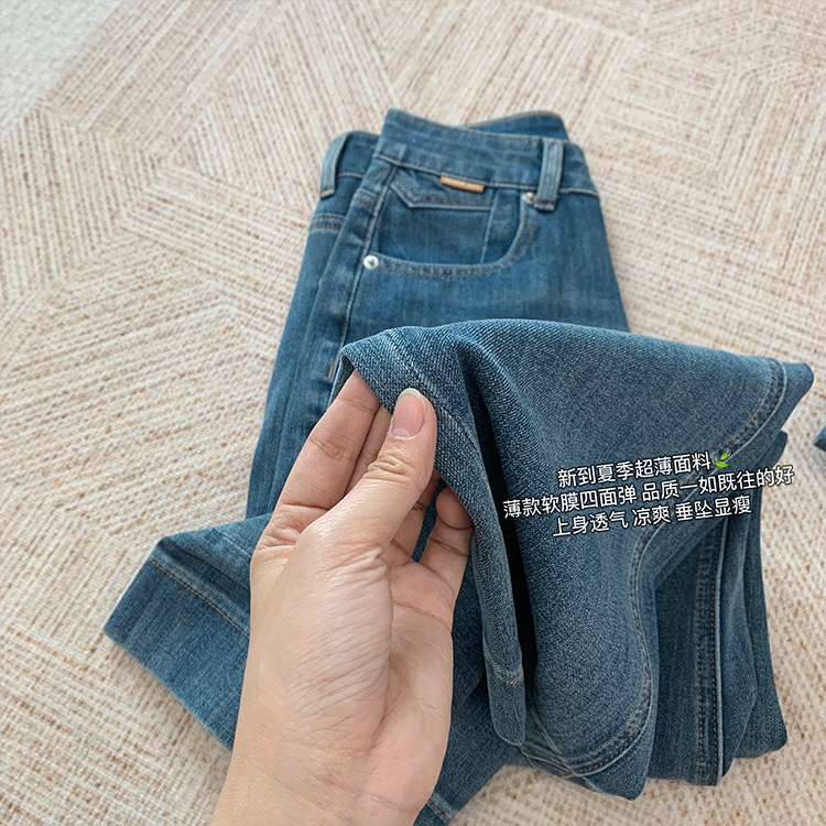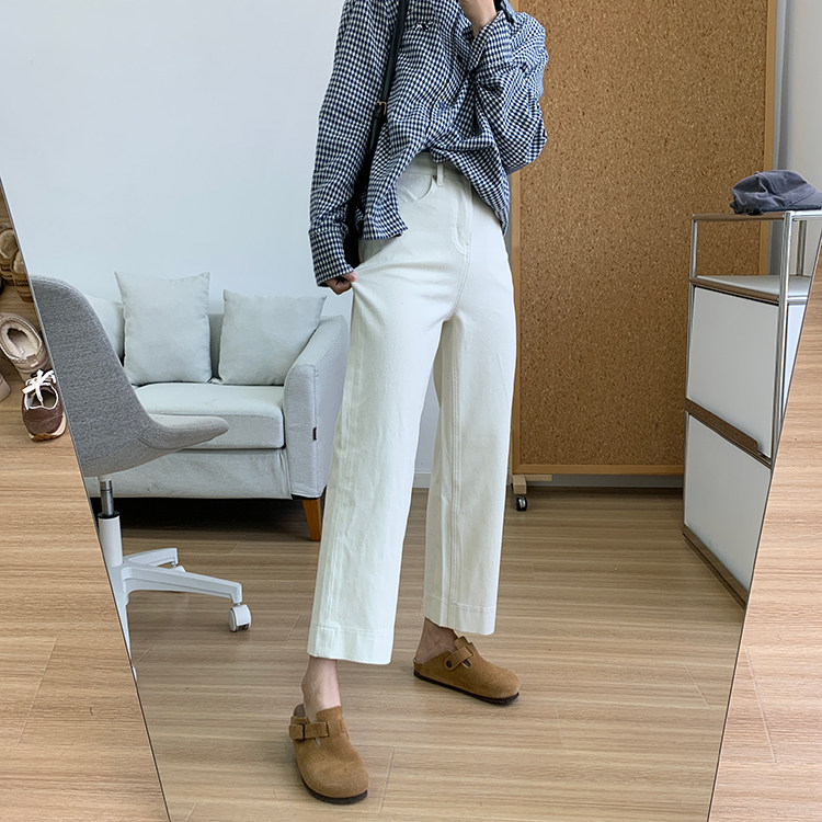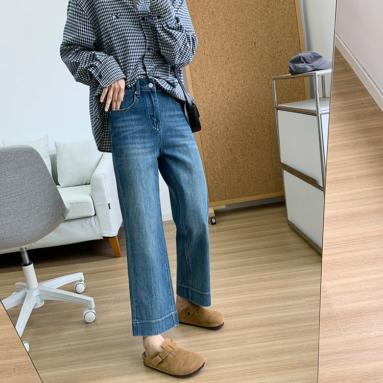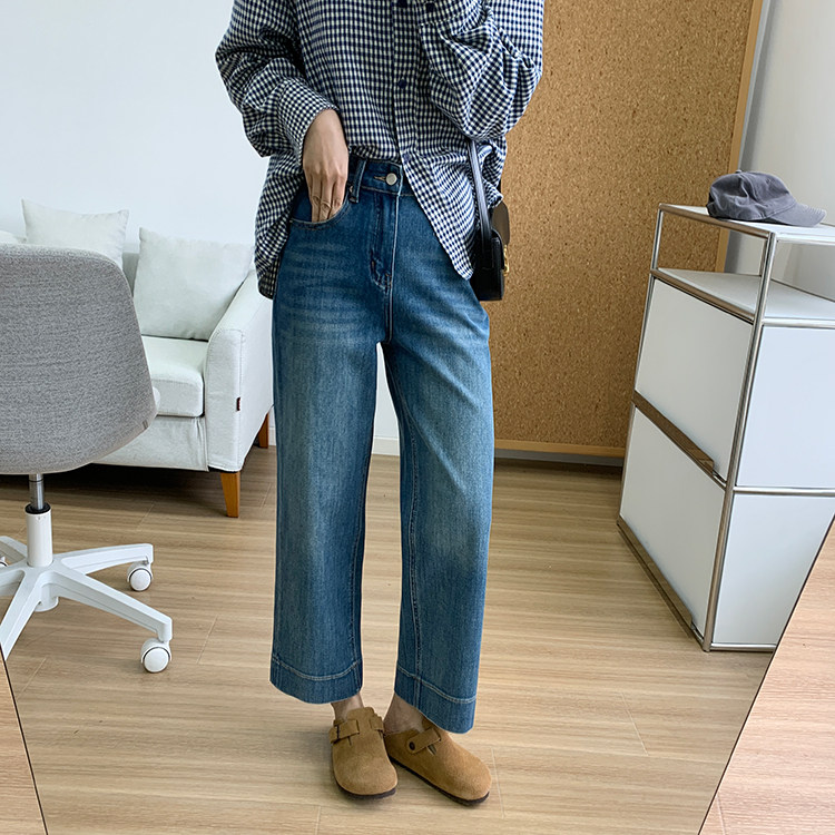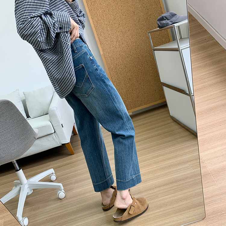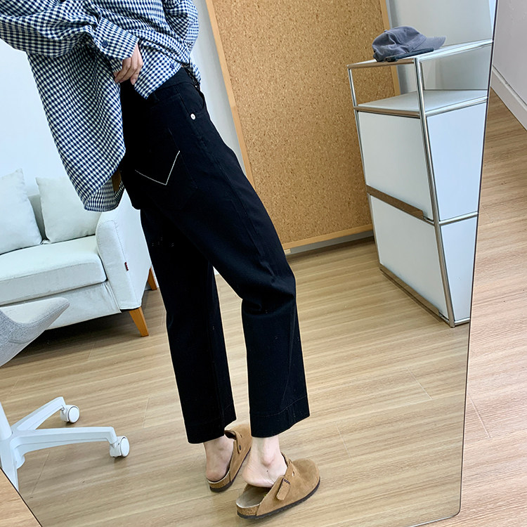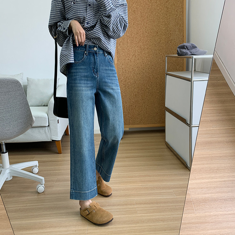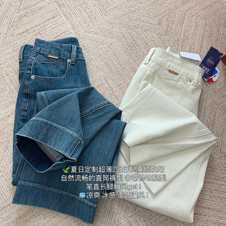 雀说神裤本裤!显瘦显直四面弹直筒牛仔裤女秋季新款小个子九分阔腿裤ALW1806