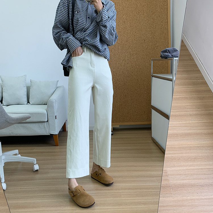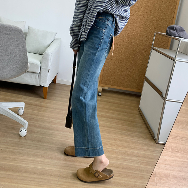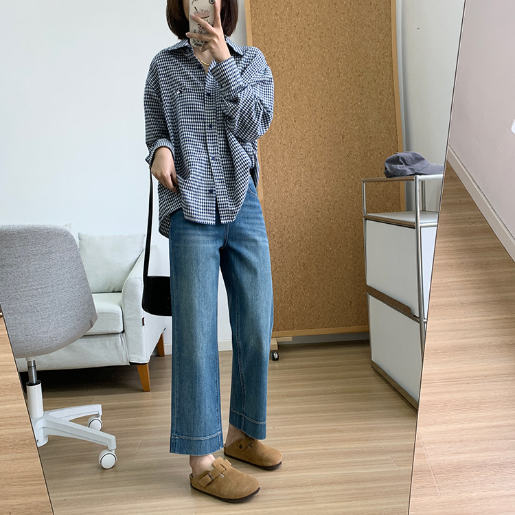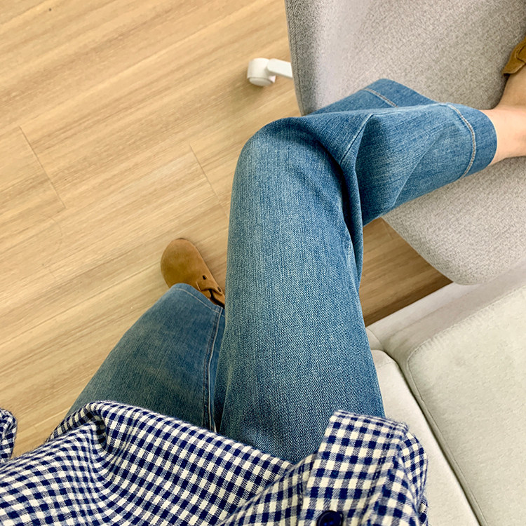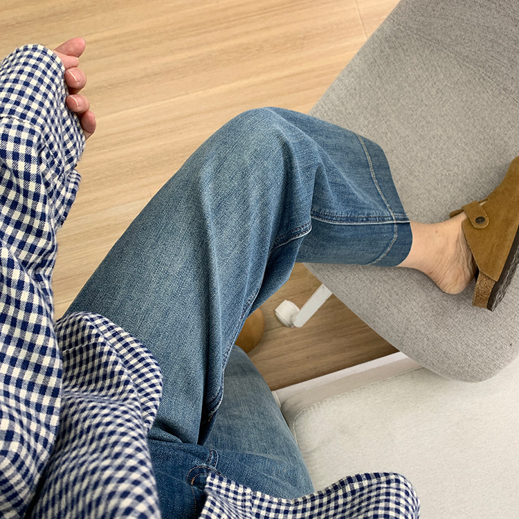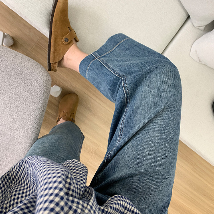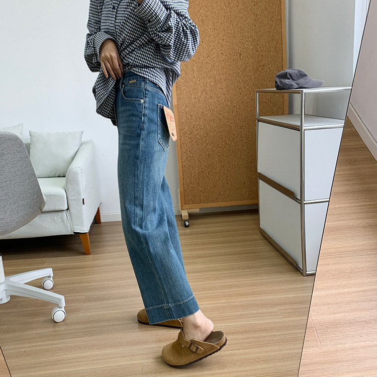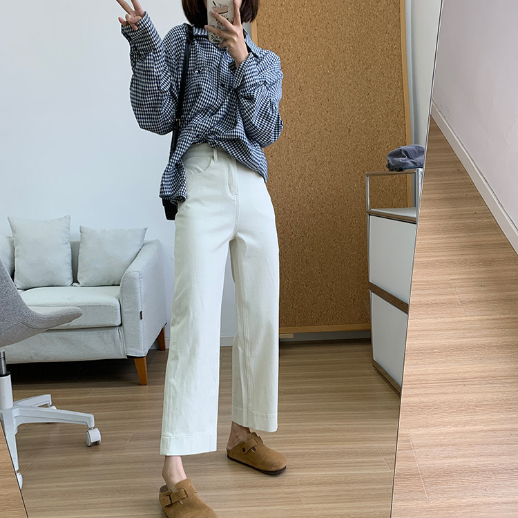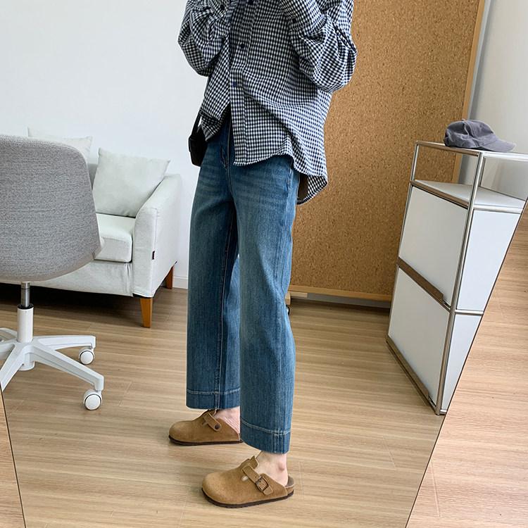 雀说神裤本裤!显瘦显直四面弹直筒牛仔裤女秋季新款小个子九分阔腿裤ALW1806