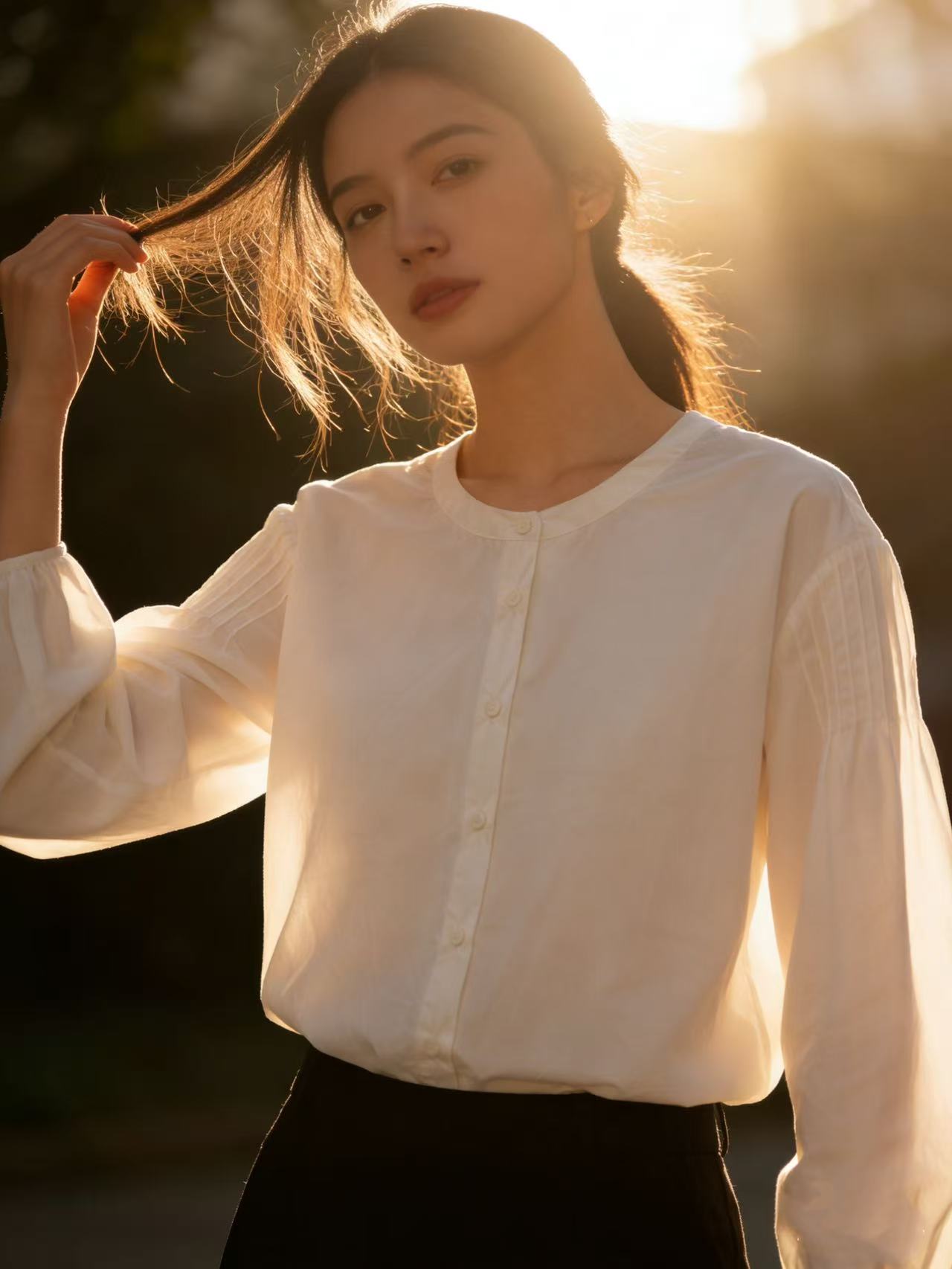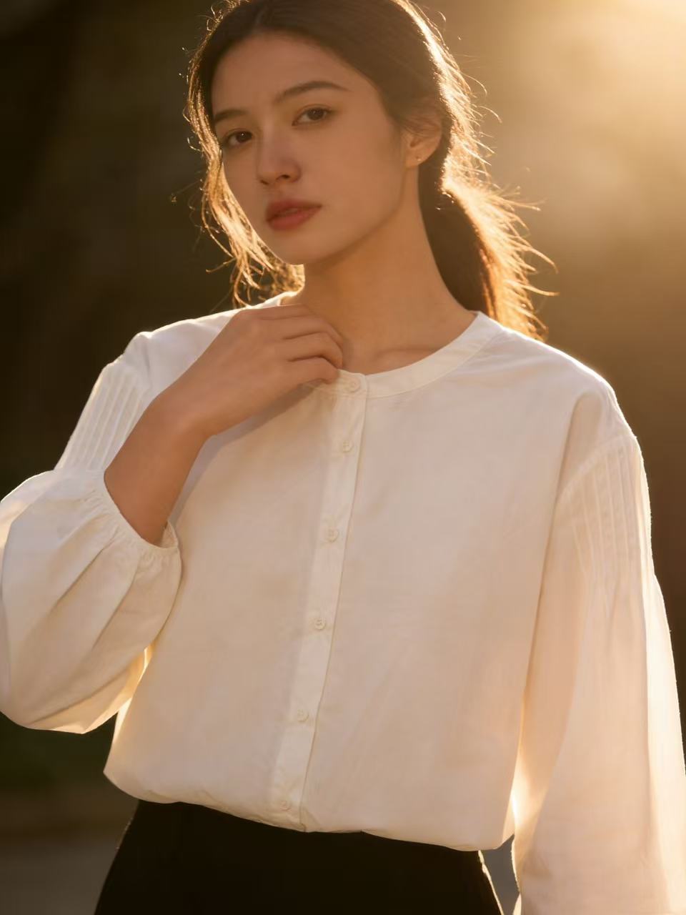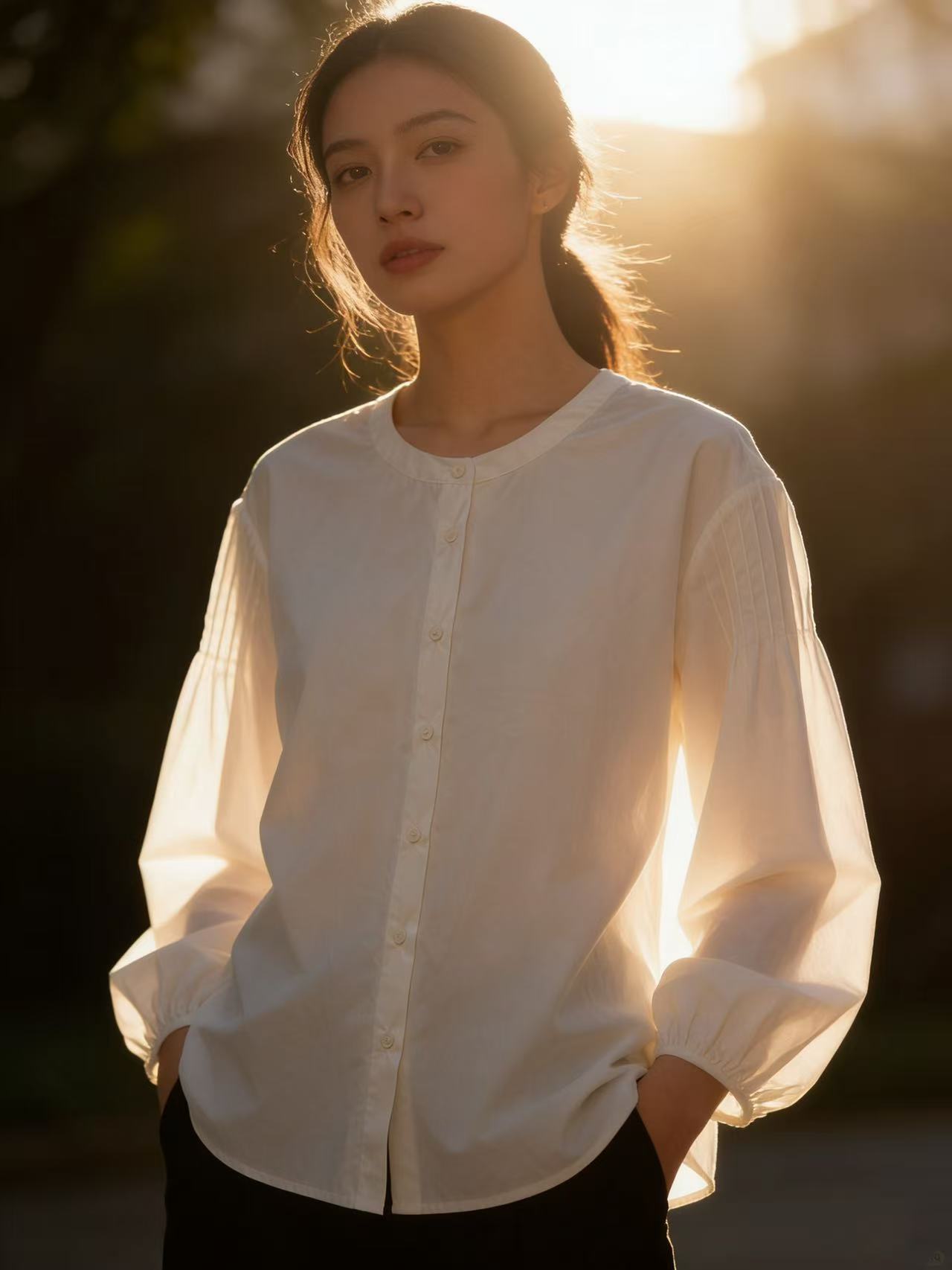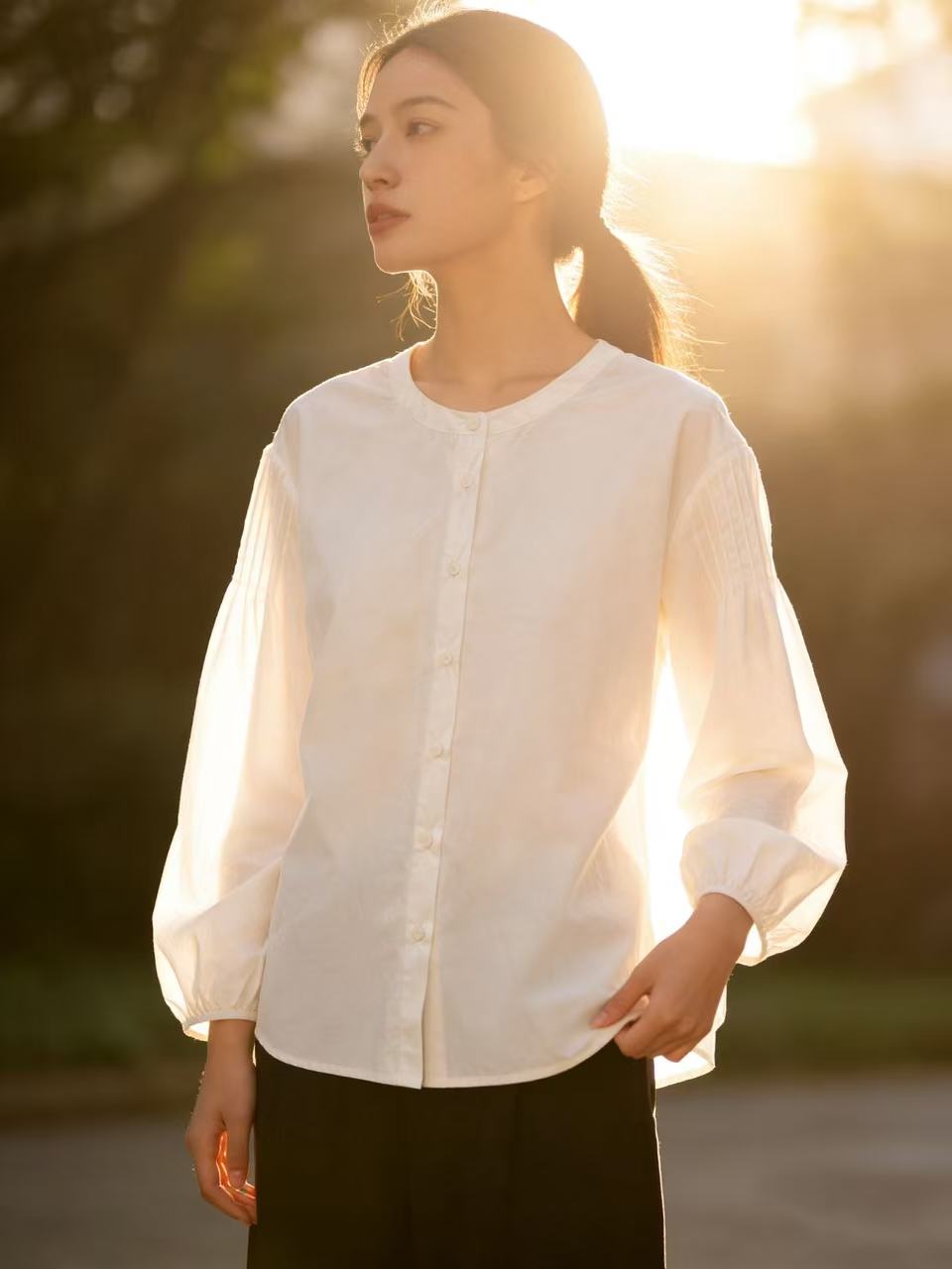 春季推荐2026→【自营】古泥品牌7868 100%棉泡泡袖圆领宽松衬衫-喜出 商品图7