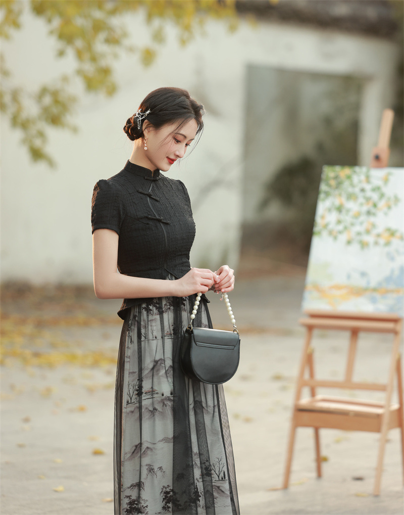 产品特点:2023春夏新款旗袍,面料舒适,质感柔软,垂感好,不缩水,不褪色,不起球,轻微弹力,更具有中华民族特色,欢迎选购