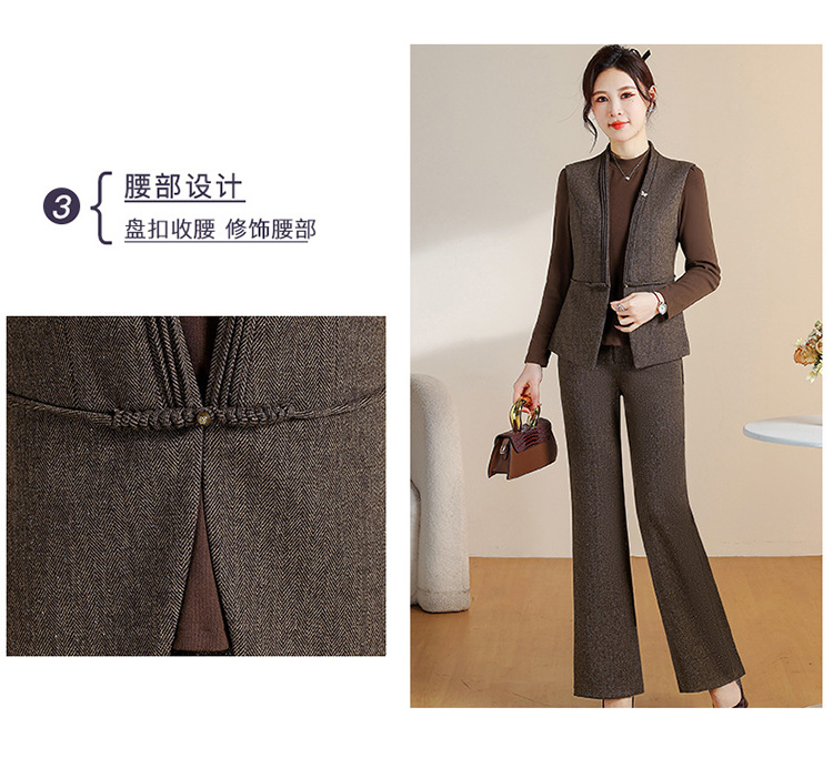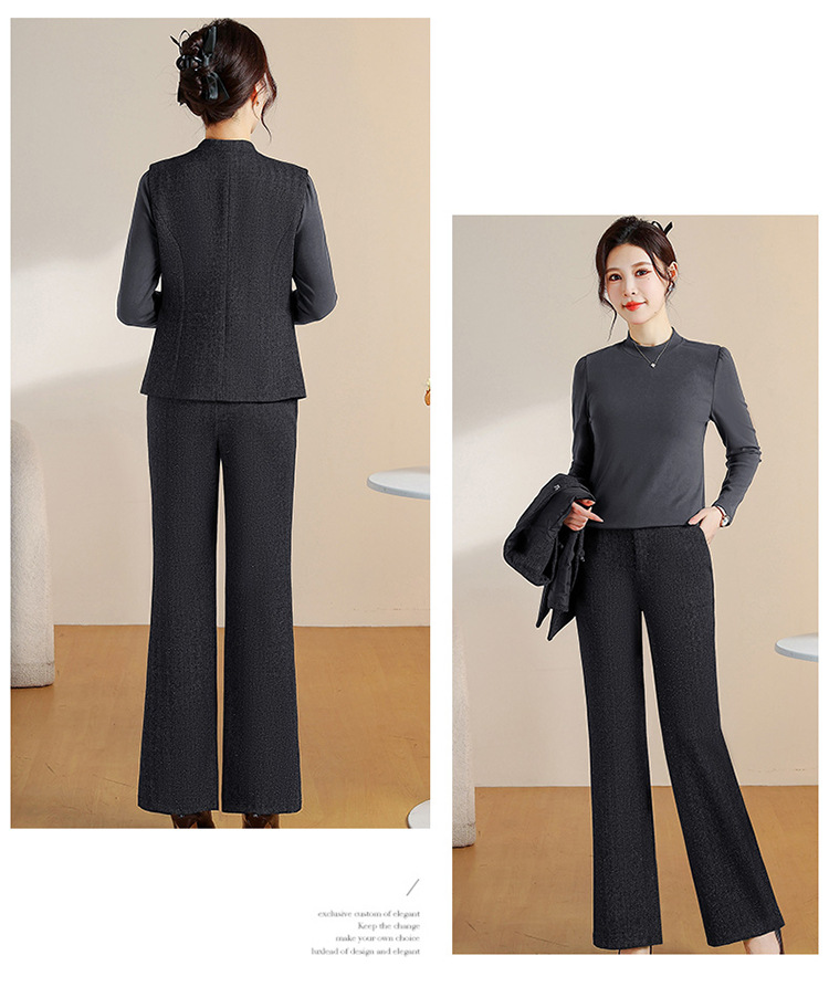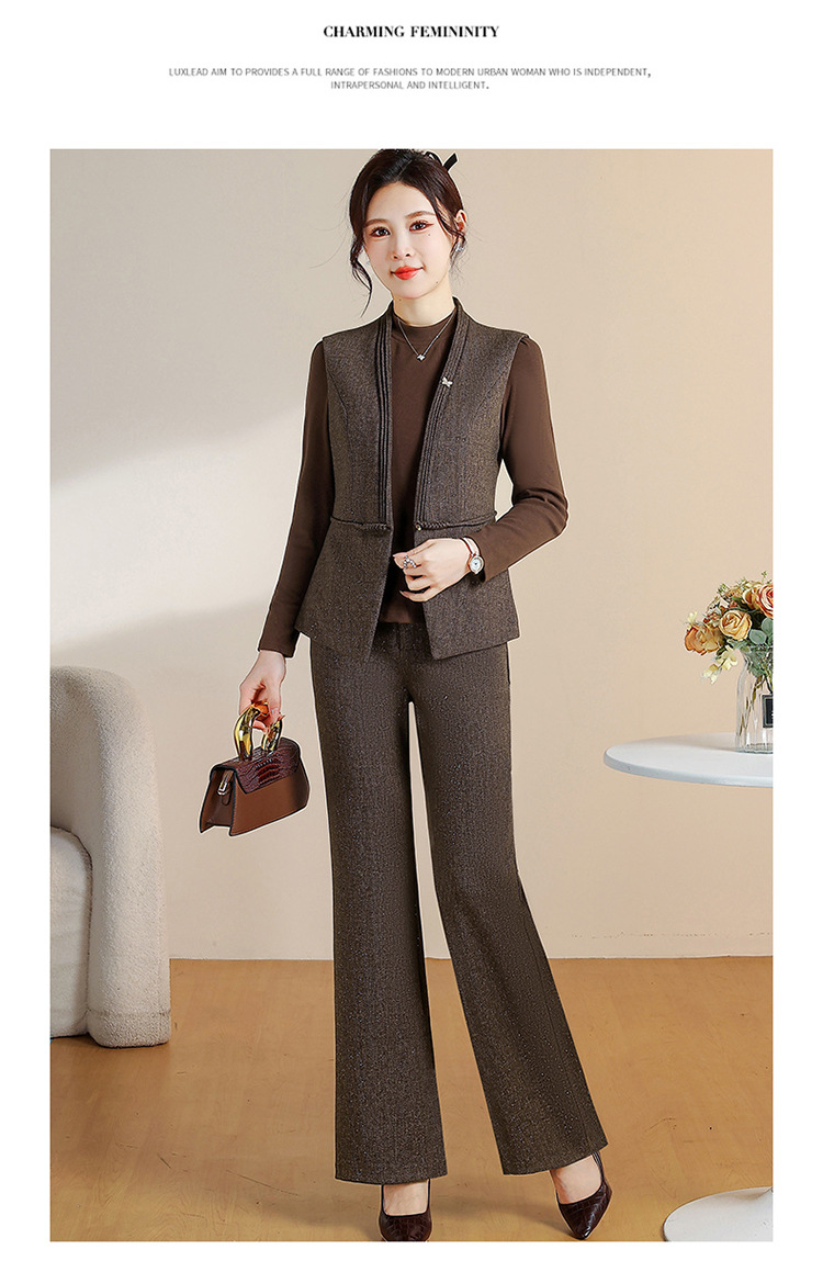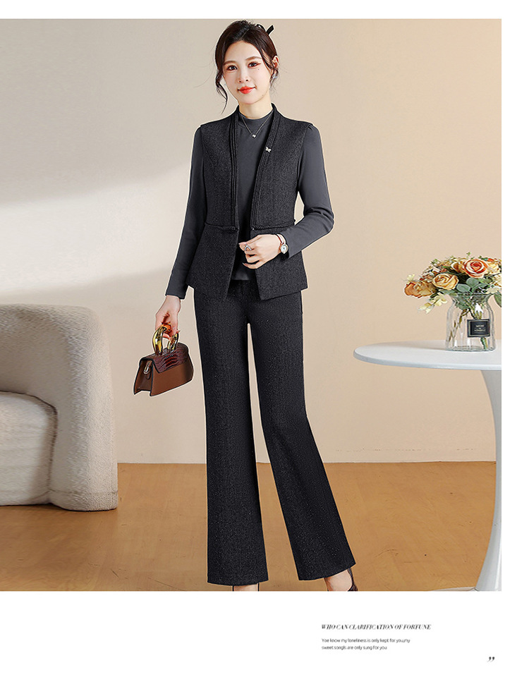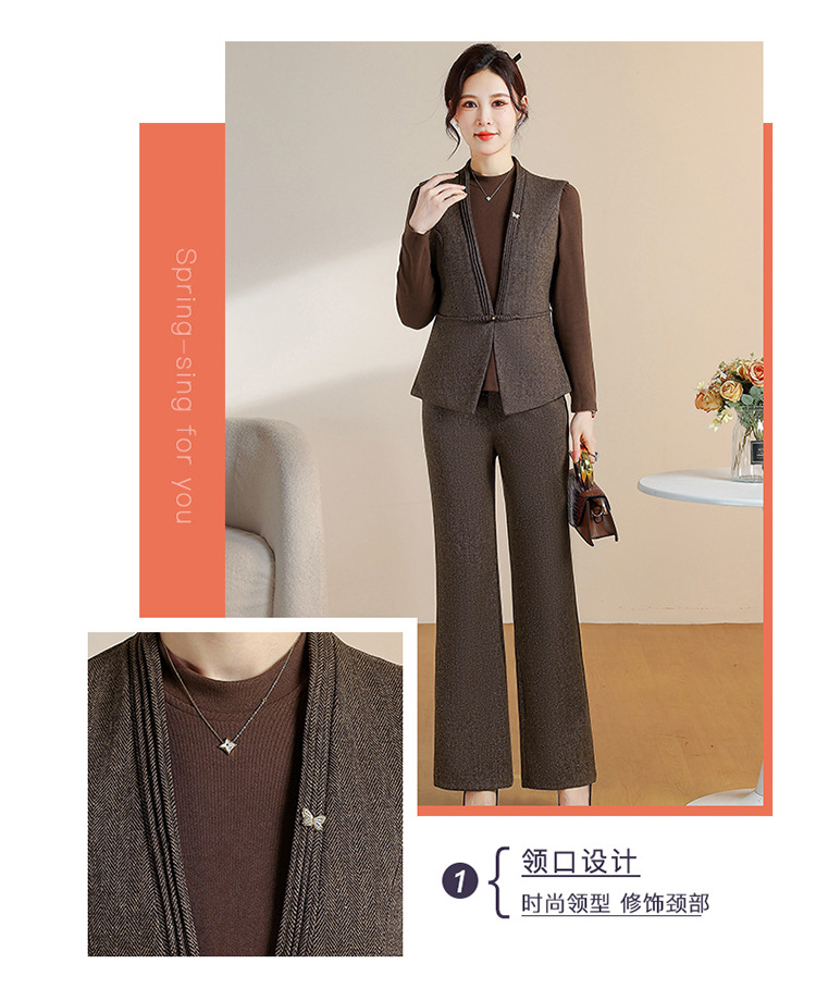 QYM LM8501-Y时尚三件套装马甲+长袖打底衫高腰直筒裤裤套装