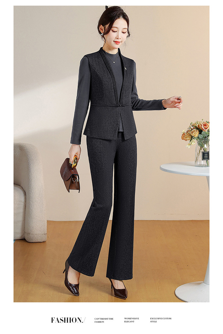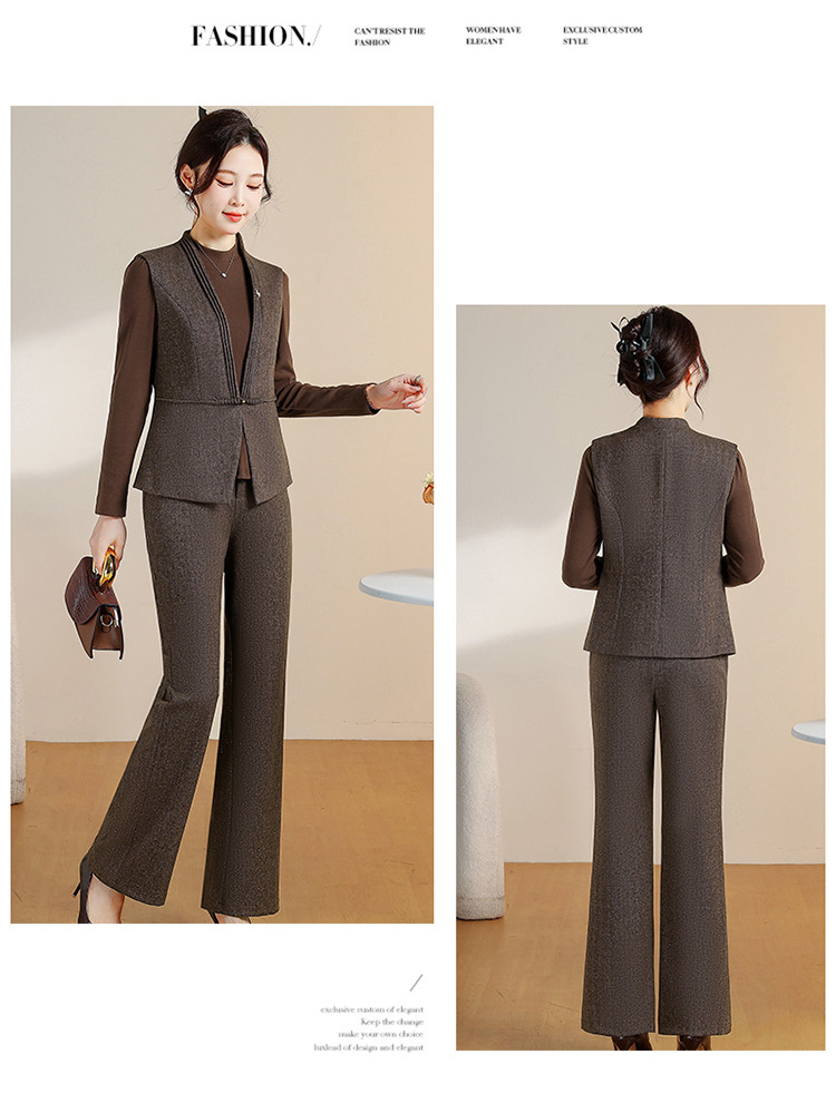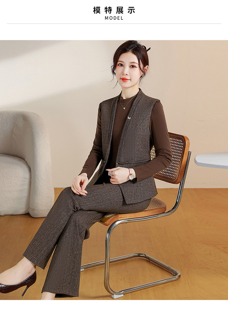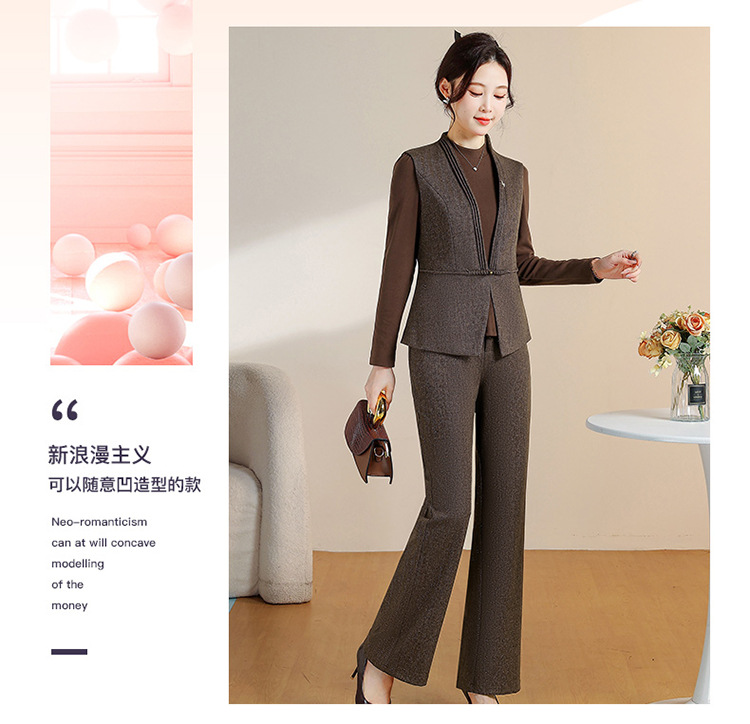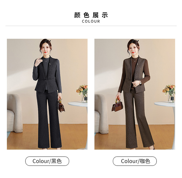 QYM LM8501-Y时尚三件套装马甲+长袖打底衫高腰直筒裤裤套装