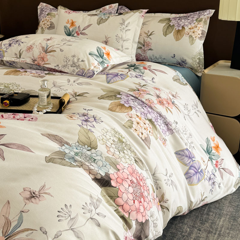【阳光棉 好睡眠】QIUBAN秋板繁花似锦长绒棉四件套 80支新疆长绒棉 陌上花开 锦上添花 AB双版 可机洗水洗