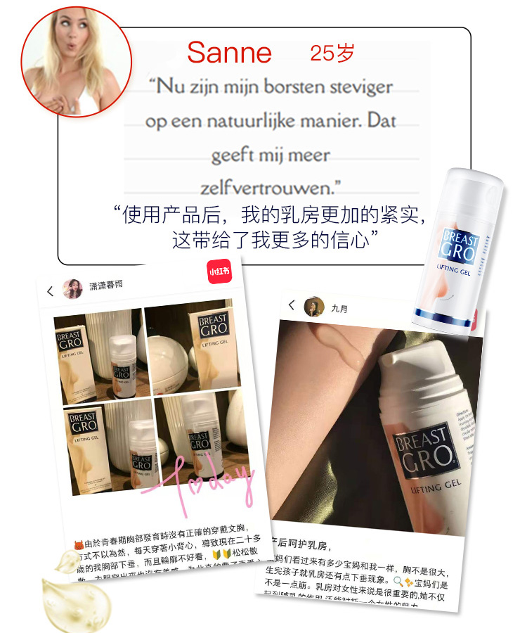 【荷兰进口美胸专研】breastgro宝伊丰美胸精华乳修复啫喱外用美胸产后提拉乳霜啫喱非食品