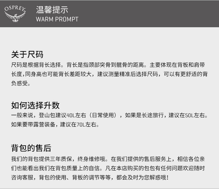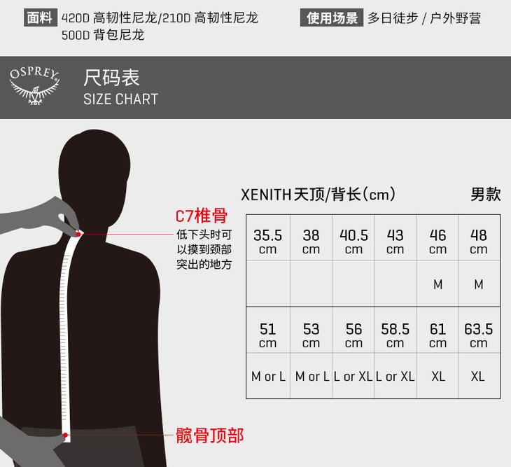 Osprey Xenith天顶 户外登山包徒步双肩背包自带热力塑型腰带
