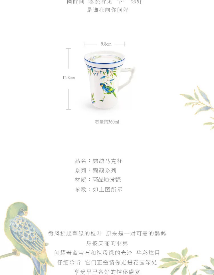 【玛戈隆特】鹦鹉餐具马克杯带盖旅行茶具全加桶