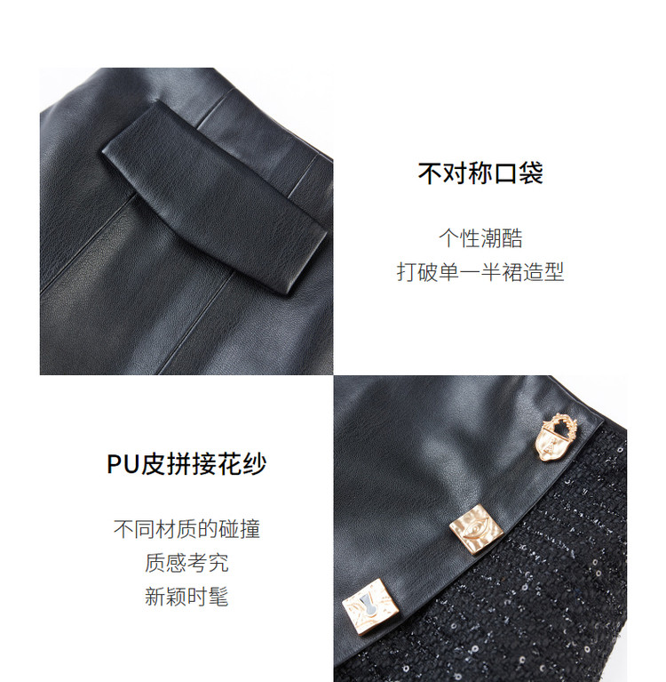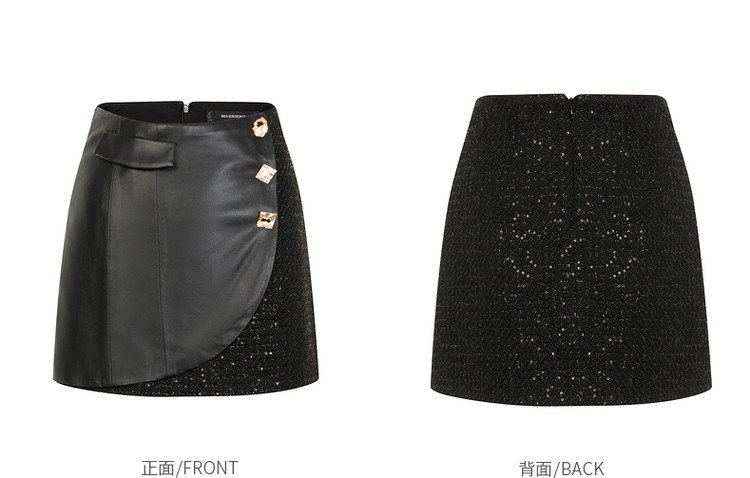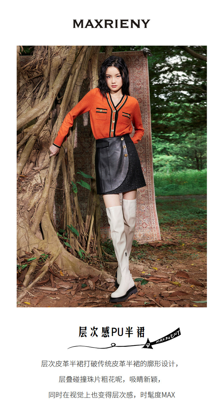 MAXRIENY层次感复古半裙2023冬季新款皮质短裙A字裙MC87SK775A90