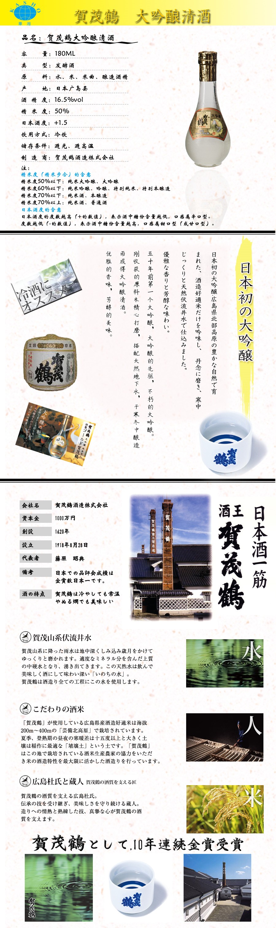 【华湘 贺茂鹤】 大吟酿清酒180ML(无拎袋无盒)