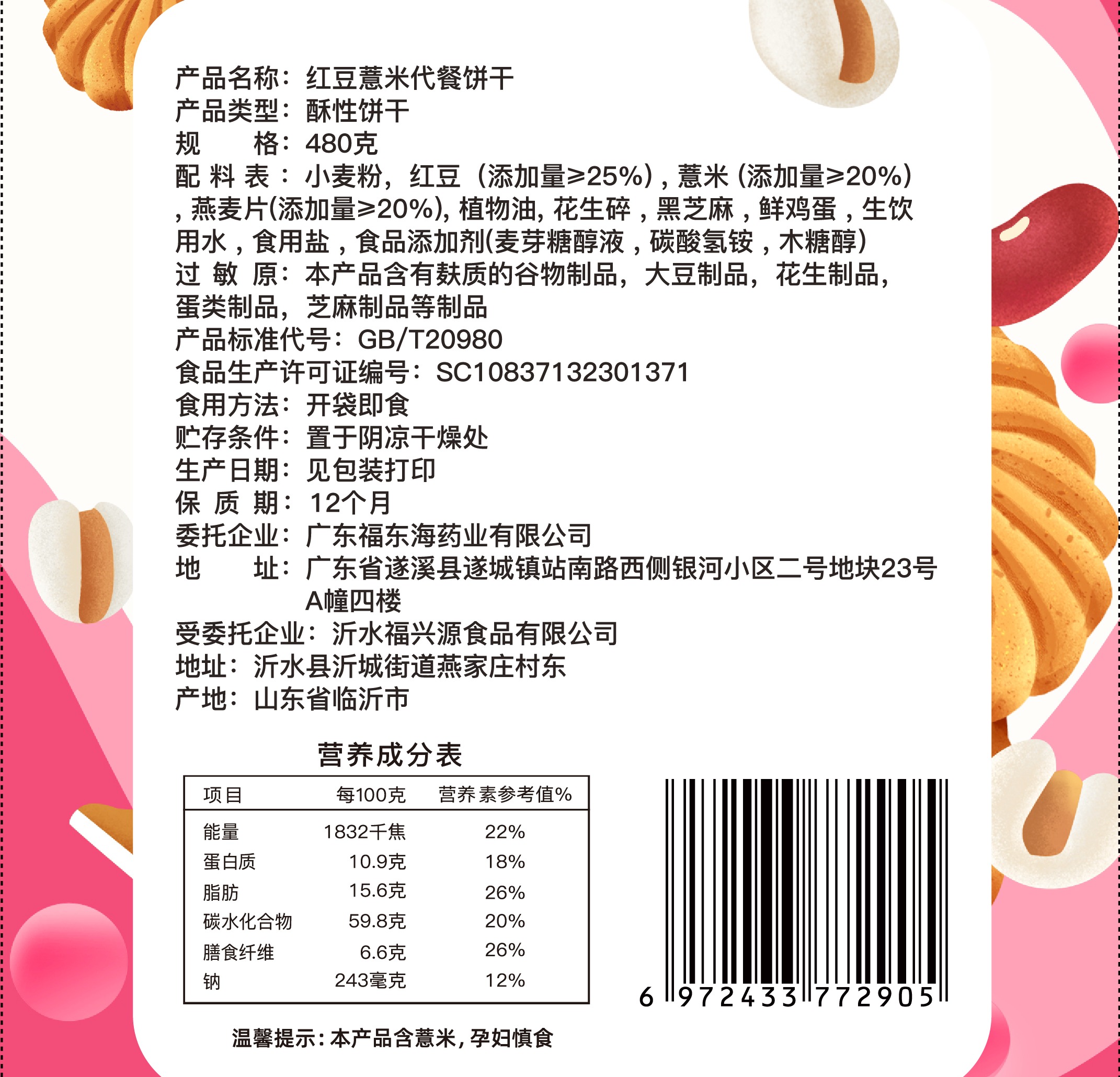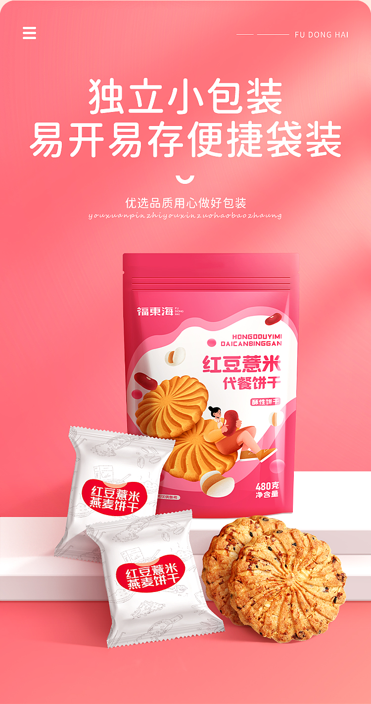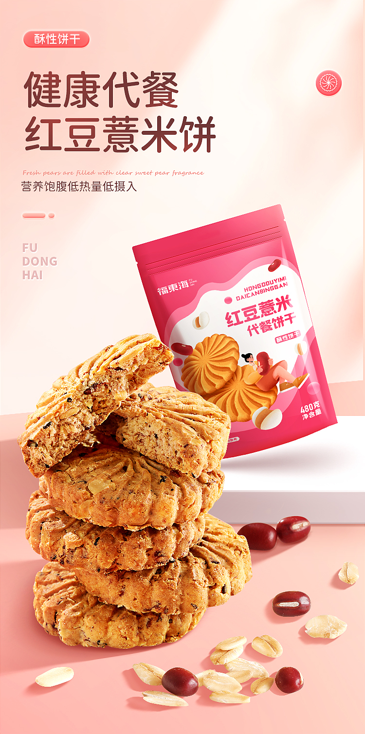 福东海红豆薏米饼干零食红豆饼薏米粉薏苡仁饼红豆薏仁饼干480克袋装--MD