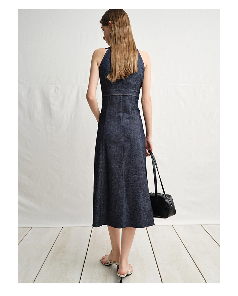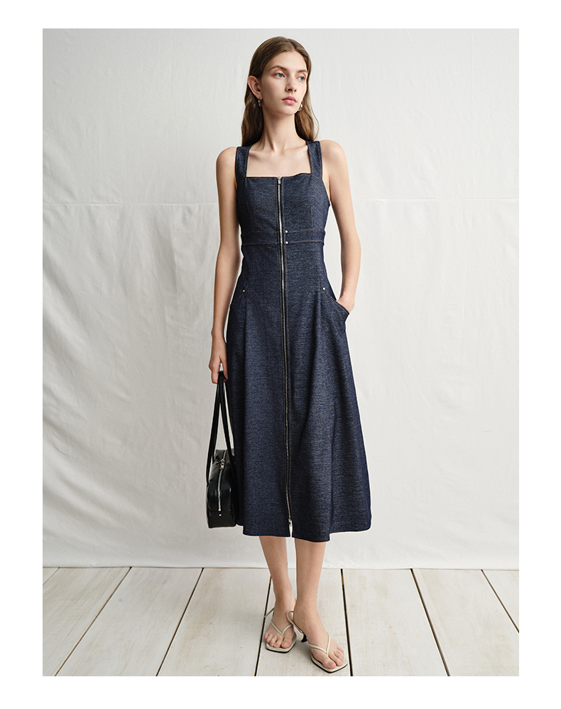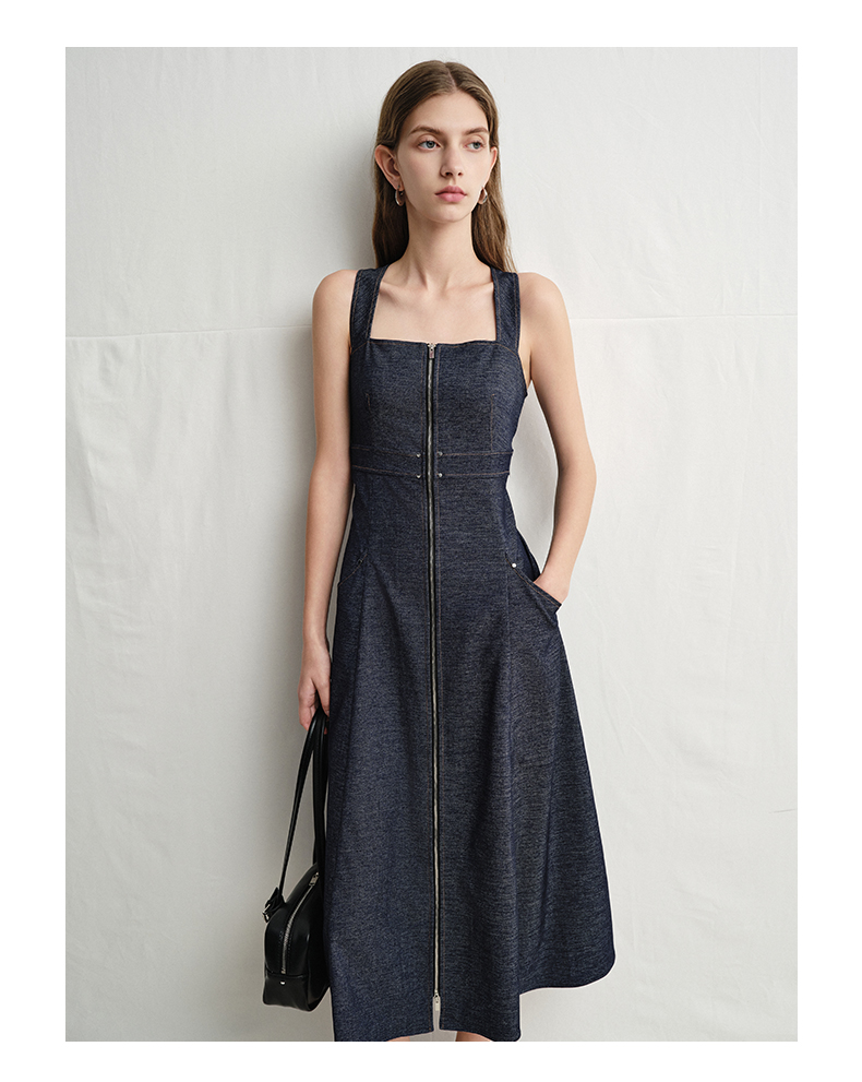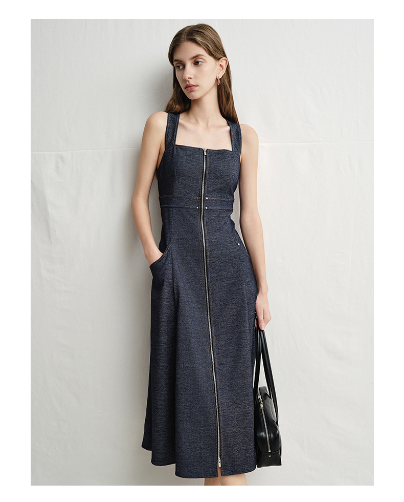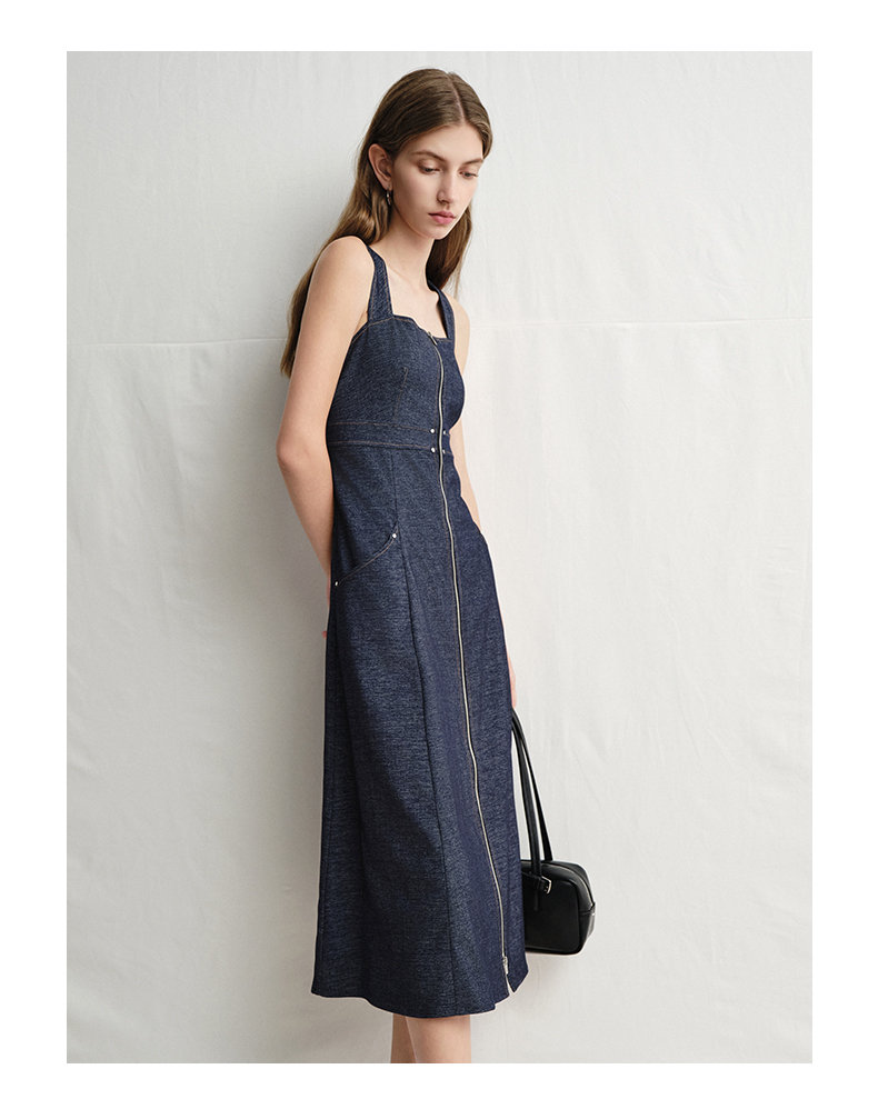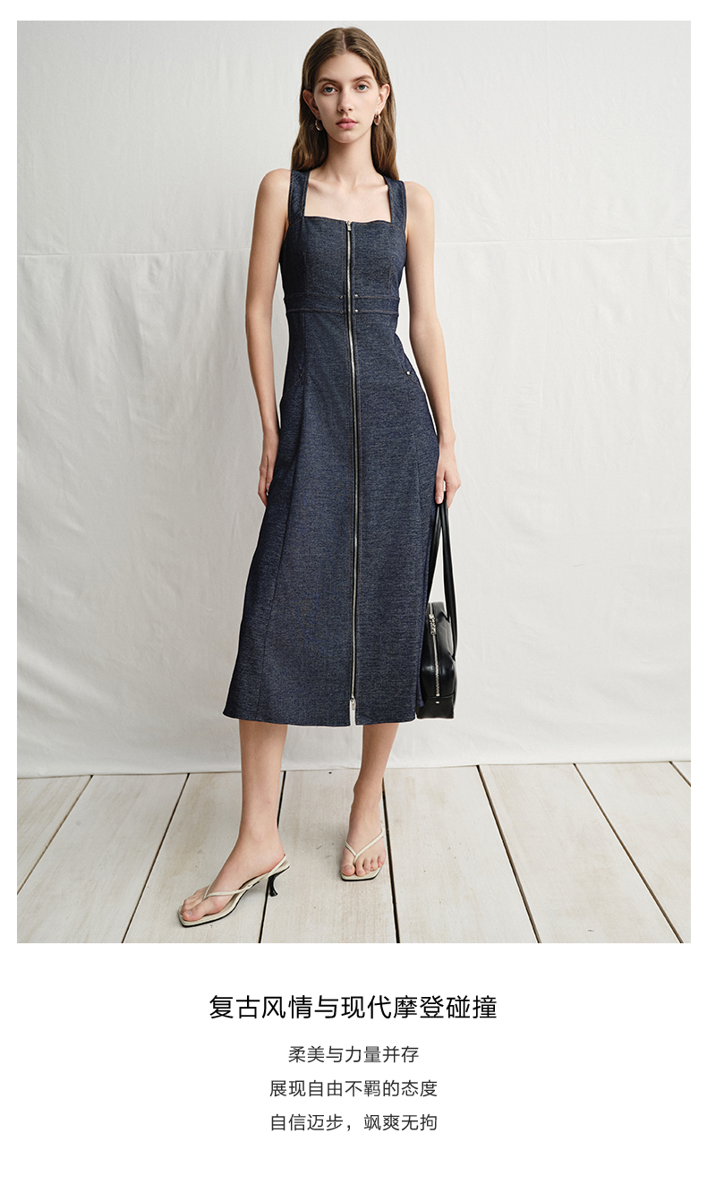 VIMAGE纬漫纪舒适百搭修身宽肩带吊带休闲连衣裙2025春季新款V2307905