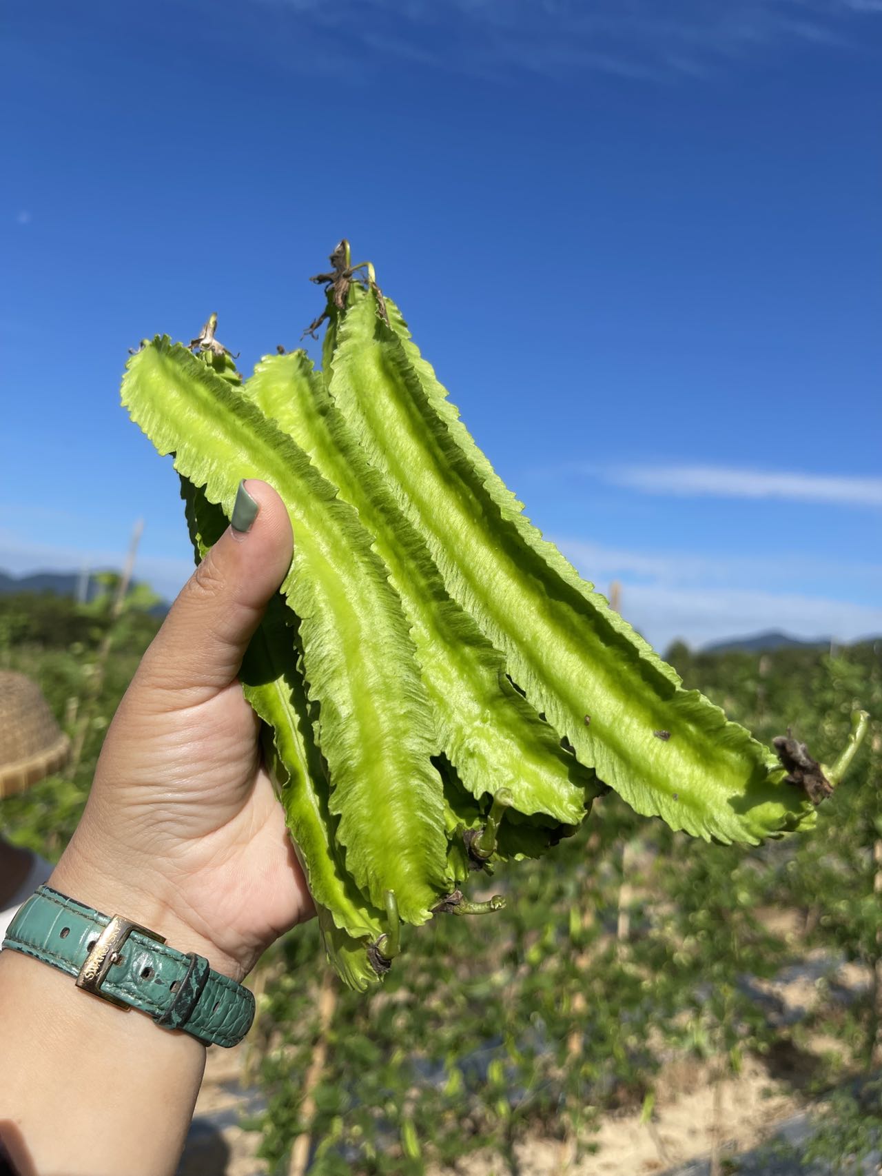 四角豆,是生长在热带的一种蔬菜,也是海南特色,口感和扁豆差不多,很清爽,脆脆的,鲜美细嫩,据说有很高食用价值,有着“绿色金子”之称。