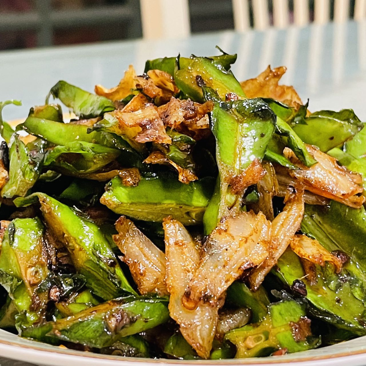 烹饪的最顶级的做法就是,保持食物的本质;一把小鱼干,一把新鲜采摘的四角豆,撒几颗盐,爆炒几下即可出锅,保持了食物的原本味道,鲜甜可口,老少皆宜