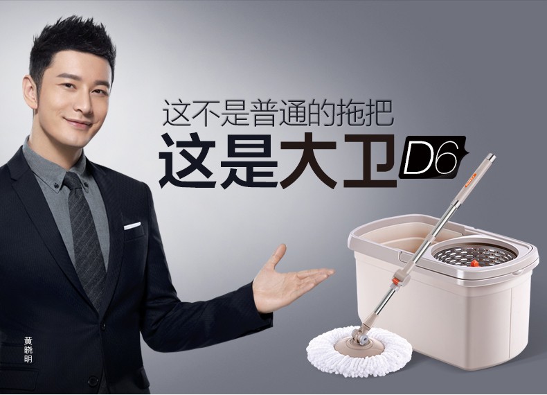 【大卫 拖把专家】 D6 旋转拖把桶甩干拖布桶双驱动免手洗拖把旋转地拖桶 D6(1杆2头)