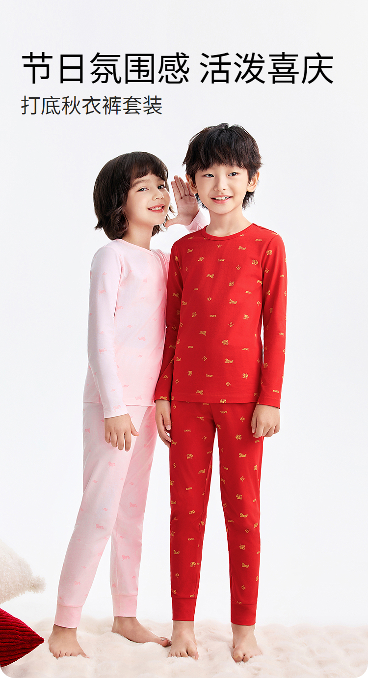 【新年波】男女童秋衣裤套装春季新款安奈儿童装JM617505