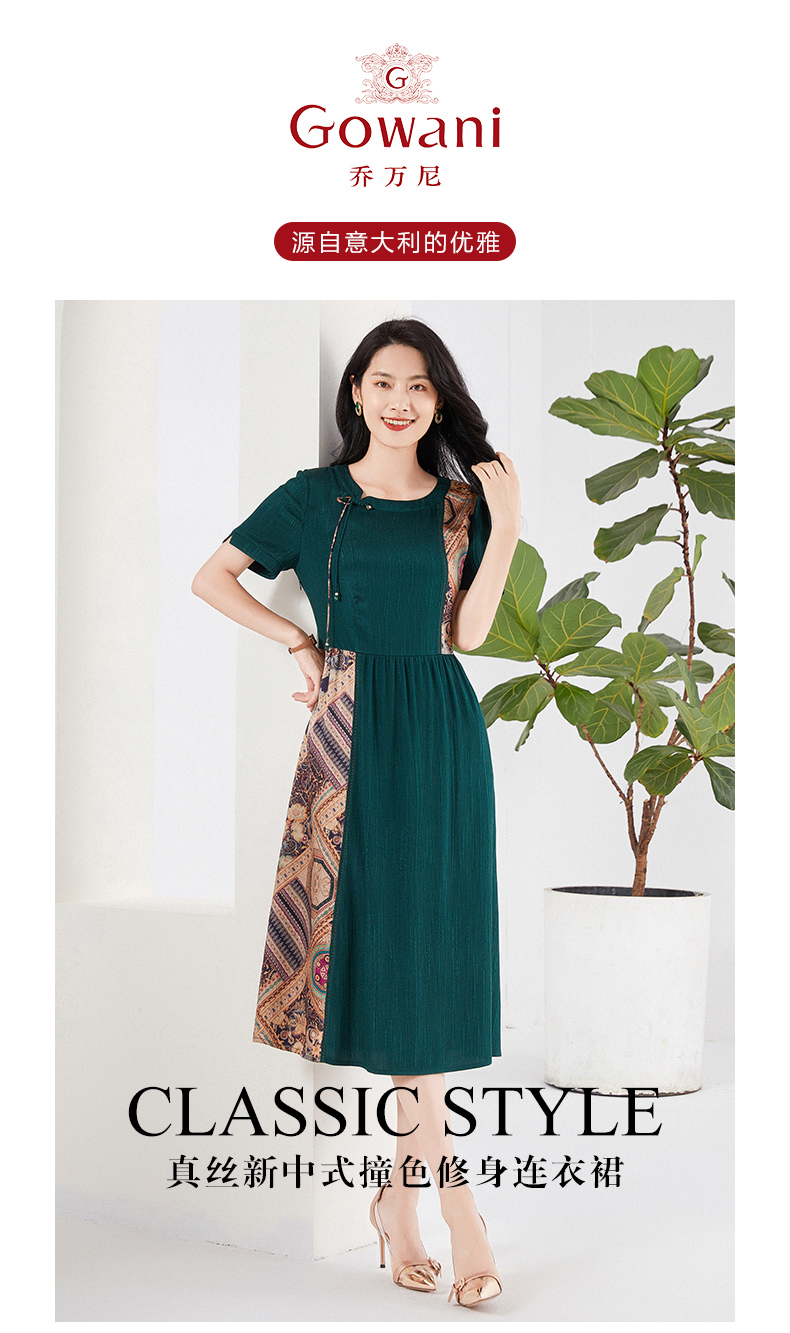 乔万尼真丝桑蚕丝连衣裙新款不规则拼接设计感EF2E402