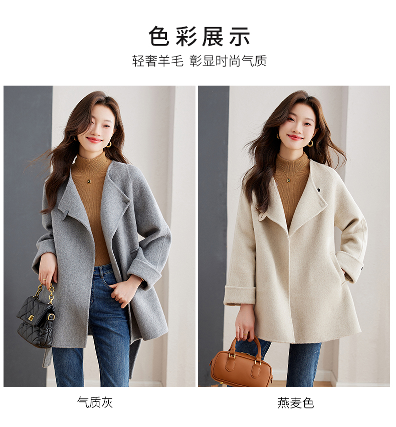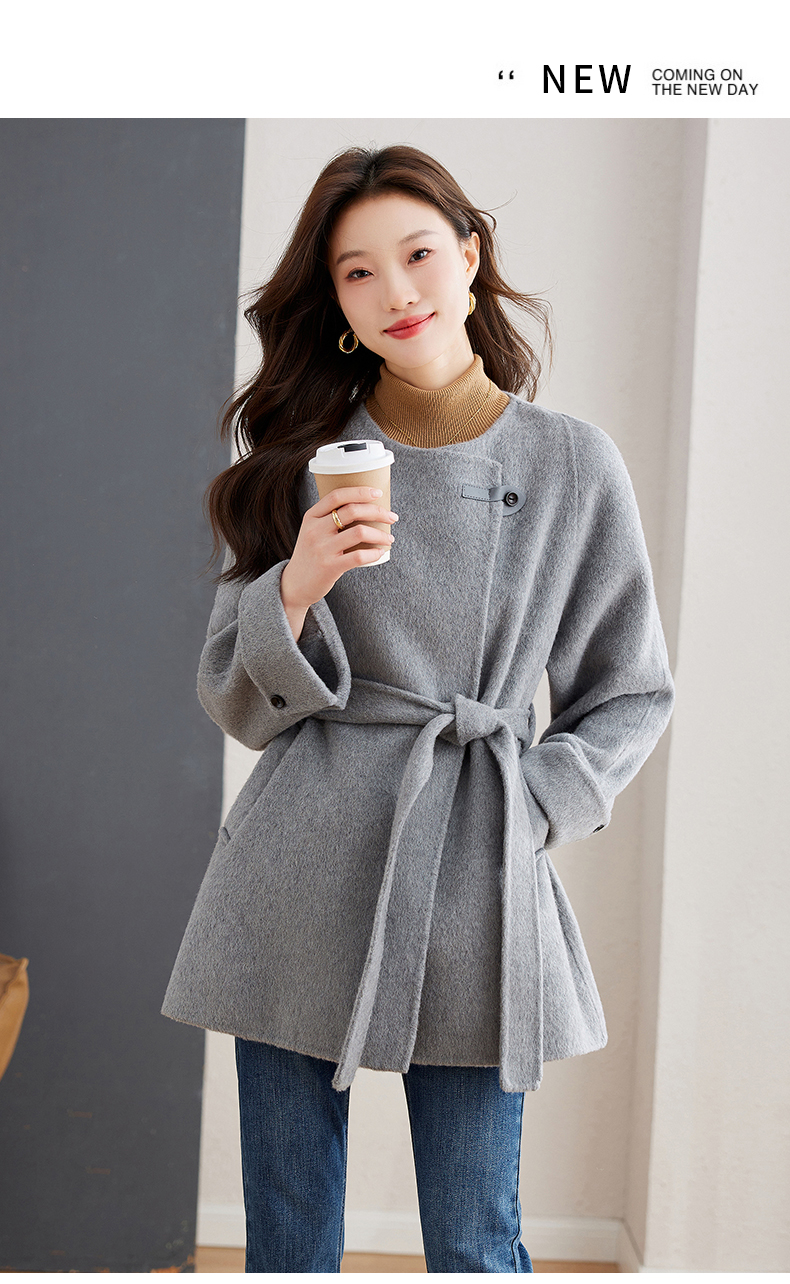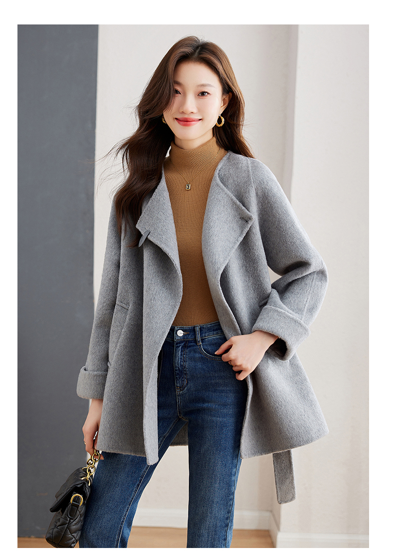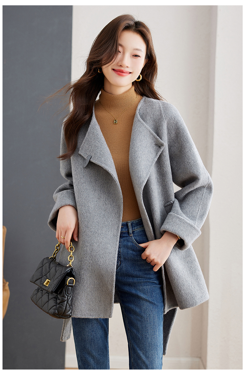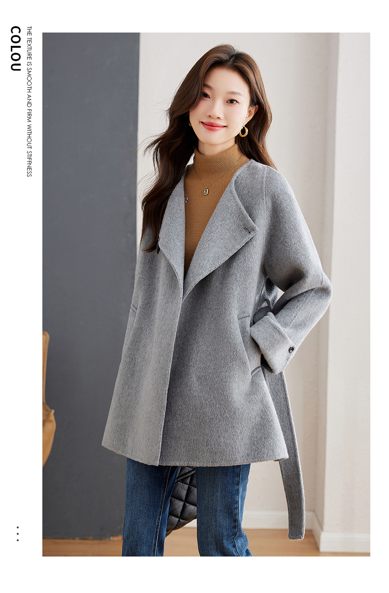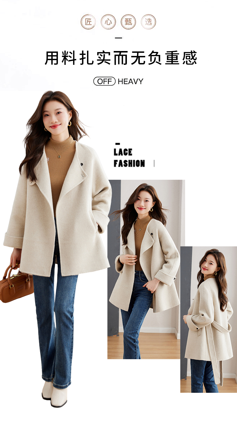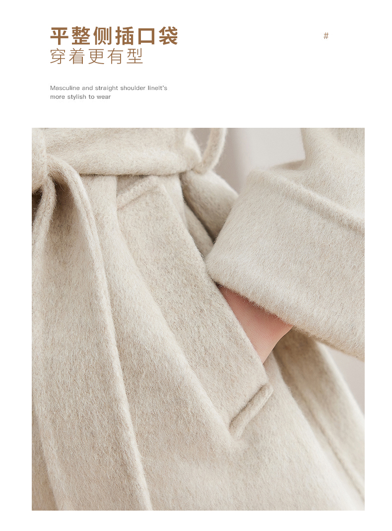 冬季新款,低领纯手工双面羊毛呢风衣系腰带大衣HR-SLYY9229