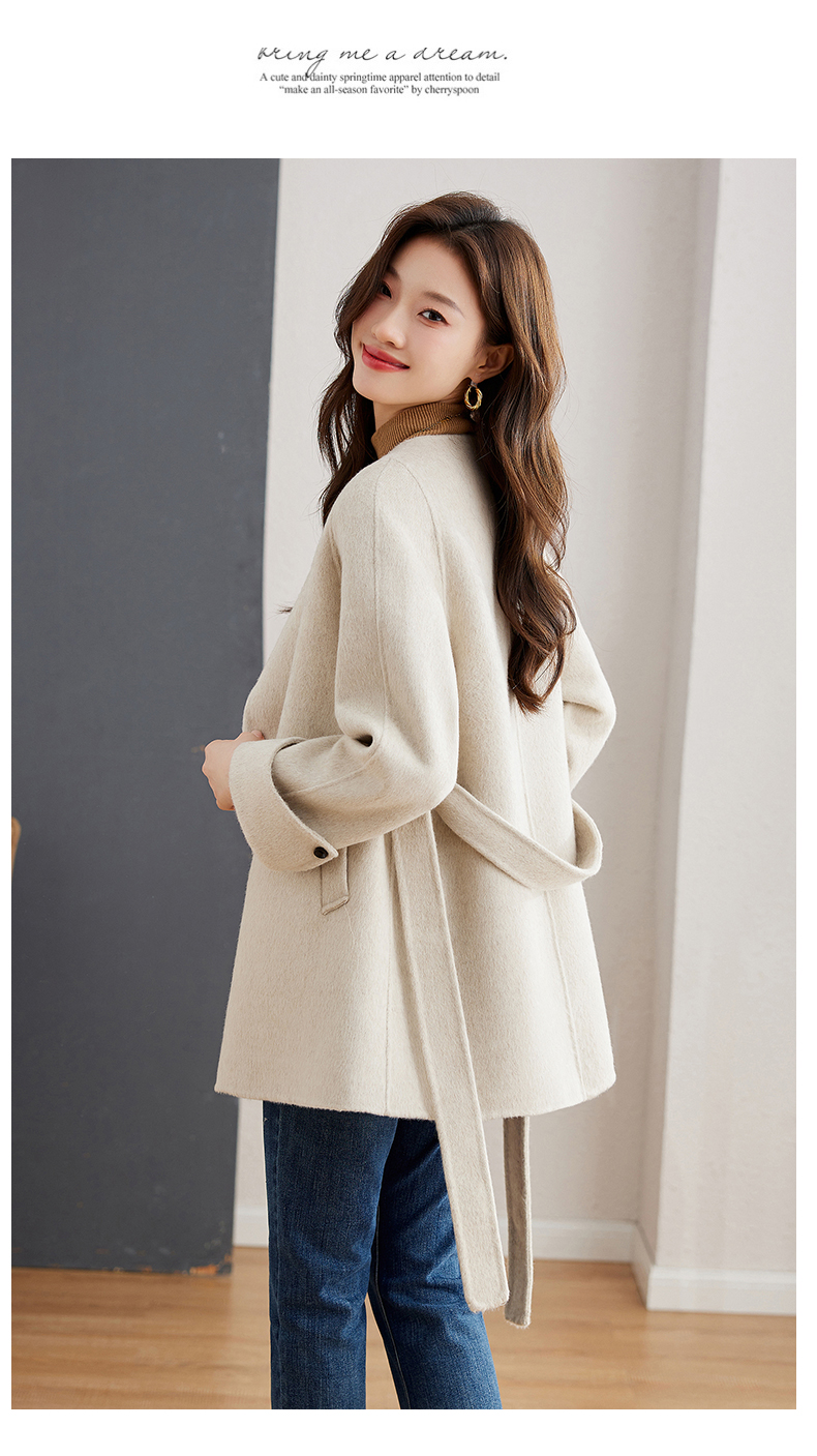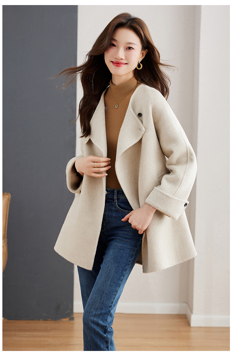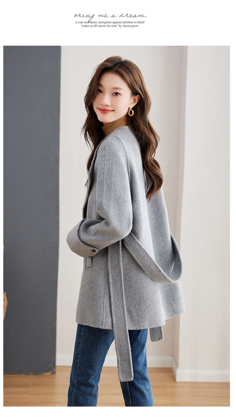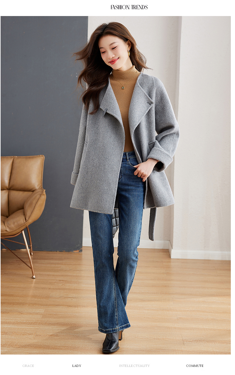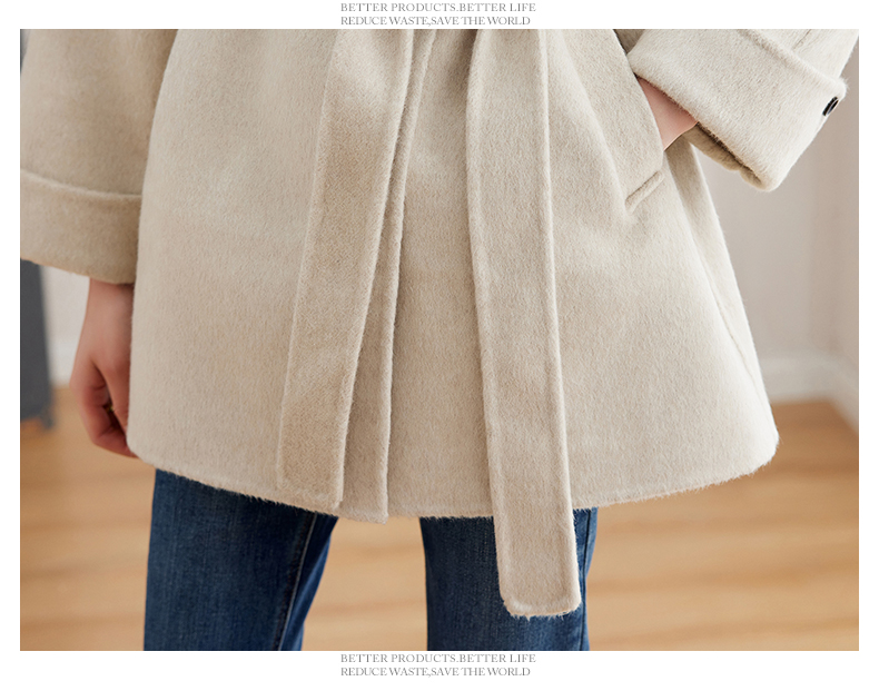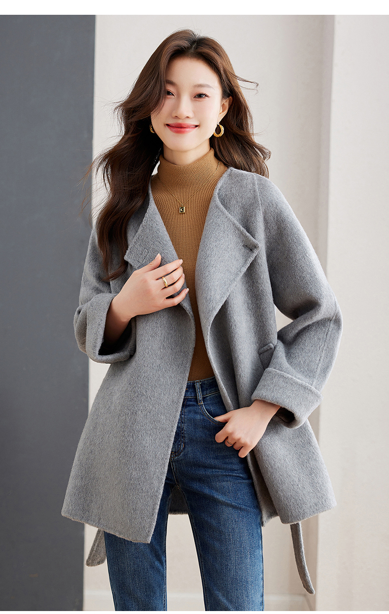 冬季新款,低领纯手工双面羊毛呢风衣系腰带大衣HR-SLYY9229