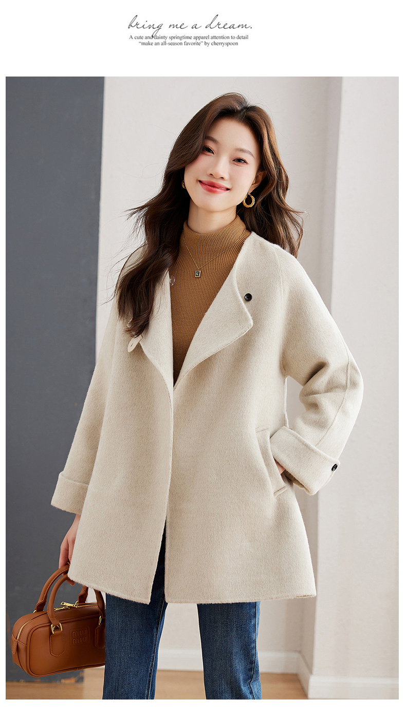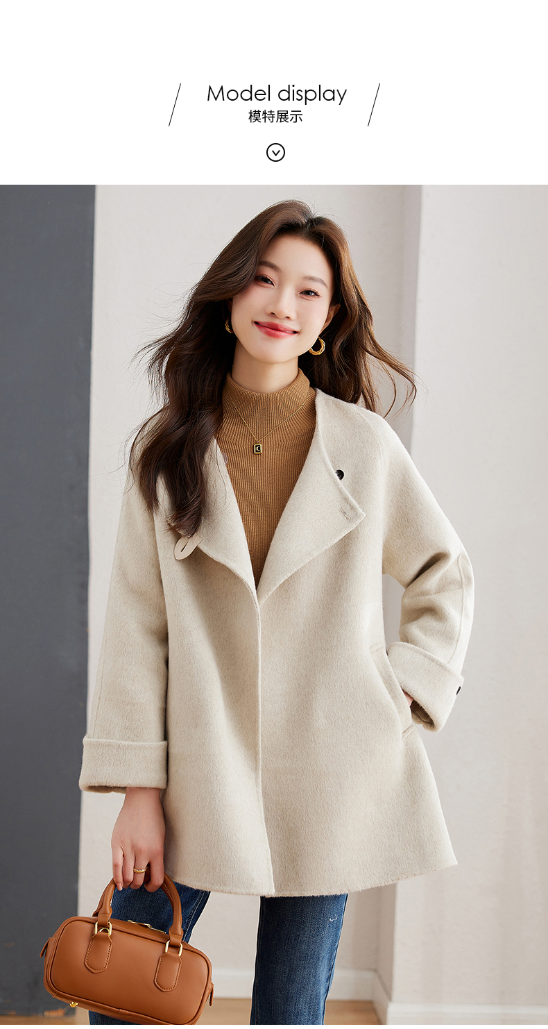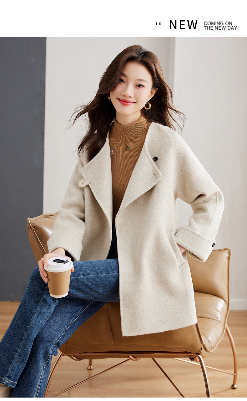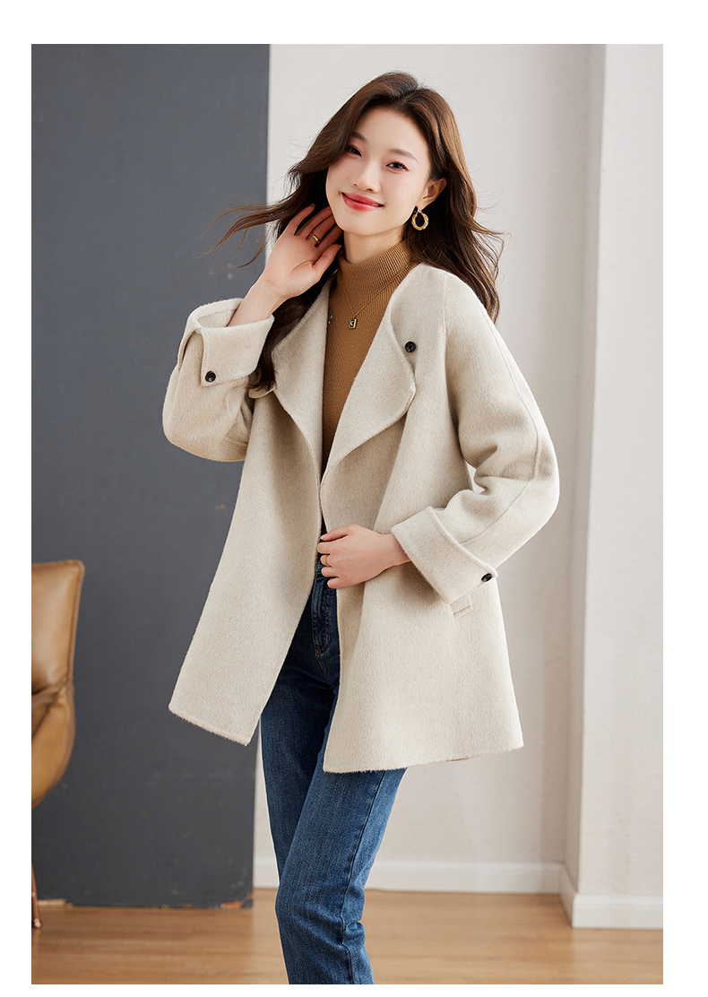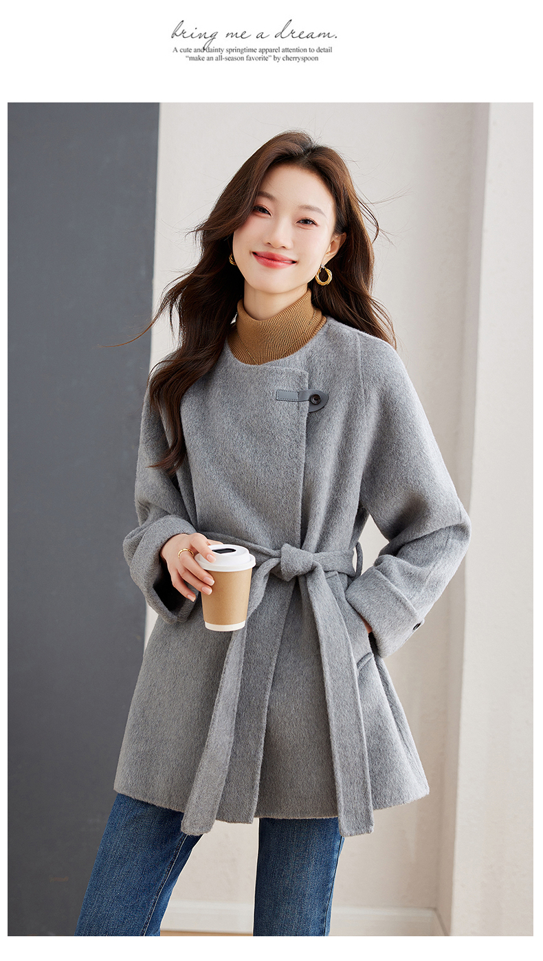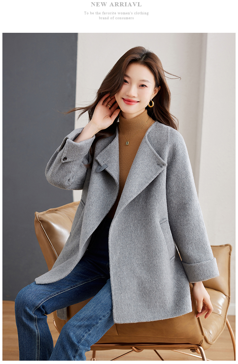 冬季新款,低领纯手工双面羊毛呢风衣系腰带大衣HR-SLYY9229