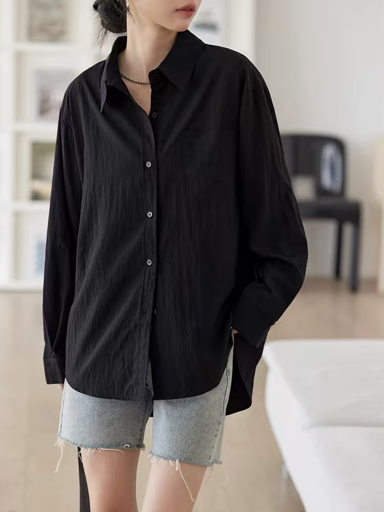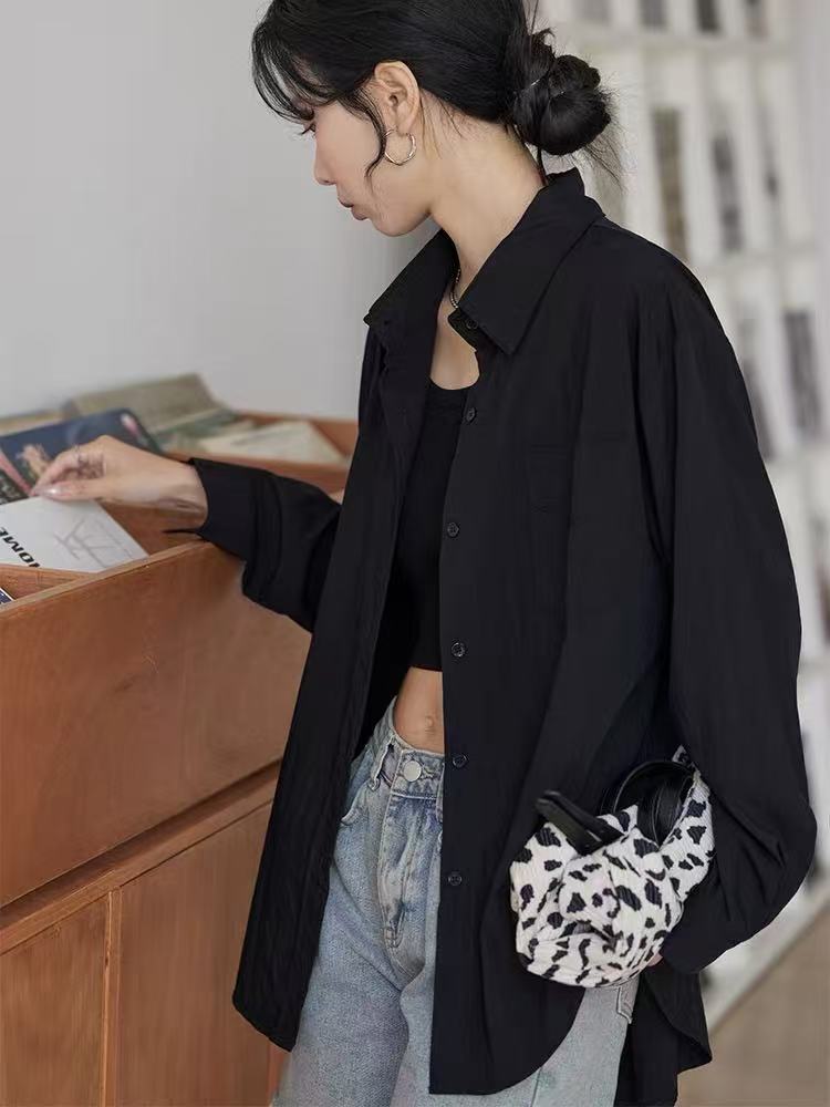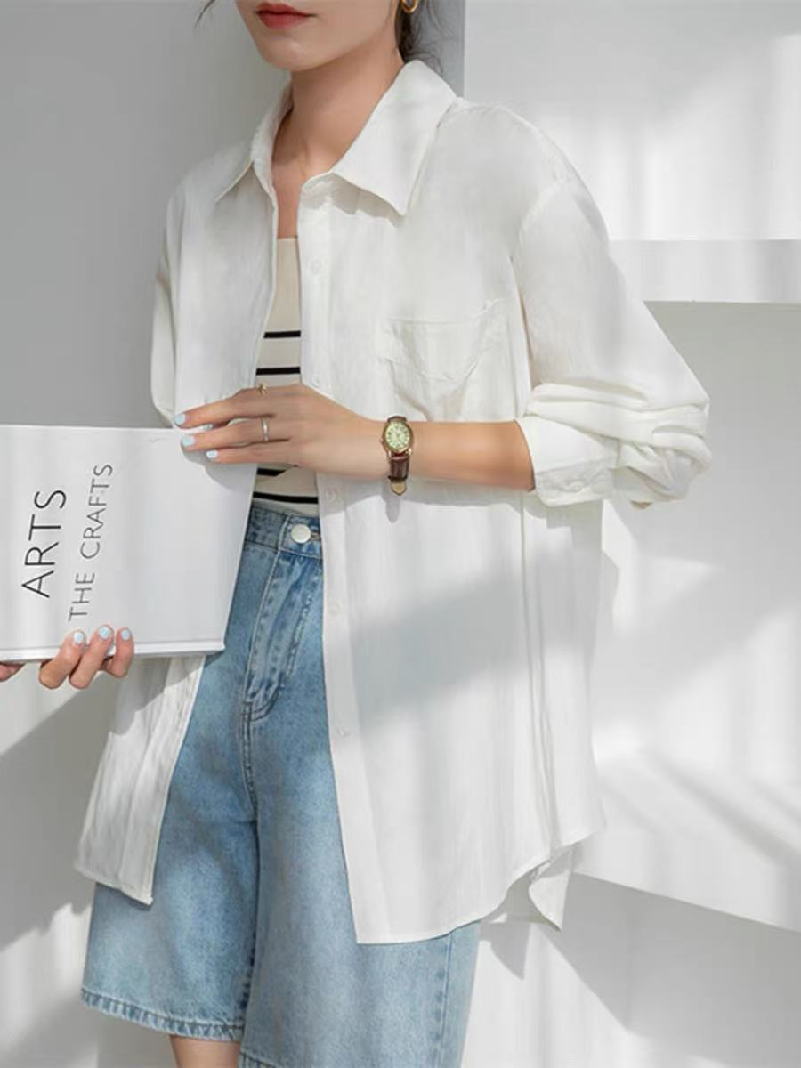 【新品推荐】吉妮品牌-039G中长简约薄款衬衫防晒外套-喜出
