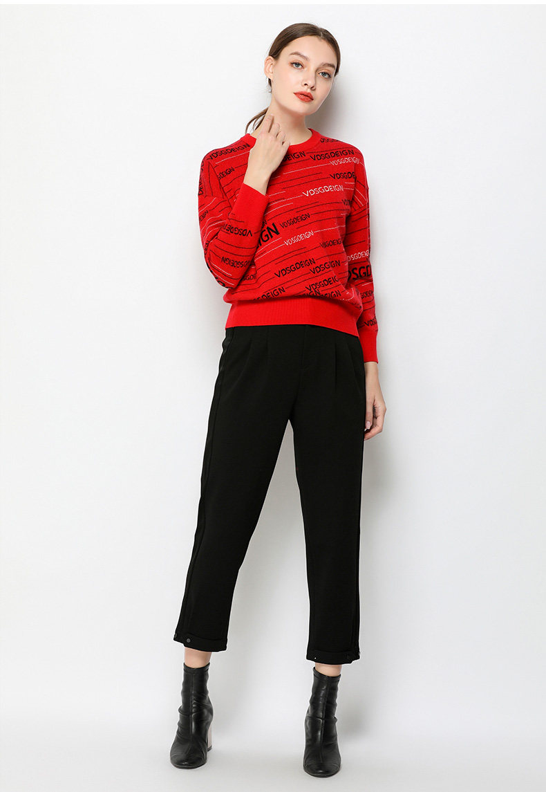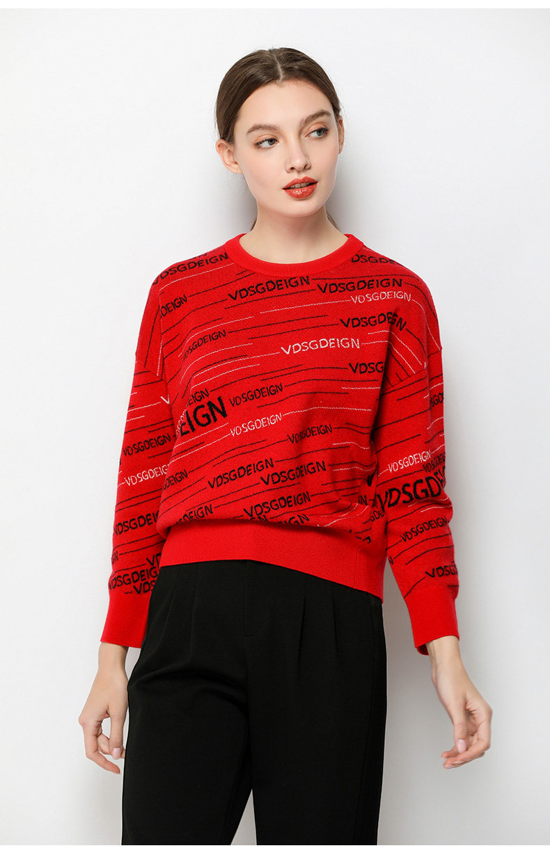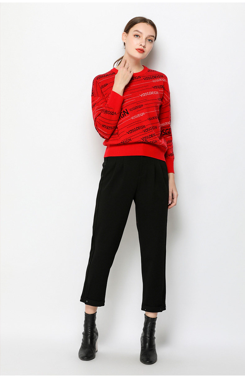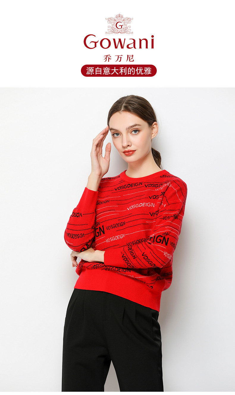 乔万尼毛衣女冬季长袖上衣气质宽松套头针织羊毛打底衫EN4M800